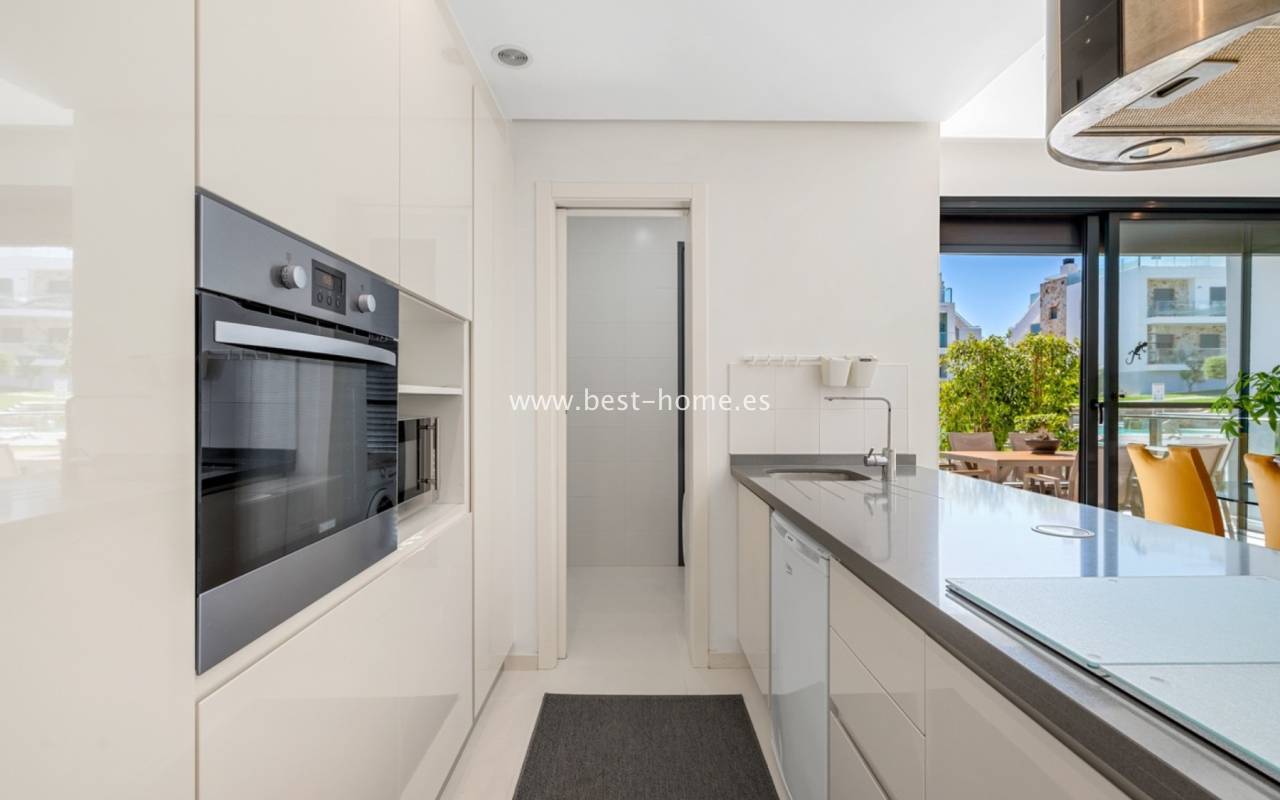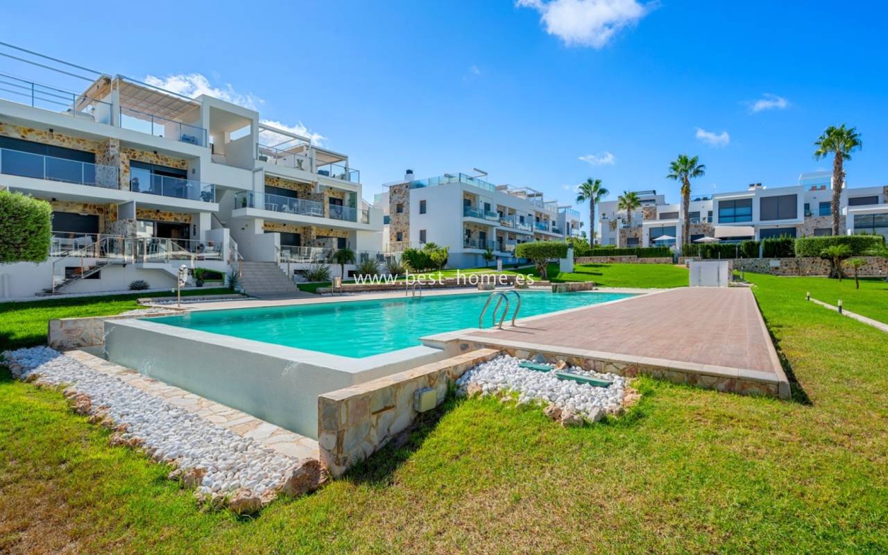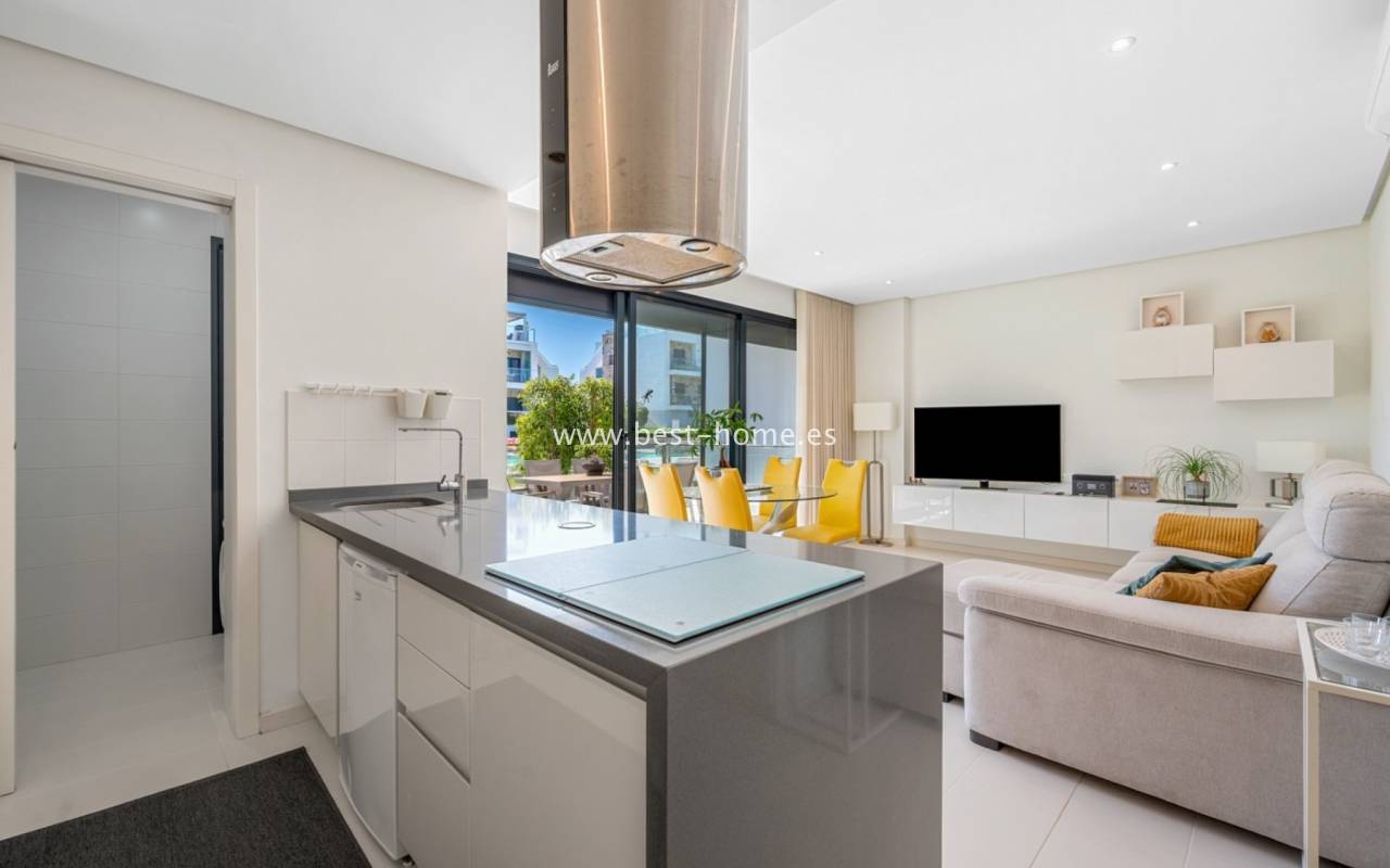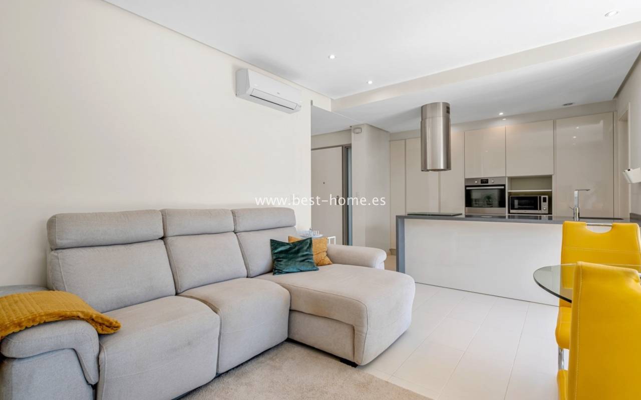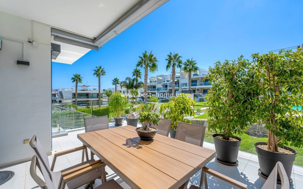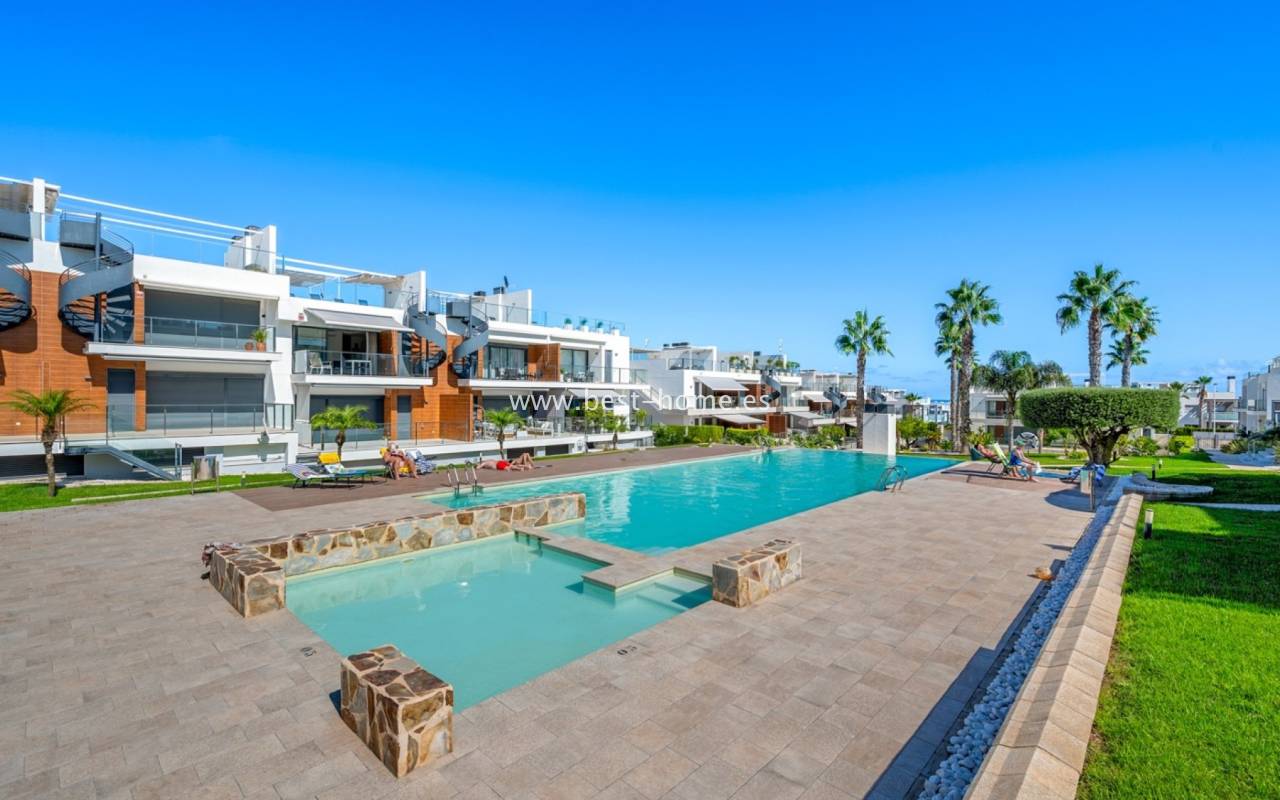 This attractive apartment is located in a beautiful development with a charming communal swimming pool surrounded by greenery. The property is on the ground floor and features two bedrooms, two bathrooms, a fitted kitchen with a living room, and a utility room. The living room opens onto a 24 m² terrace through large windows, offering stunning views of the pool and communal areas. The master bedroom opens onto the rear terrace/garden. The property is very well-maintained, and the price includes furniture, three air conditioning units, a parking space, and a storage unit in the basement.