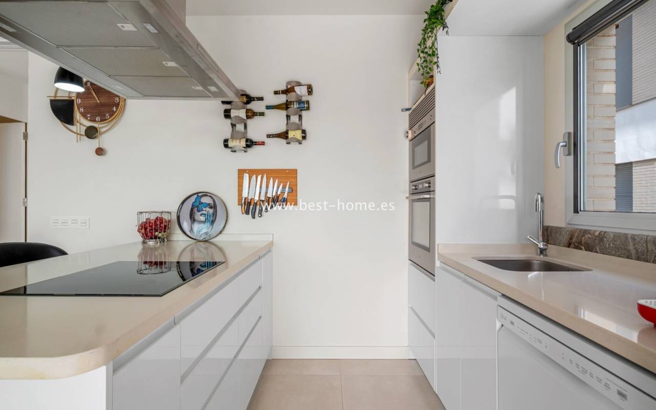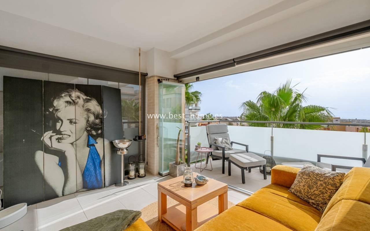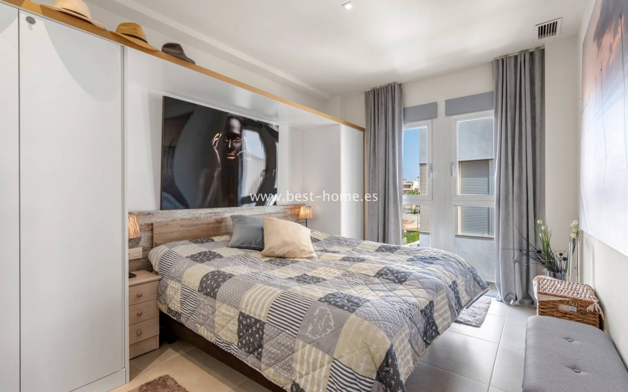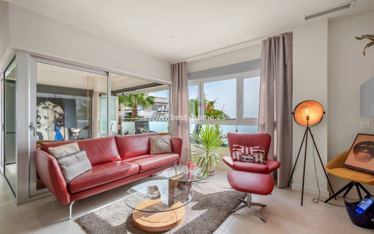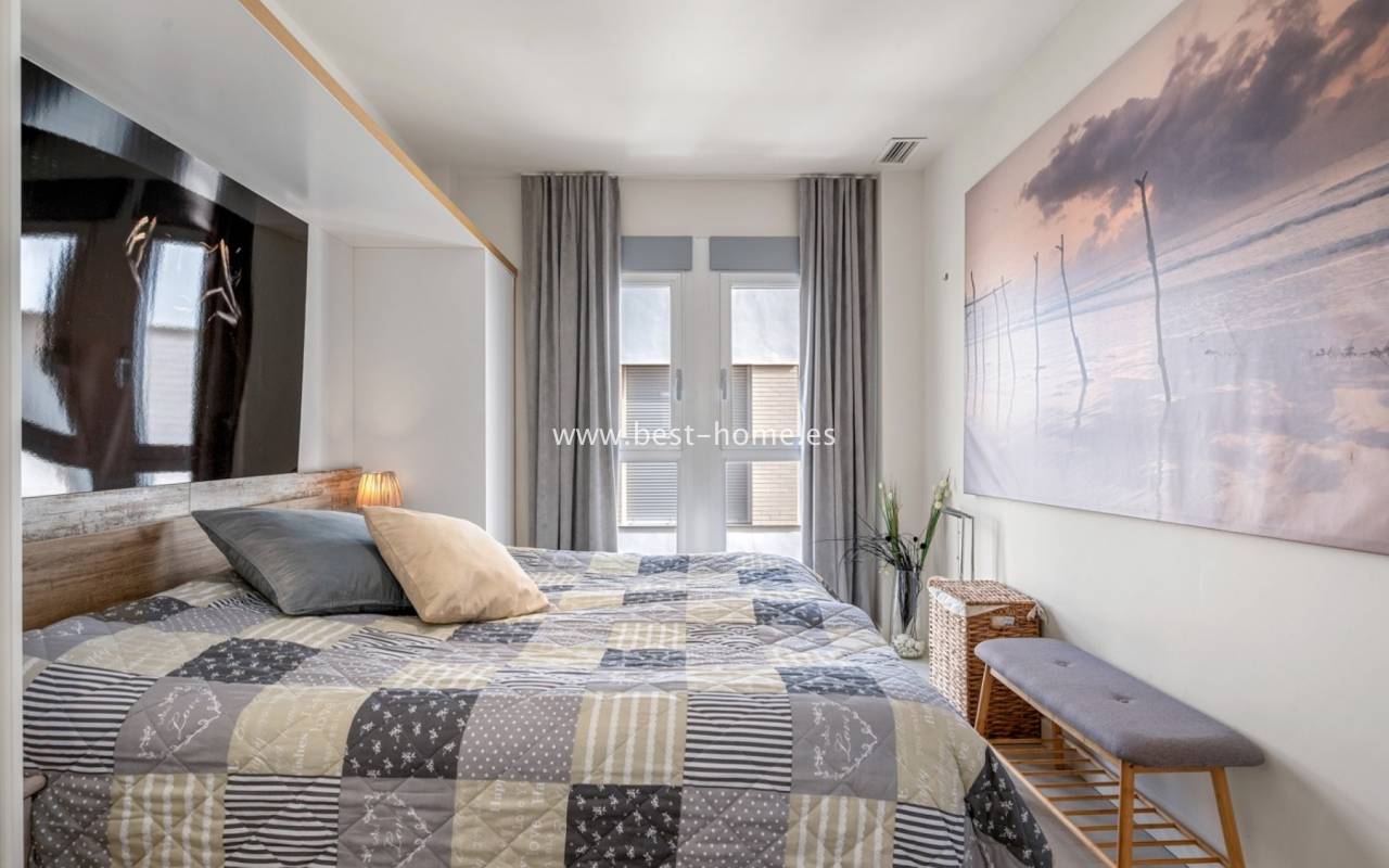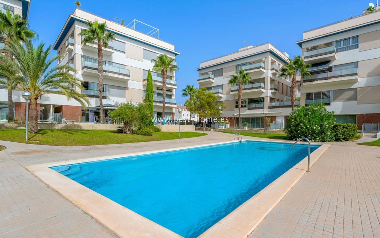 This apartment is located in a gated community in the quiet Los Dolses neighborhood. The property is on the third floor and comprises two bedrooms, two bathrooms, a furnished kitchen with a dining area and a living room. The living room opens onto a partially enclosed terrace with views of the communal areas and the sea. The price includes furniture, appliances, central air conditioning, two storage units, and an outdoor parking space.