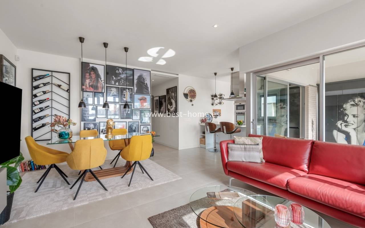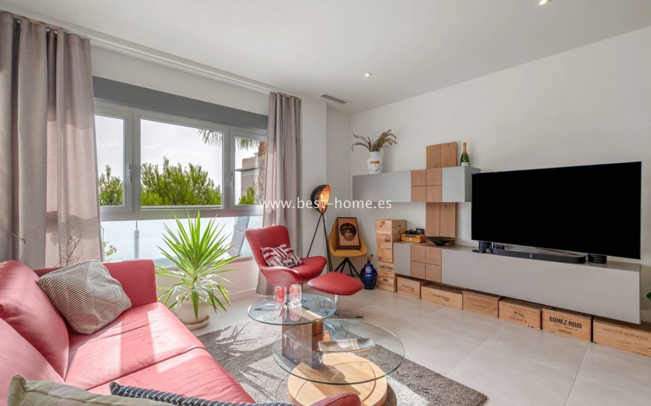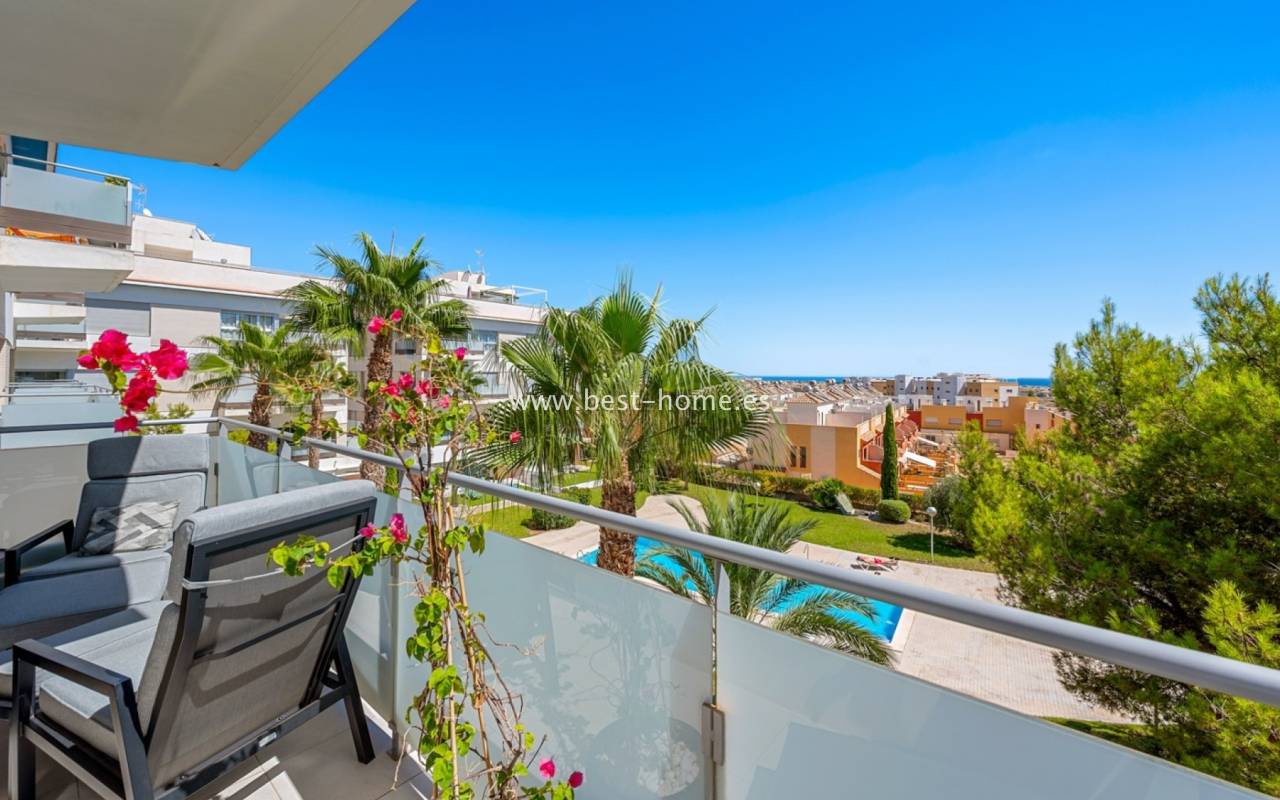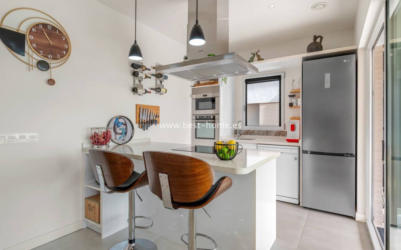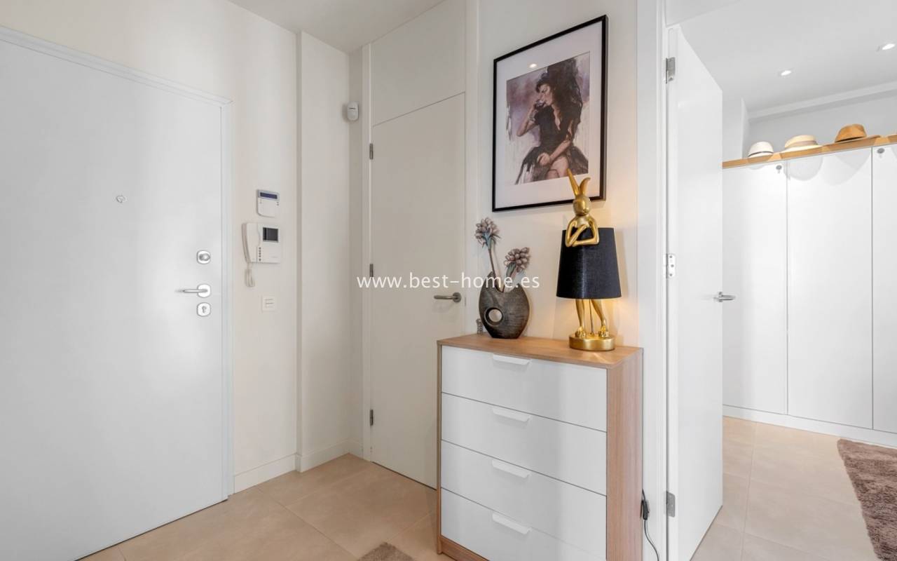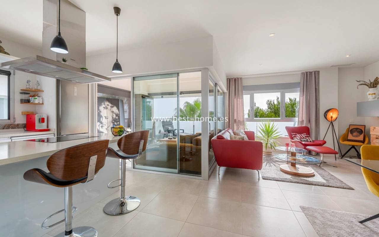 This apartment is located in a gated community in the quiet Los Dolses neighborhood. The property is on the third floor and comprises two bedrooms, two bathrooms, a furnished kitchen with a dining area and a living room. The living room opens onto a partially enclosed terrace with views of the communal areas and the sea. The price includes furniture, appliances, central air conditioning, two storage units, and an outdoor parking space.