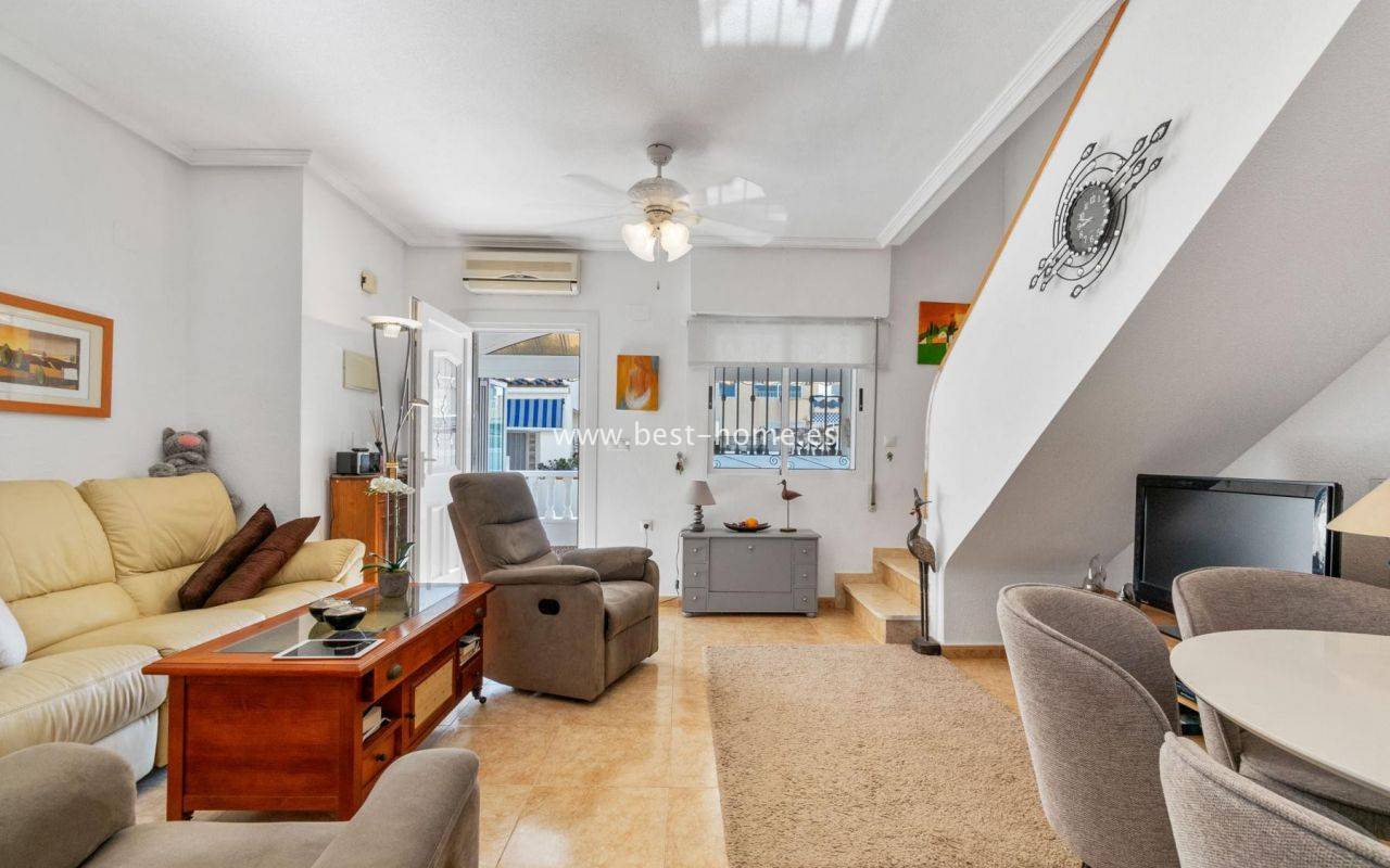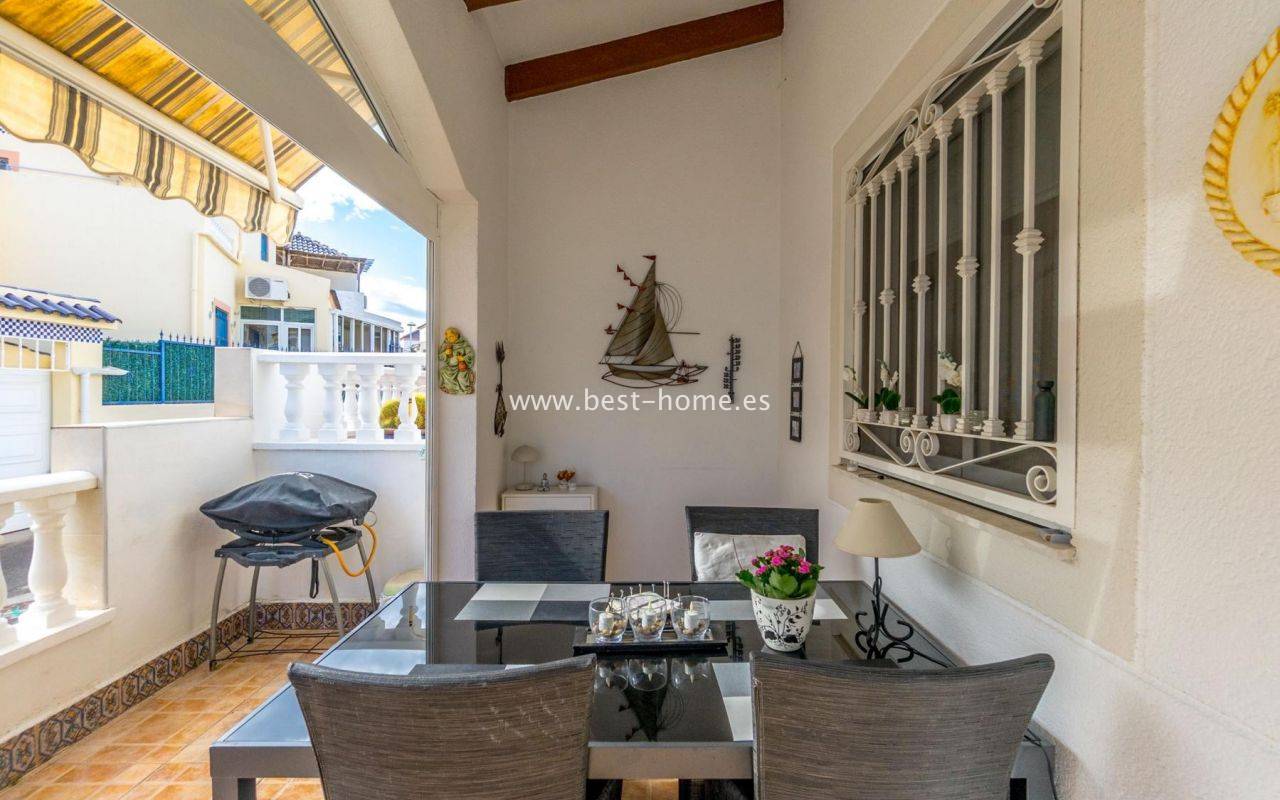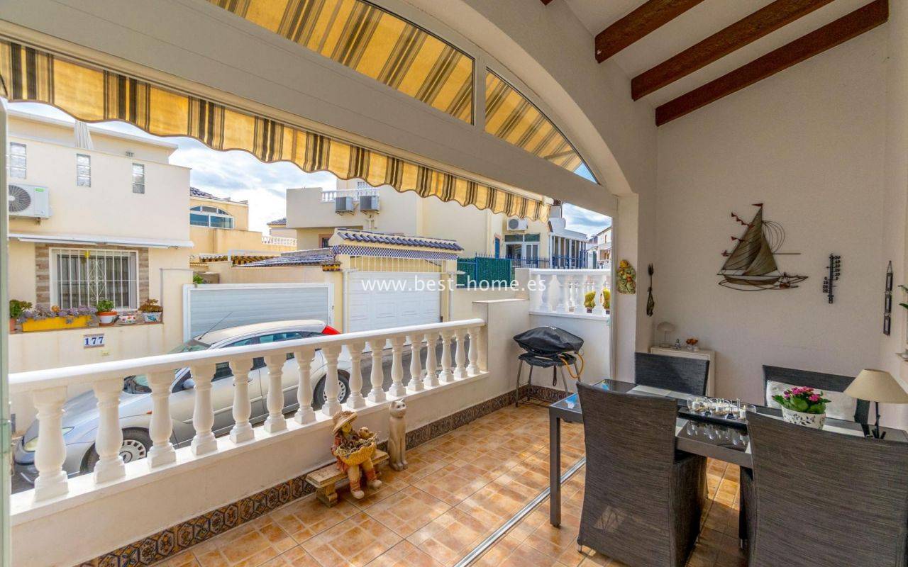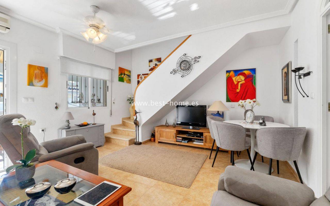 This charming quad-style house is located in a quiet area of Torrevieja, in the residential complex Mirador de los Balcones II. It’s a friendly neighborhood with people living there all year round, creating a warm and welcoming atmosphere. The location is excellent, with supermarkets, a pharmacy, a hospital, and the beaches of Torrevieja just a few minutes away.