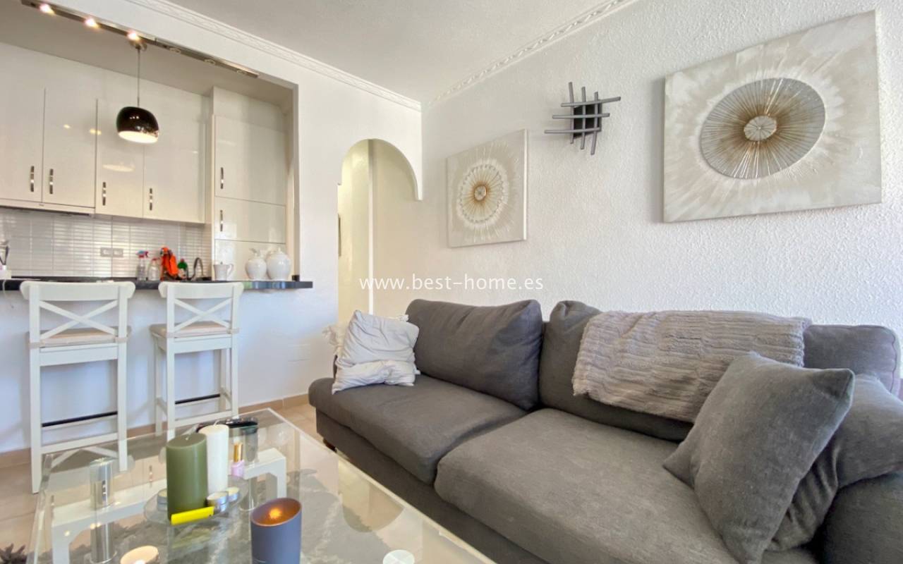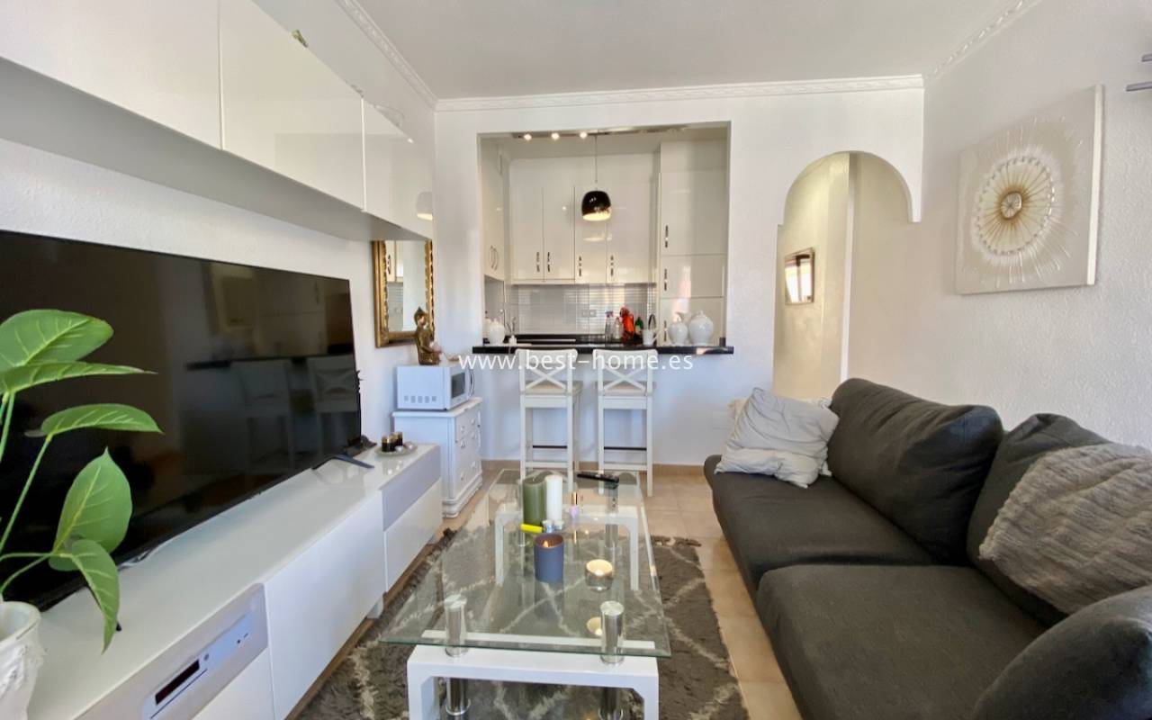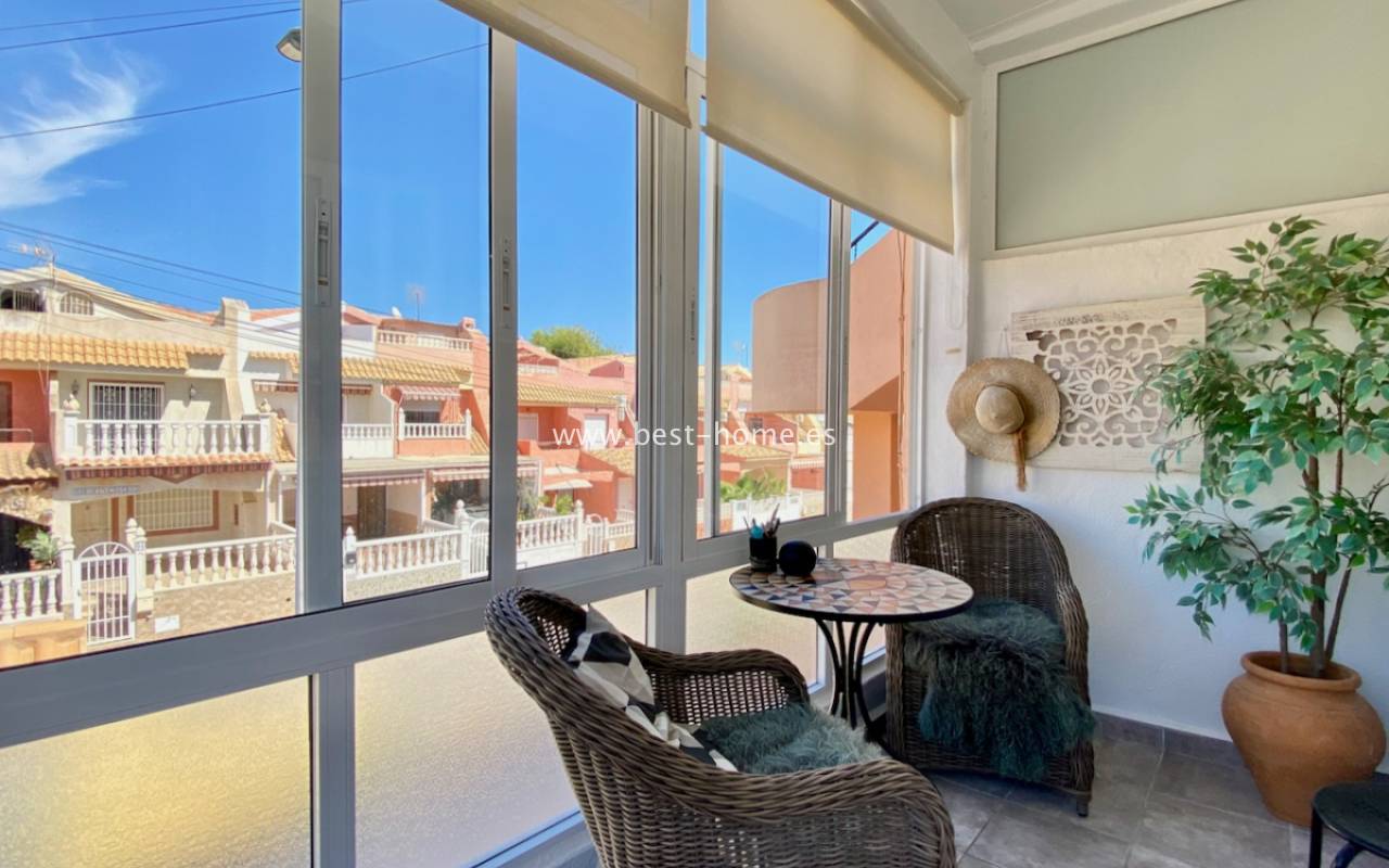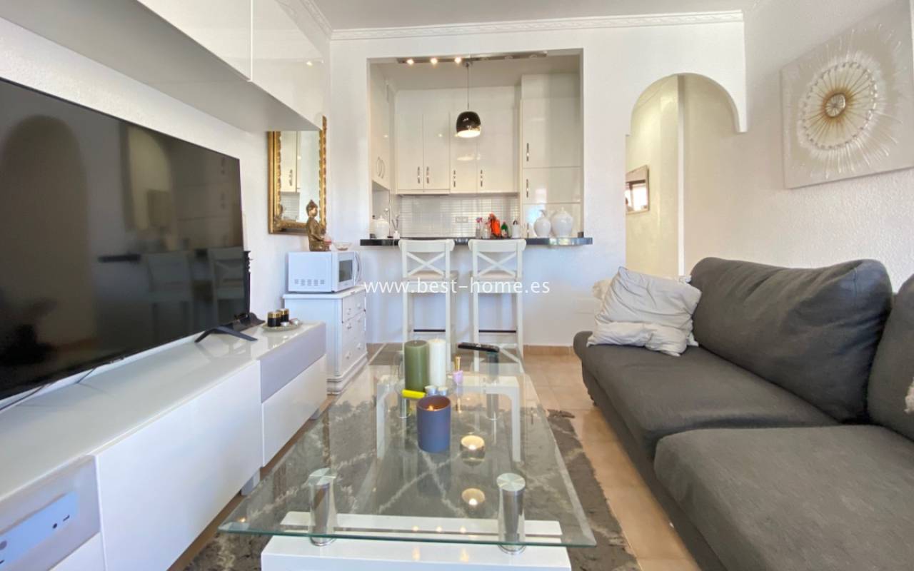 This well-priced first-floor apartment with two terraces is located in the Los Frutales development in Torrevieja. At the entrance, there's a glass-enclosed terrace where you can relax and enjoy it year-round. Next, there's a spacious living room with an American-style kitchen equipped with appliances, one double bedroom with access to a second sunny terrace, and a bathroom. The apartment is furnished and equipped with air conditioning.