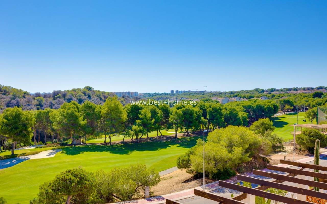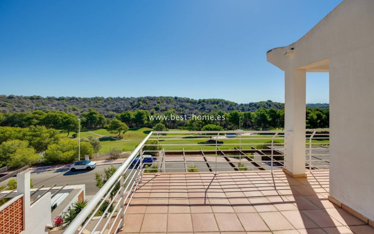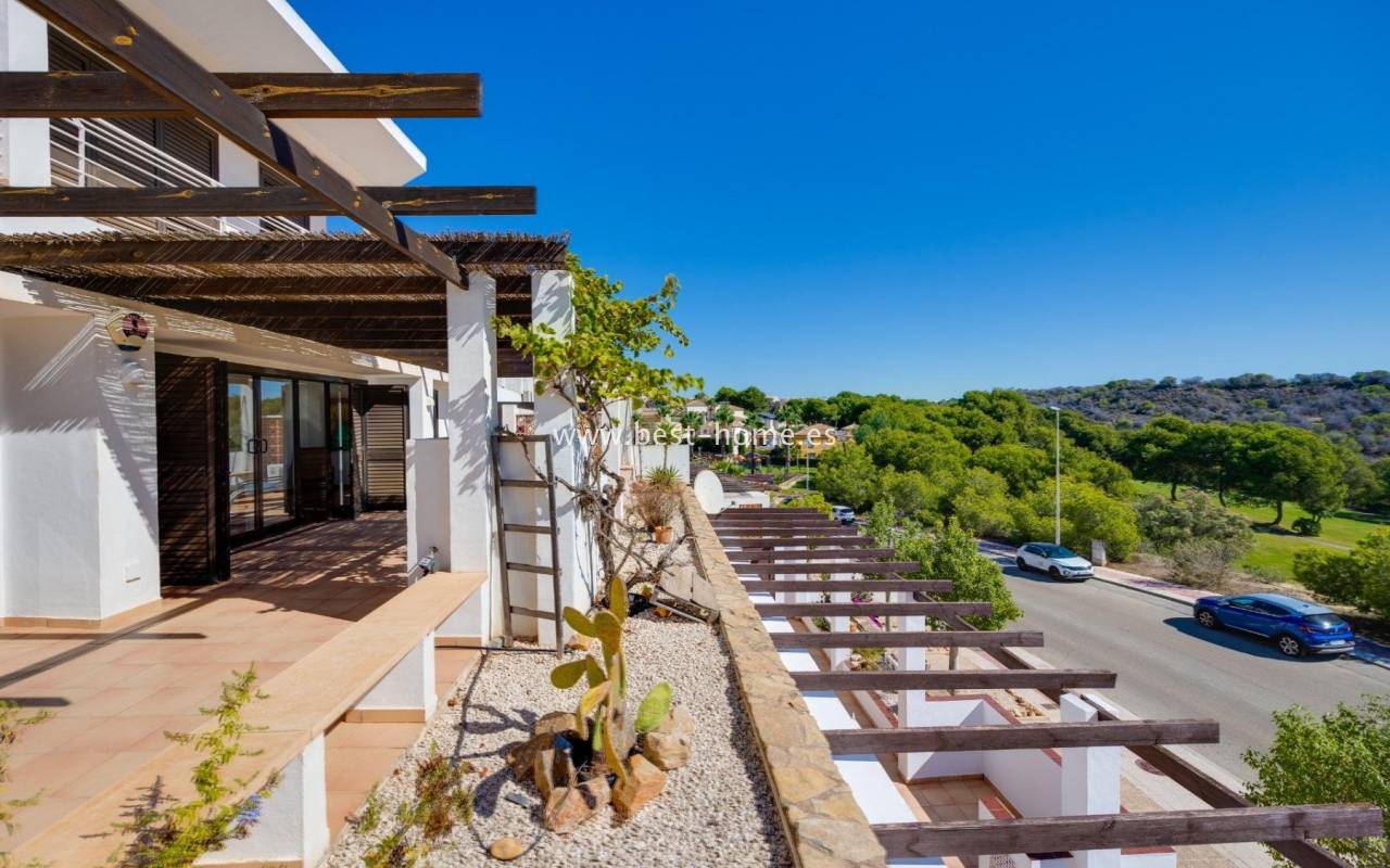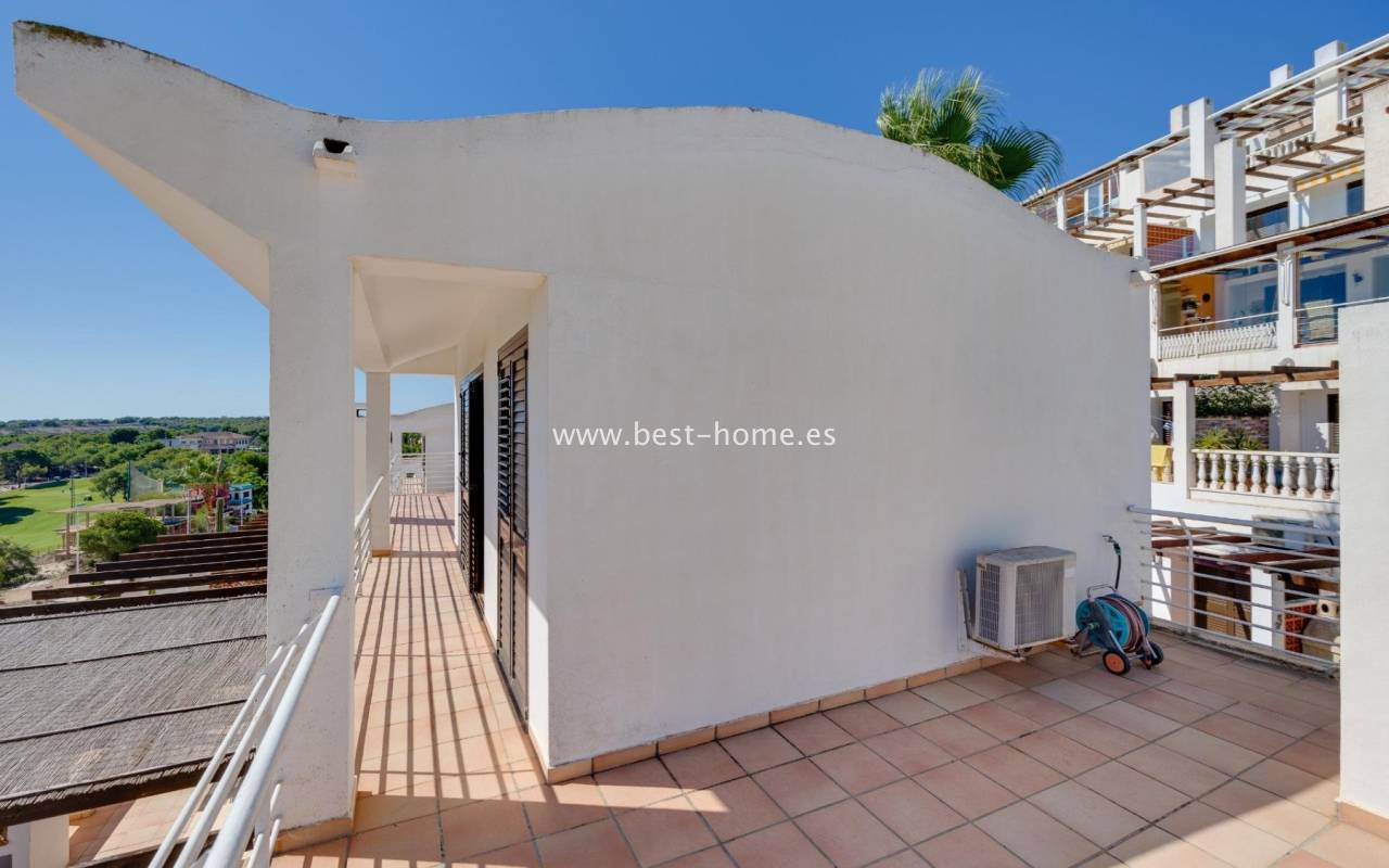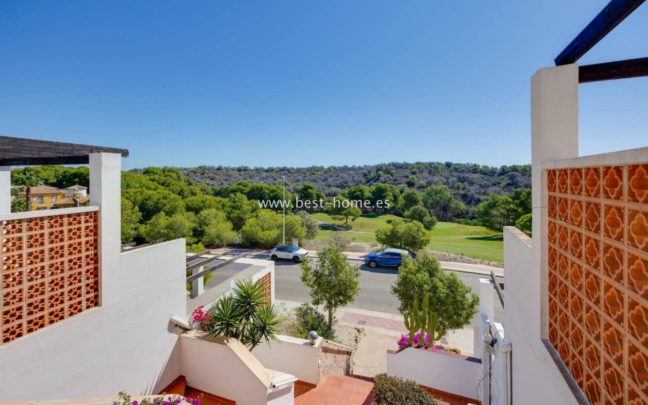 We present this exclusive duplex penthouse from the year 2000, built with the best materials and in excellent condition. Ready to live in without the need for renovations! Its location is unbeatable, facing the Las Ramblas golf courses, a quiet and safe place. Enjoy incredible views of the vegetation and the golf course from its spacious terrace (40 m²) directly connected to the interior, which stands out for its natural light. On the main floor, there is a large living-dining room with a fireplace, an open-plan American kitchen, a reading area (originally the third bedroom), a double bedroom with an ensuite bathroom, and a guest toilet. Upstairs, there is another bedroom also with an ensuite, plus access to the private solarium (45 m²) where you can even see the Mediterranean Sea. The property includes a closed garage space (25 m²). ~~The location is near the Villamartin canal that takes you to the La Fuente shopping center in just ten minutes; surrounded by all kinds of services: supermarkets, restaurants, shops! Don't miss this unique opportunity!!!