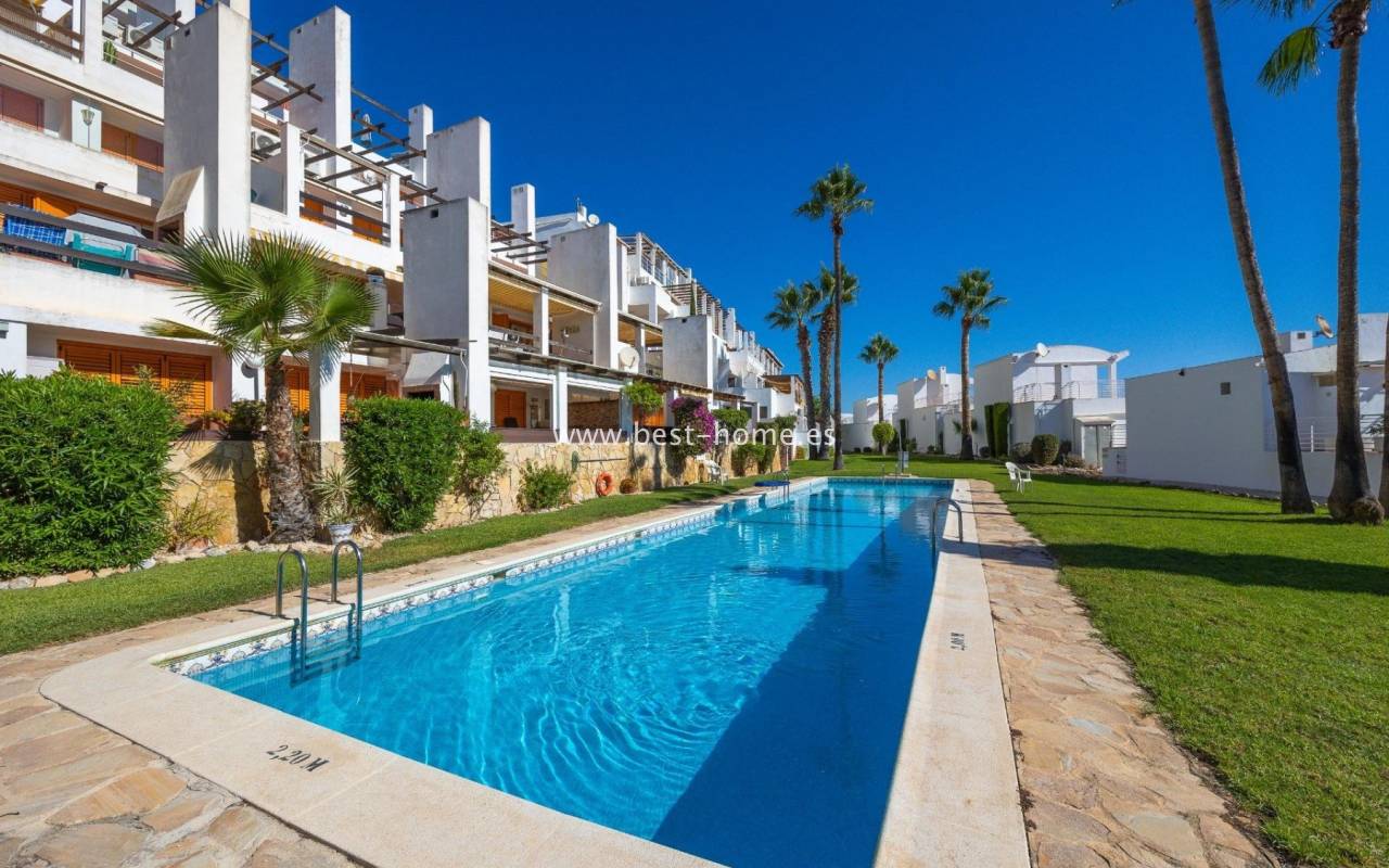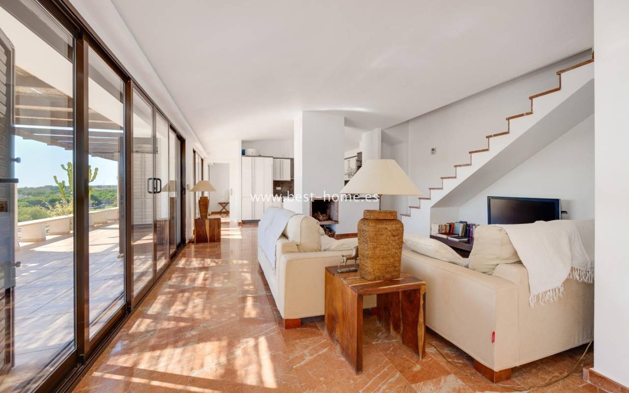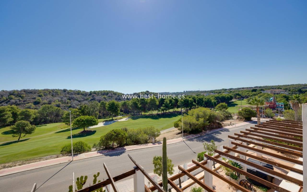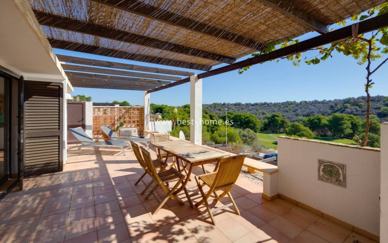 We present this exclusive duplex penthouse from the year 2000, built with the best materials and in excellent condition. Ready to live in without the need for renovations! Its location is unbeatable, facing the Las Ramblas golf courses, a quiet and safe place. Enjoy incredible views of the vegetation and the golf course from its spacious terrace (40 m²) directly connected to the interior, which stands out for its natural light. On the main floor, there is a large living-dining room with a fireplace, an open-plan American kitchen, a reading area (originally the third bedroom), a double bedroom with an ensuite bathroom, and a guest toilet. Upstairs, there is another bedroom also with an ensuite, plus access to the private solarium (45 m²) where you can even see the Mediterranean Sea. The property includes a closed garage space (25 m²). ~~The location is near the Villamartin canal that takes you to the La Fuente shopping center in just ten minutes; surrounded by all kinds of services: supermarkets, restaurants, shops! Don't miss this unique opportunity!!!