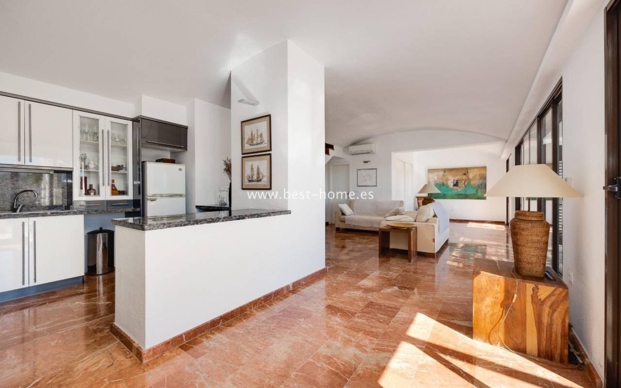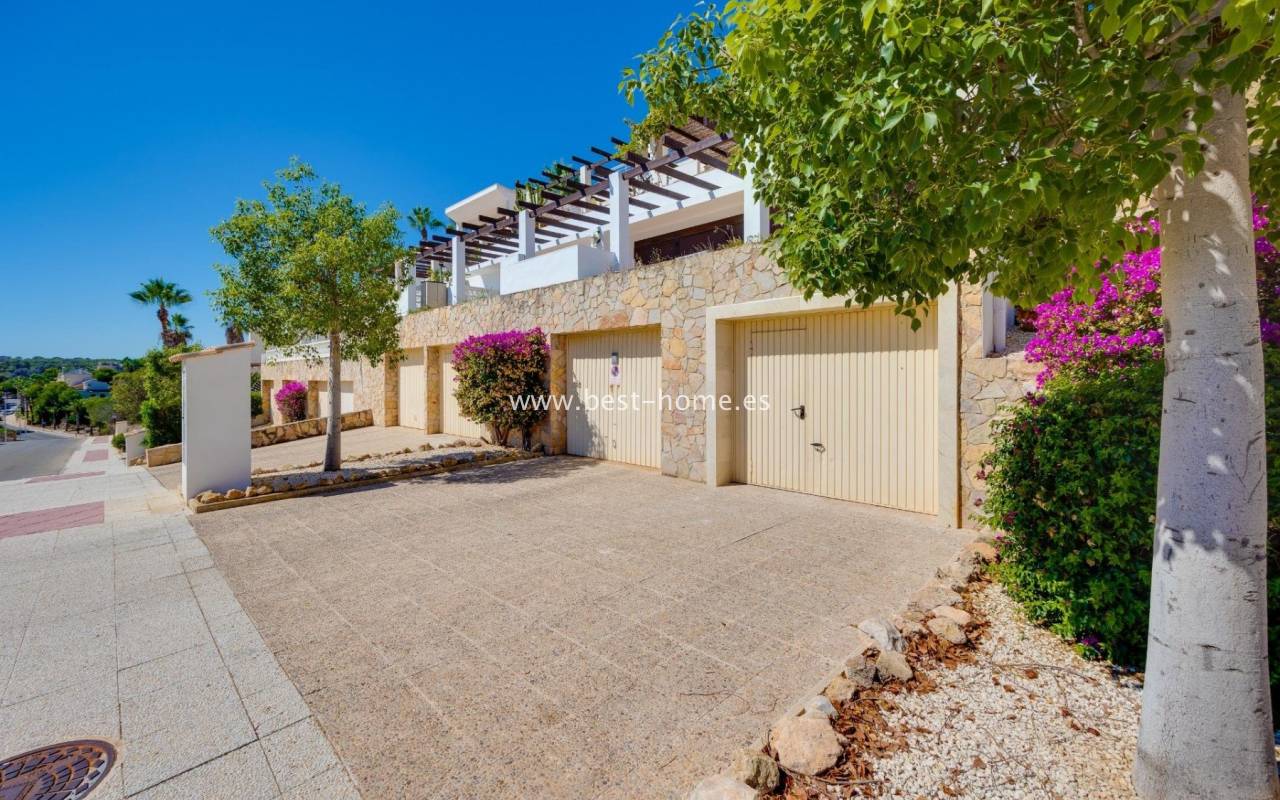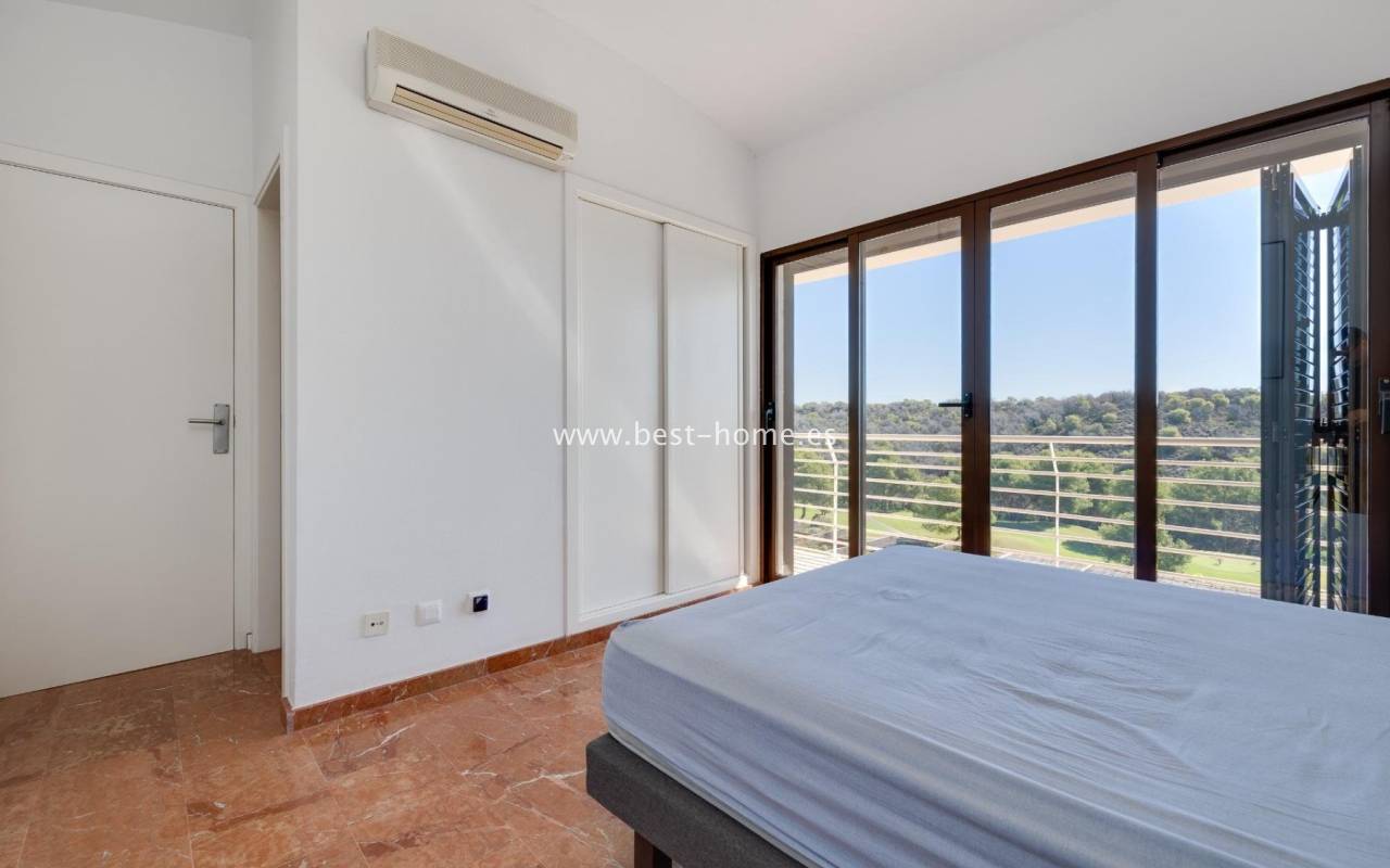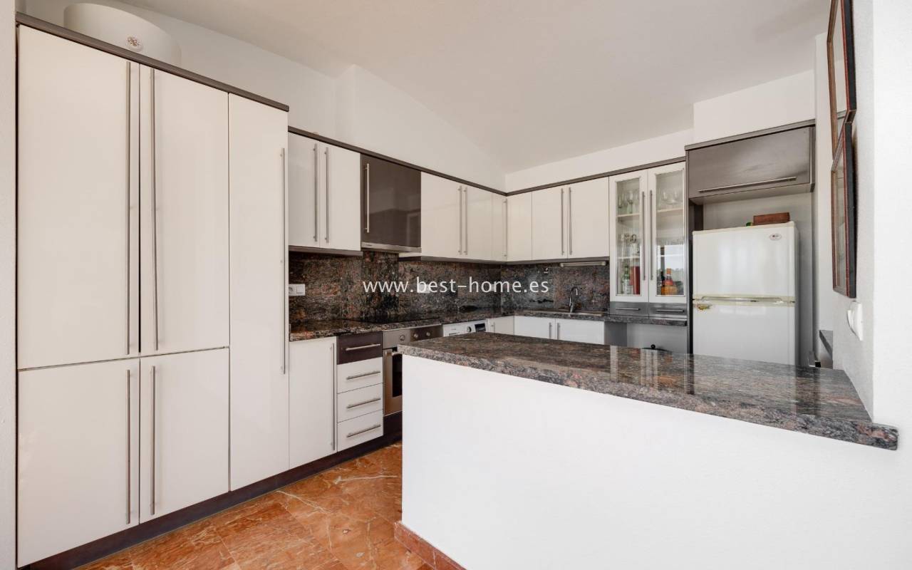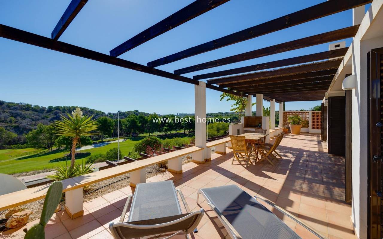 We present this exclusive duplex penthouse from the year 2000, built with the best materials and in excellent condition. Ready to live in without the need for renovations! Its location is unbeatable, facing the Las Ramblas golf courses, a quiet and safe place. Enjoy incredible views of the vegetation and the golf course from its spacious terrace (40 m²) directly connected to the interior, which stands out for its natural light. On the main floor, there is a large living-dining room with a fireplace, an open-plan American kitchen, a reading area (originally the third bedroom), a double bedroom with an ensuite bathroom, and a guest toilet. Upstairs, there is another bedroom also with an ensuite, plus access to the private solarium (45 m²) where you can even see the Mediterranean Sea. The property includes a closed garage space (25 m²). ~~The location is near the Villamartin canal that takes you to the La Fuente shopping center in just ten minutes; surrounded by all kinds of services: supermarkets, restaurants, shops! Don't miss this unique opportunity!!!