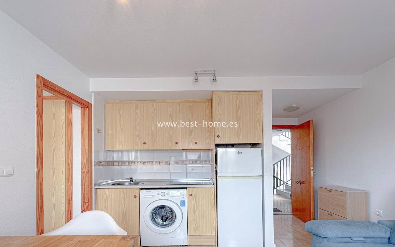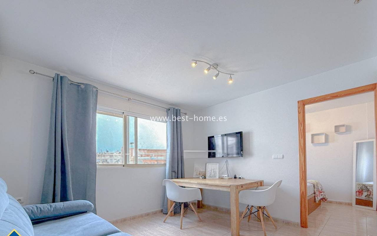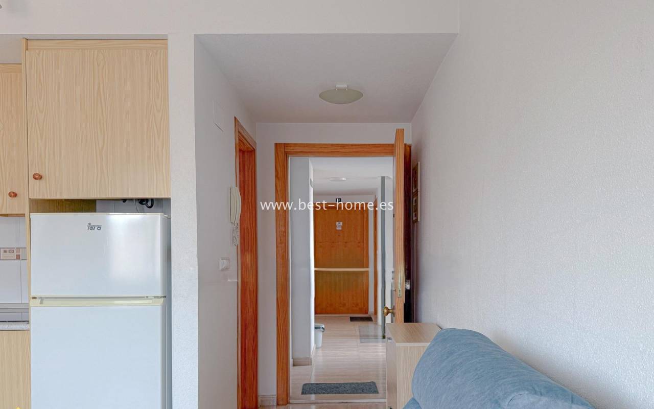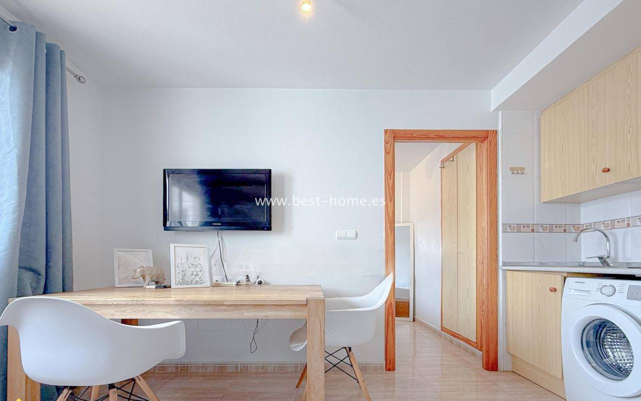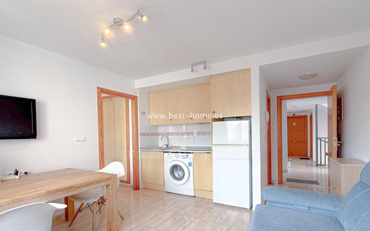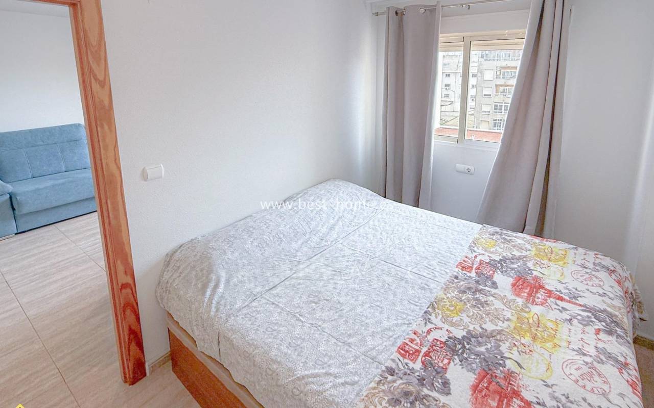 This 4th-floor apartment is located close to the city center and features a community pool. It features a living room with an open-plan kitchen equipped with appliances, a double bedroom with a built-in wardrobe, and a bathroom. The complex also boasts a residents' swimming pool. Nearby, you'll find a park, numerous shops, bars, cafes, and restauran