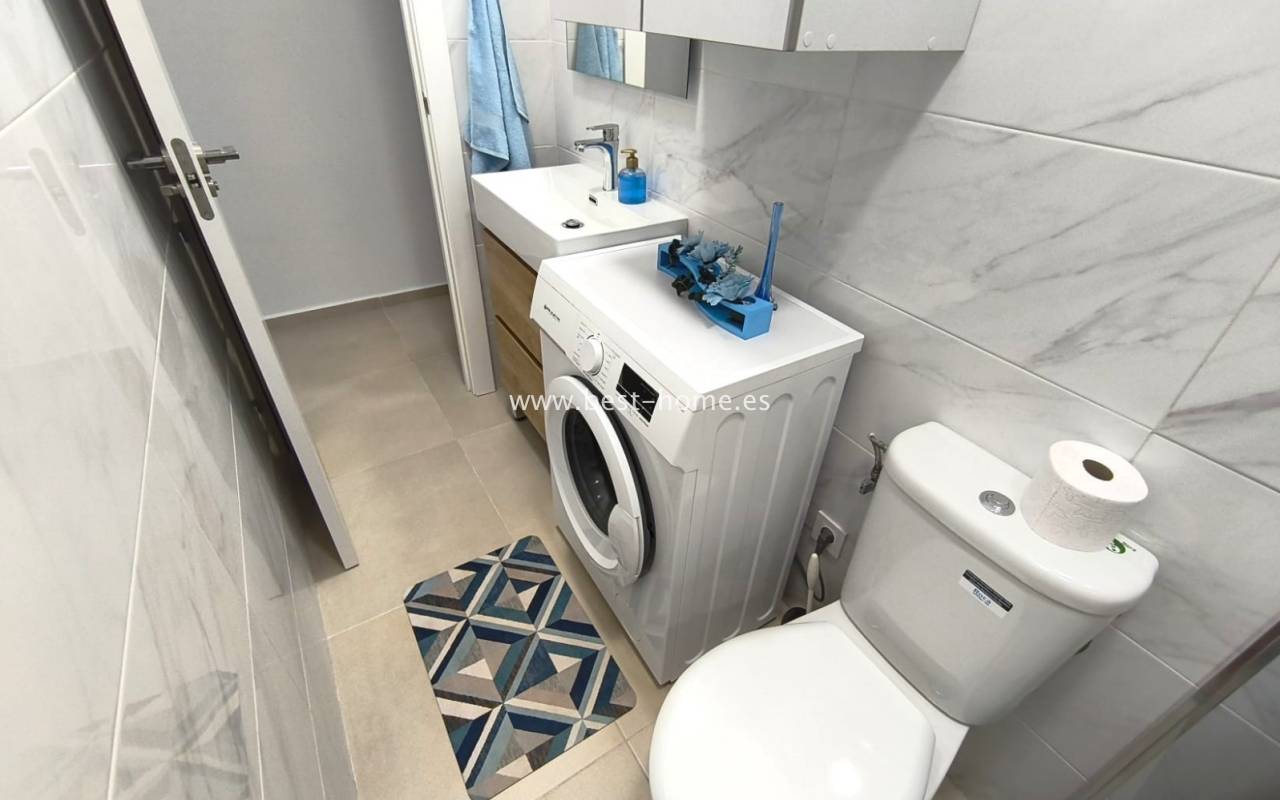 Apartament on 1 foot w zabudownie bungalowów, opdnowiony z ogromnym zabudowanym tarasem. Posada salon z wyjściem na zabudowany słoneczny taras z orientacją zachodnią, odnowioną kuchnię z nowoczesnym sprzętem AGD, dwuosobową sypialnię z dużą szafą i łazienkę. MIeszkanie jest umeblowane i wyposażone w klimatyzację. Apartament położony zaledwie 1 km od pięknej plaży Playa de Los Locos, znajduje się w spokojnej okolicy, co zapewnia atmosferę spokoju i relax. Jest również dogodnie położony w pobliżu wszystkich niezbędnych usług, co ułatwia codzienne życie.