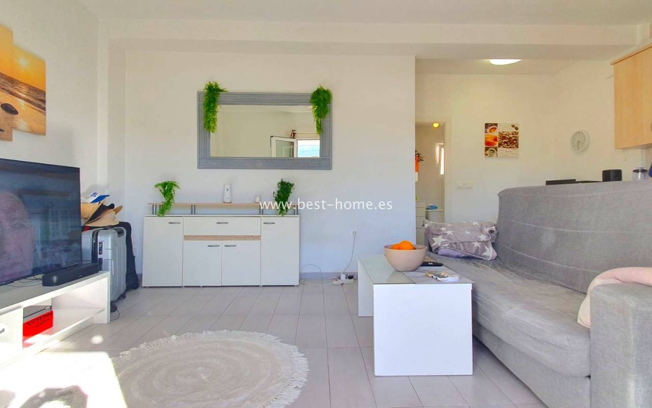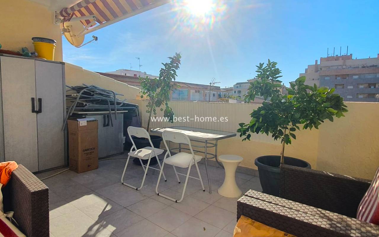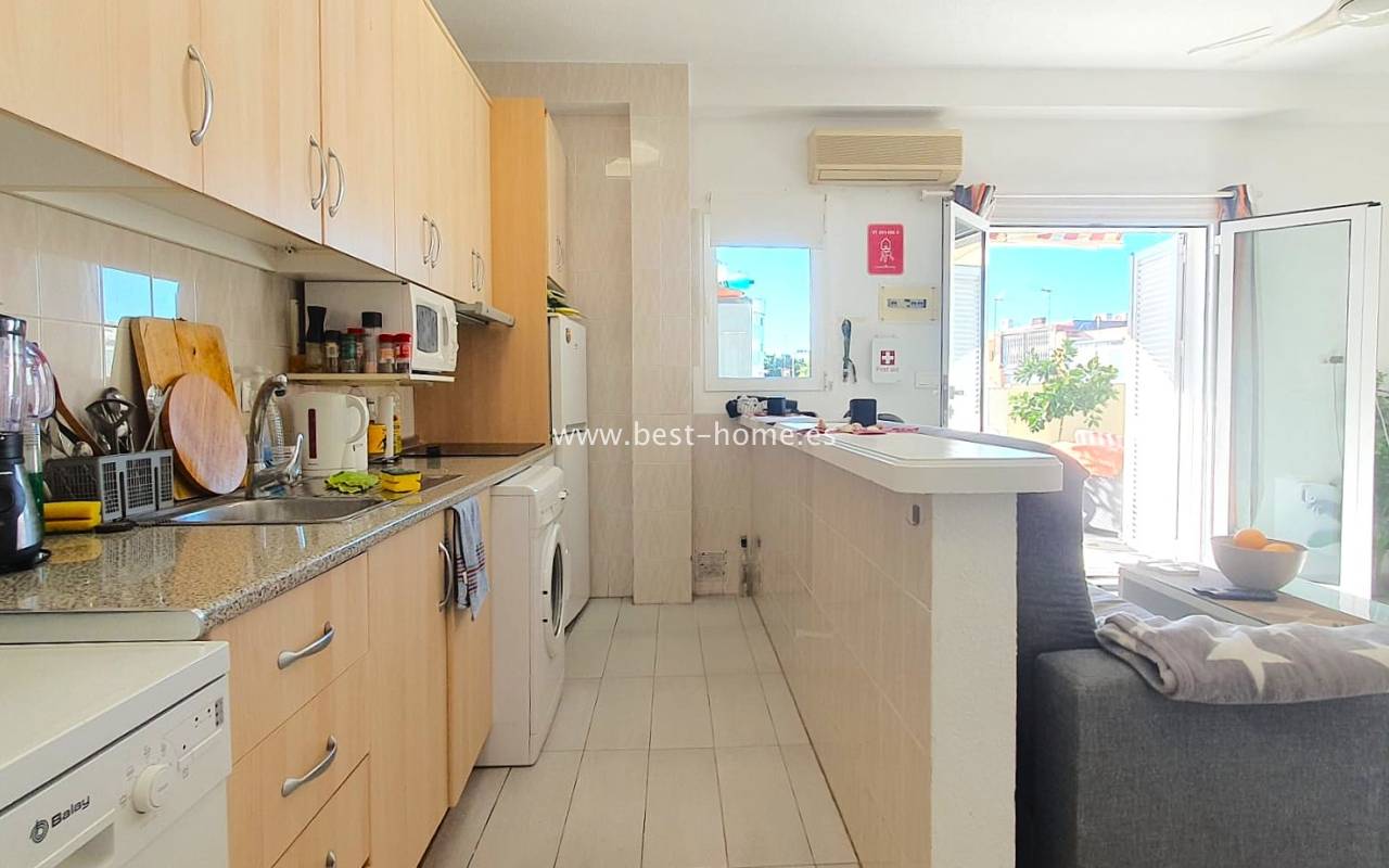Spacious penthouse in La Mata with a south-facing orientation, offering bright and sun-filled interiors. The apartment features 1 bedroom, 1 bathroom, and a generous living room with an open-plan kitchen, seamlessly connecting to a large, sunny terrace, perfect for relaxing and dining.