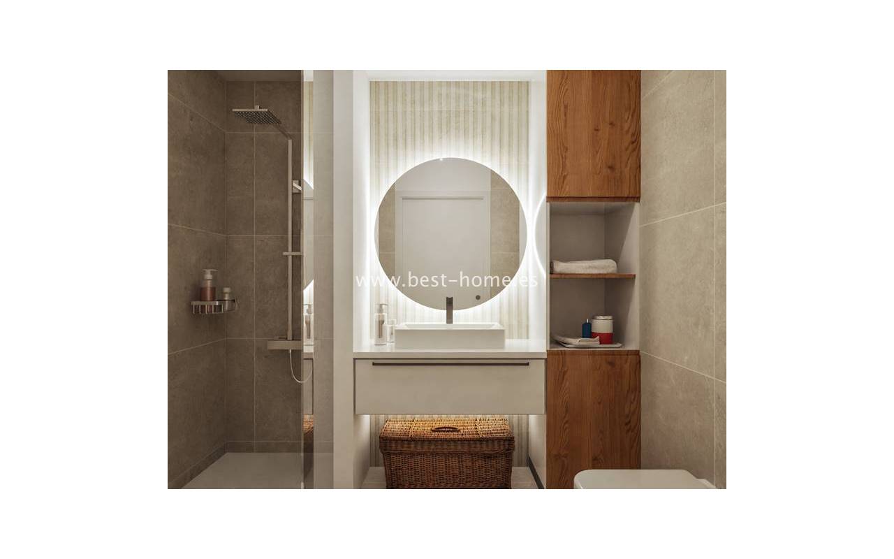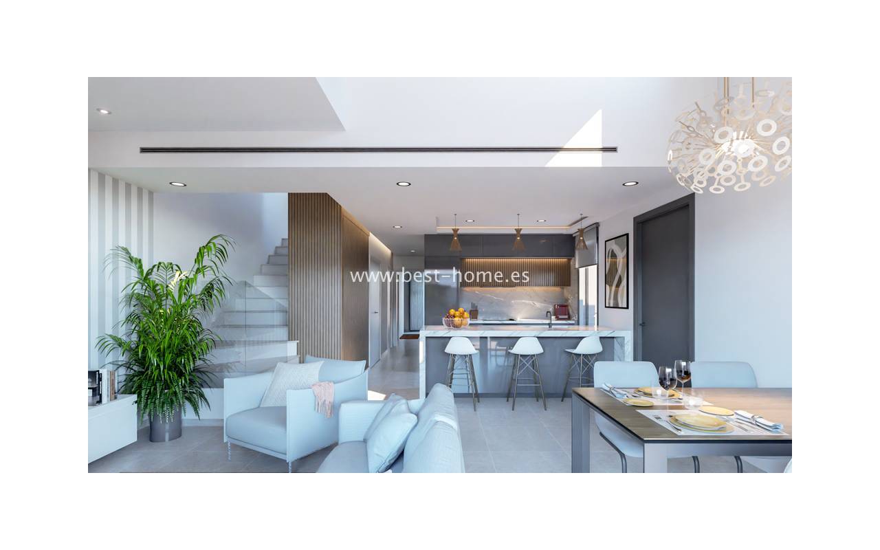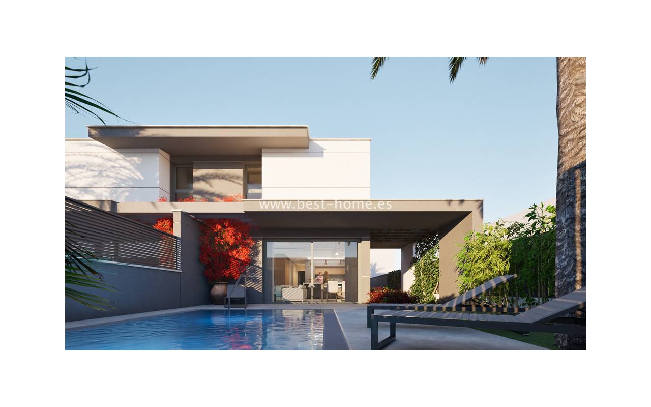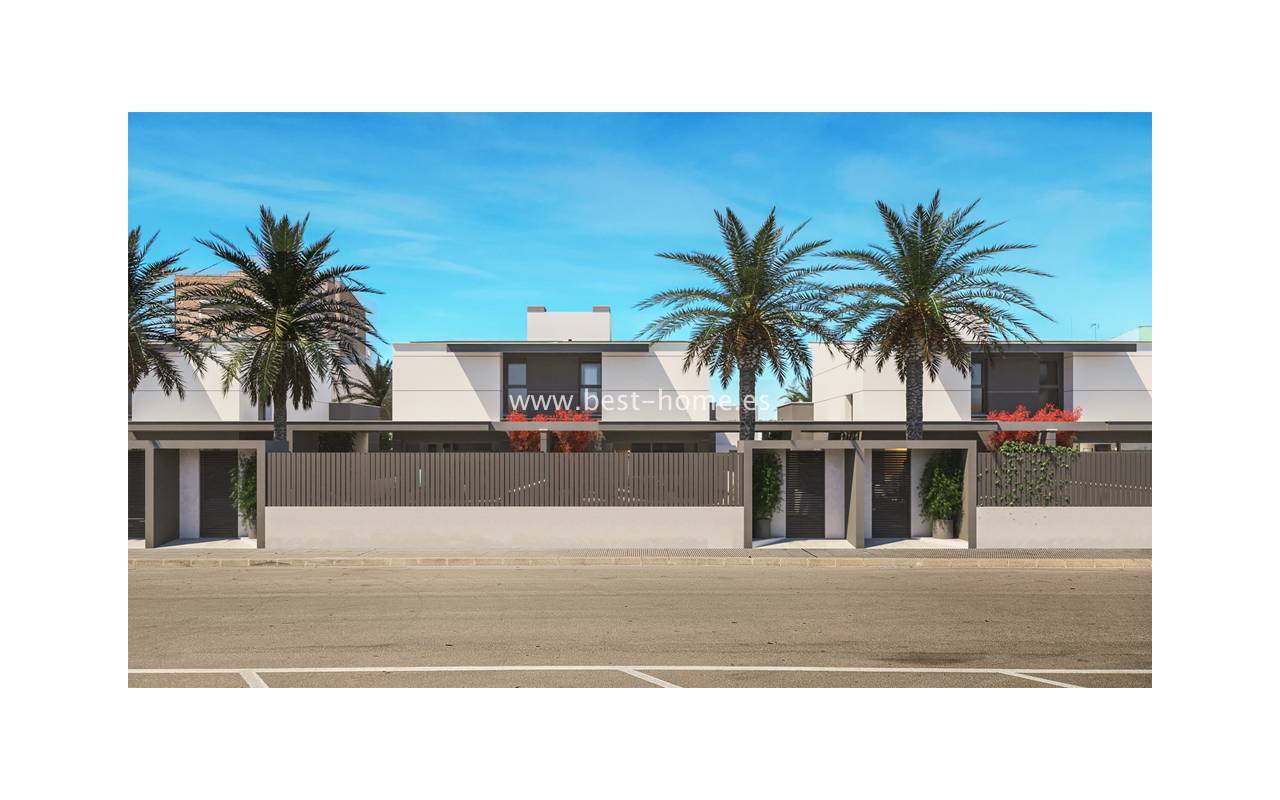 Modern villa in the charming town of Los Nietos, just a few steps from the beach on the Mar Menor (second line from the sea). The property consists of 3 bedrooms and 3 bathrooms, built with high-quality materials and finished in an elegant, contemporary style.