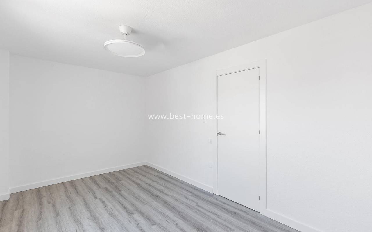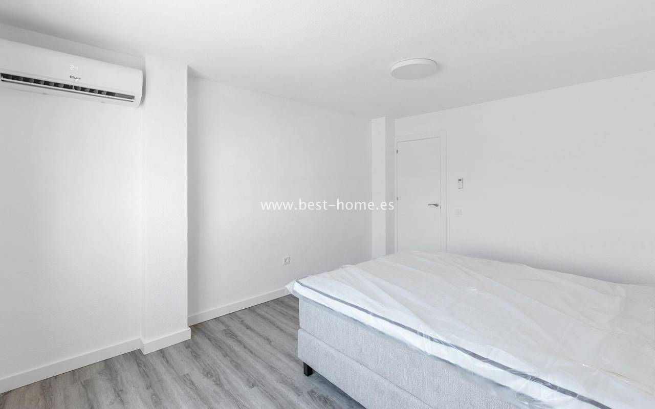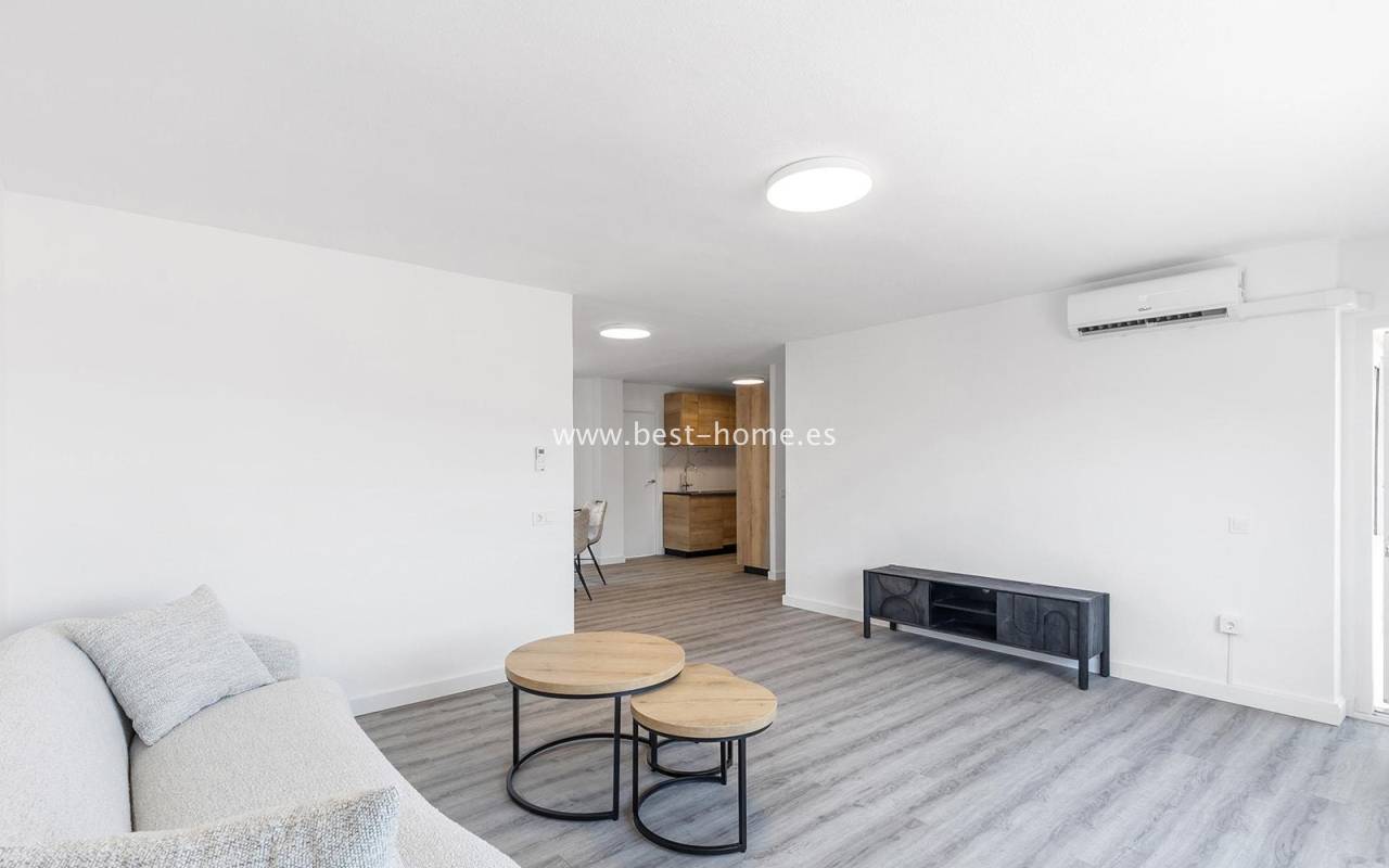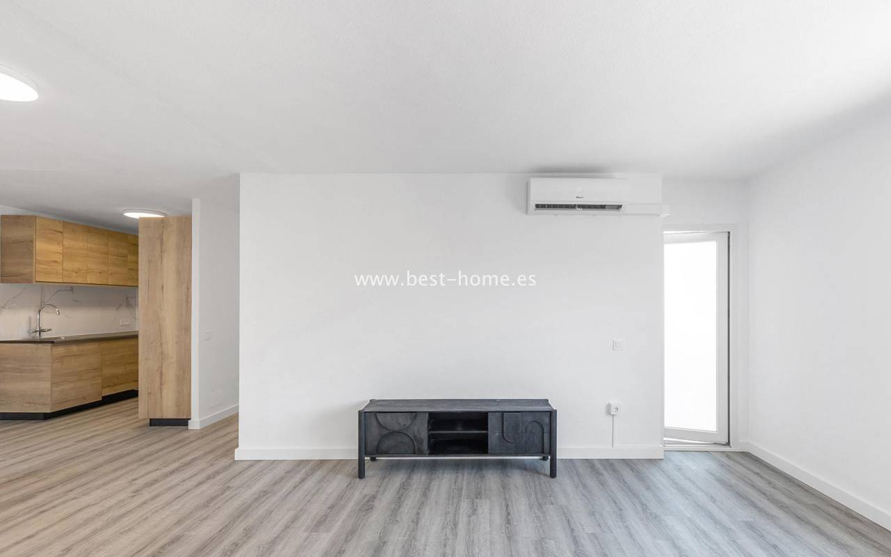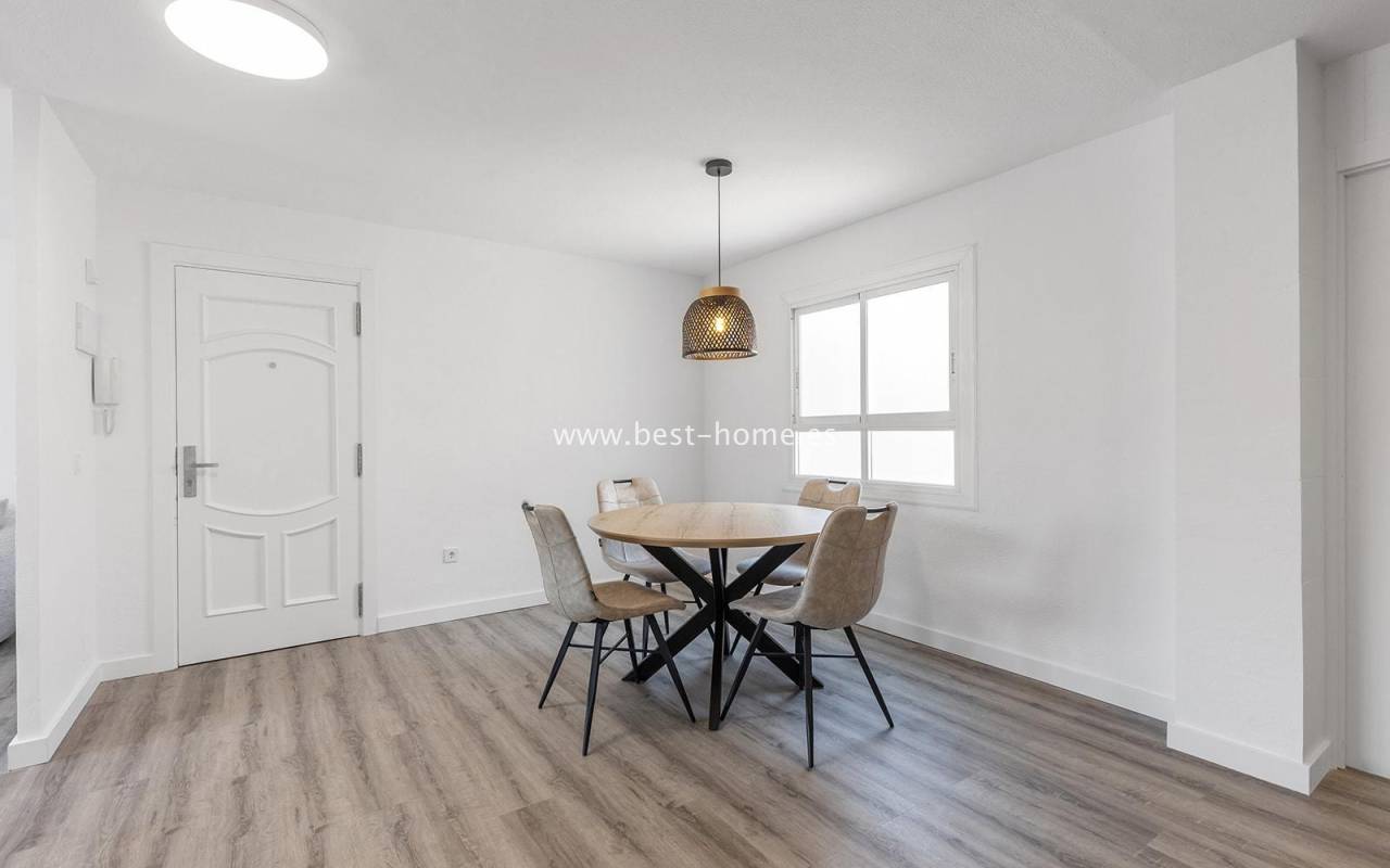 This modern 90m² apartment is located in the charming village of Benijófar, near Rojales. Located on the third floor, it has been completely renovated with new electrical and plumbing installations. The stylish bathroom features a walk-in shower and a new boiler. The flooring has been updated and the walls have been freshly painted. The kitchen is fully equipped (oven, ceramic hob, extractor hood, dishwasher, refrigerator, and freezer). Elegant new interior doors and lighting are also included. The property is equipped with new air conditioning in the living room and bedrooms and is sold fully furnished. This apartment is an ideal opportunity for anyone looking for a home ready to move in from day one, away from the crowded promenade during the holiday season, in a quiet and peaceful location.