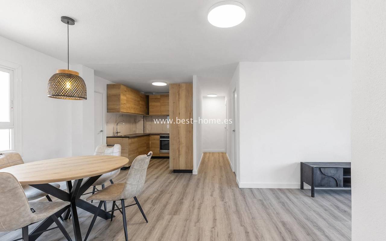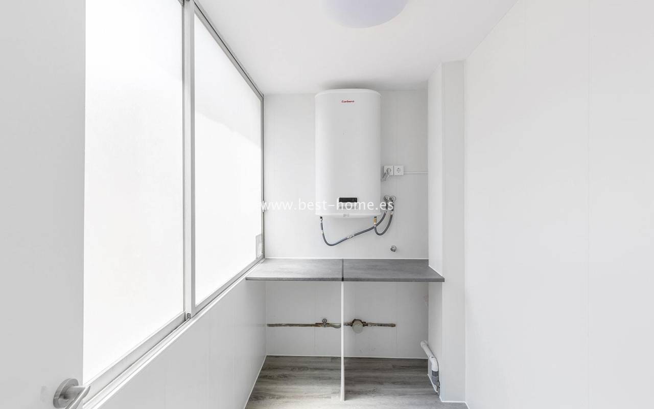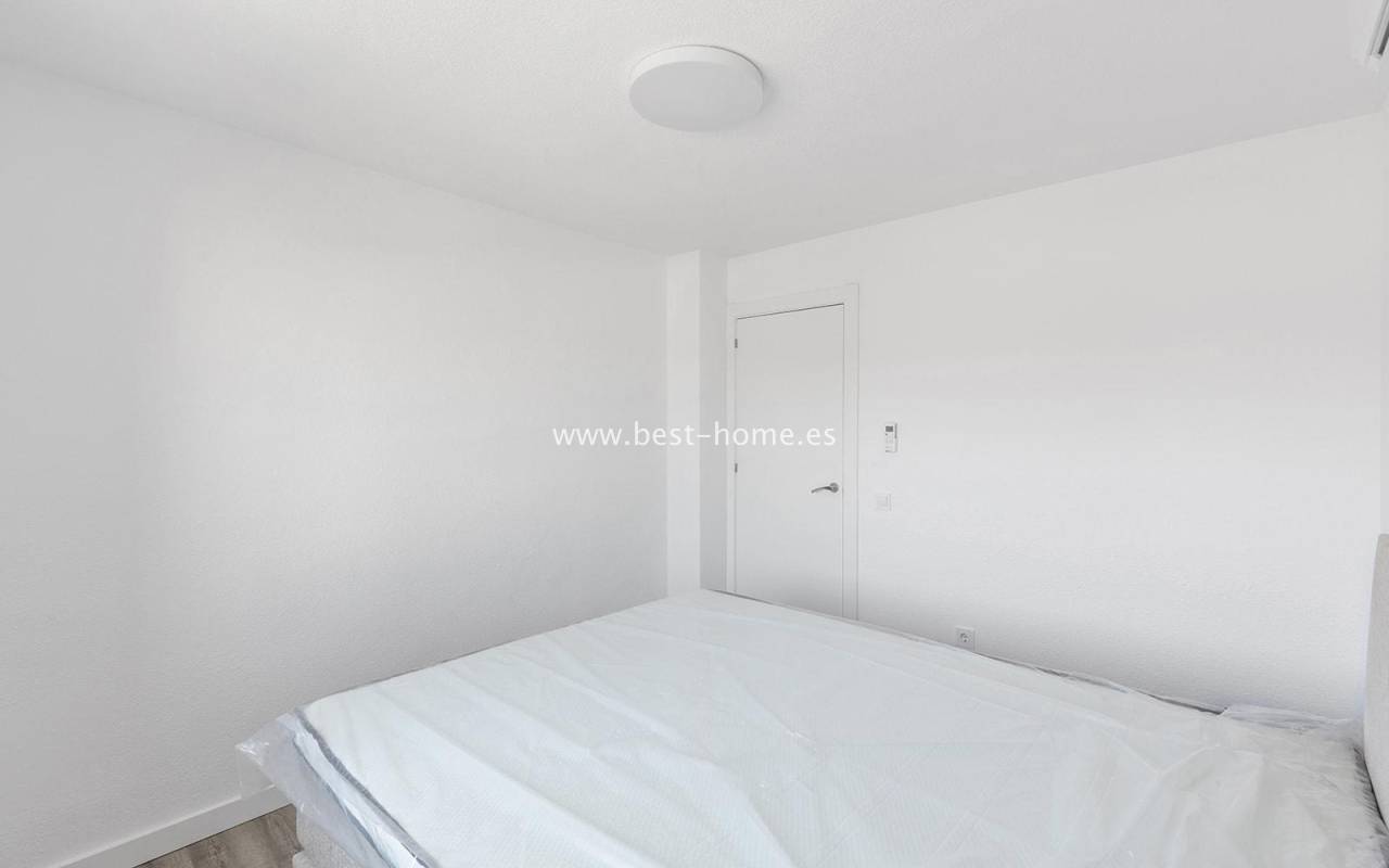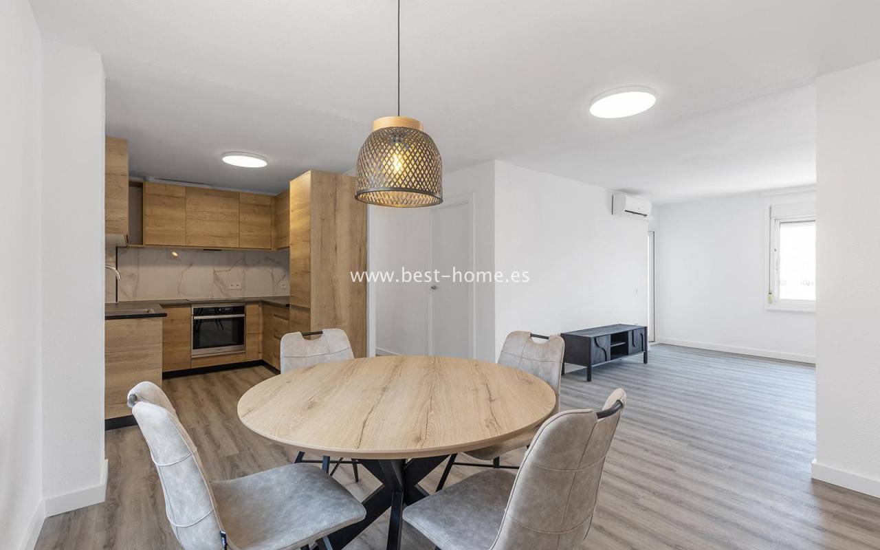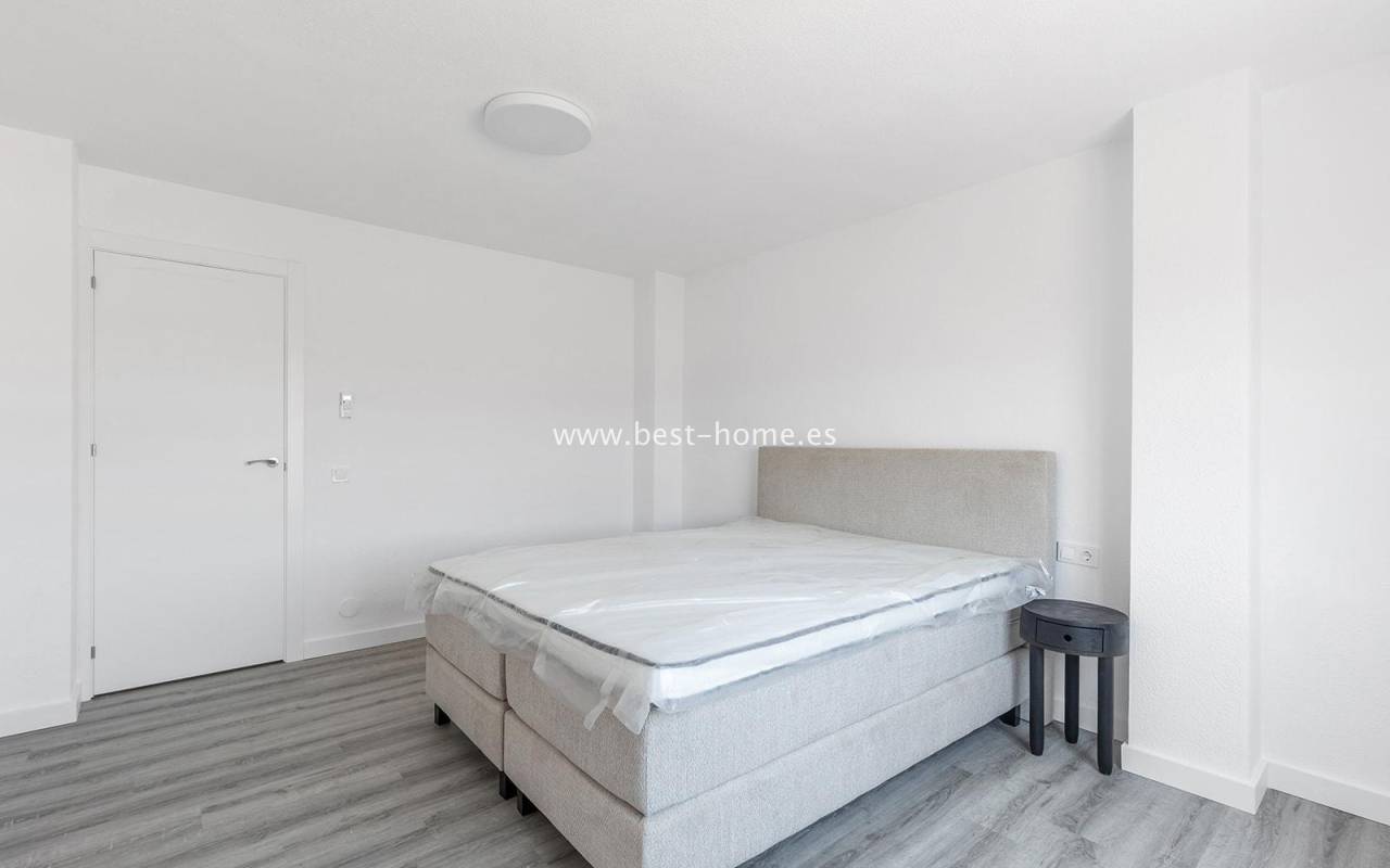 This modern 90m² apartment is located in the charming village of Benijófar, near Rojales. Located on the third floor, it has been completely renovated with new electrical and plumbing installations. The stylish bathroom features a walk-in shower and a new boiler. The flooring has been updated and the walls have been freshly painted. The kitchen is fully equipped (oven, ceramic hob, extractor hood, dishwasher, refrigerator, and freezer). Elegant new interior doors and lighting are also included. The property is equipped with new air conditioning in the living room and bedrooms and is sold fully furnished. This apartment is an ideal opportunity for anyone looking for a home ready to move in from day one, away from the crowded promenade during the holiday season, in a quiet and peaceful location.