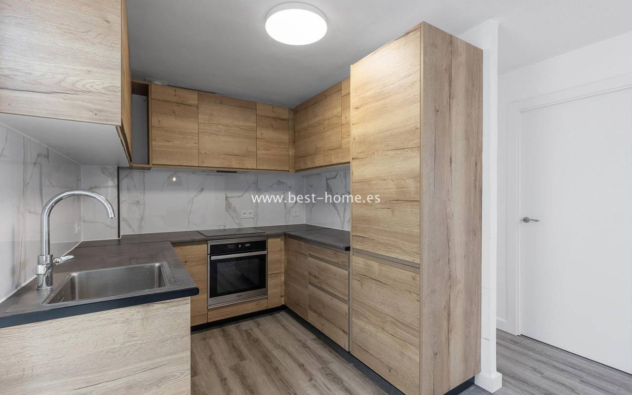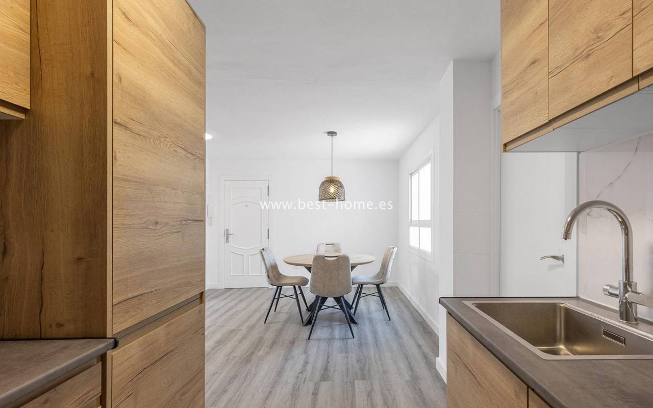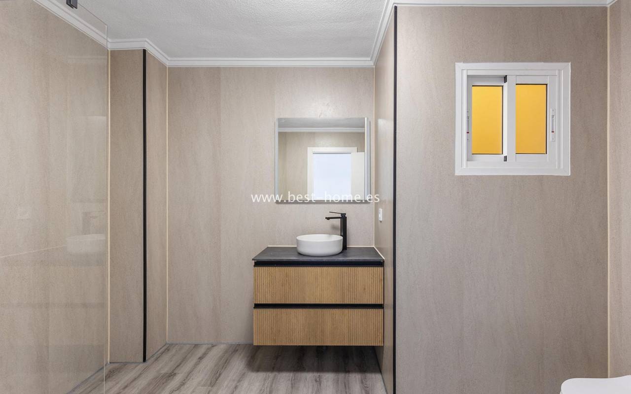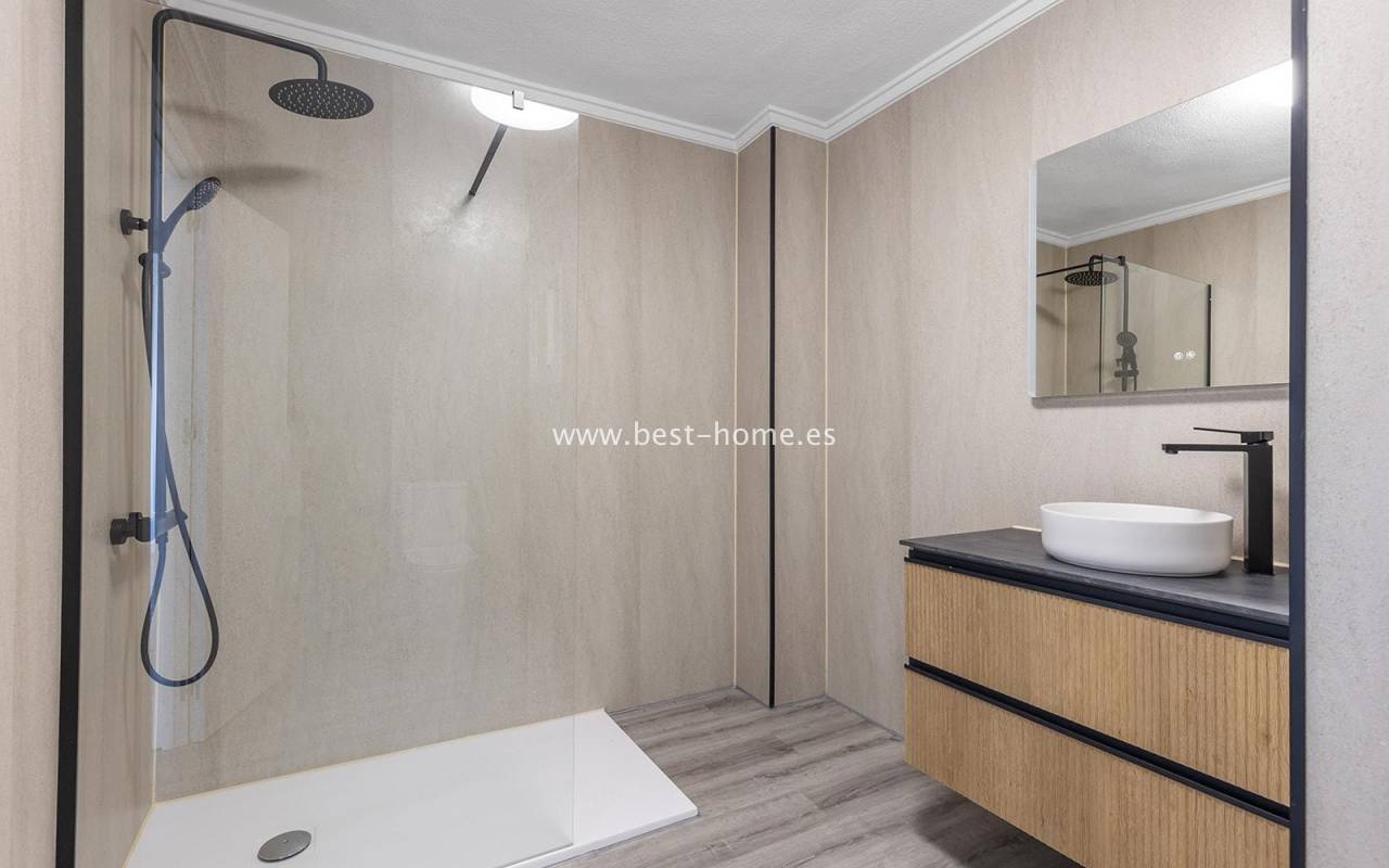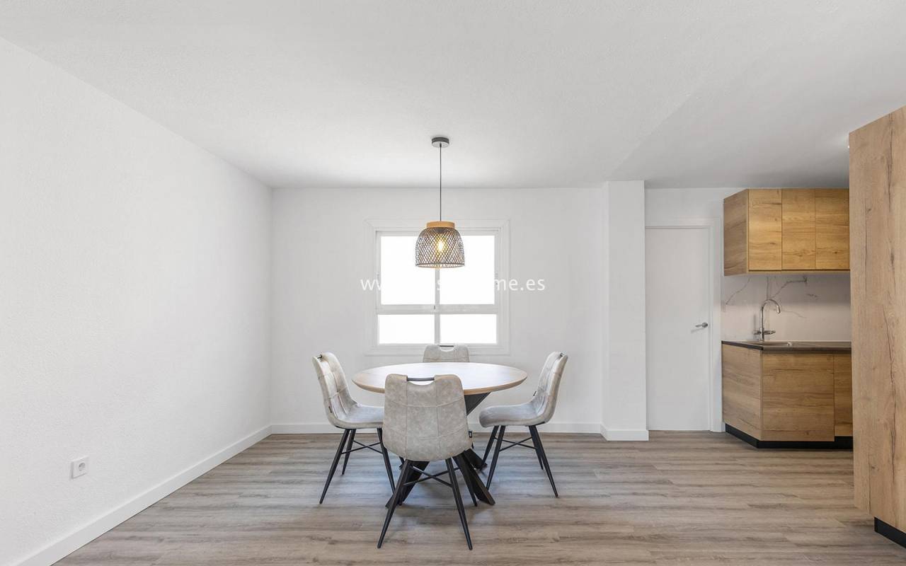This modern 90m² apartment is located in the charming village of Benijófar, near Rojales. Located on the third floor, it has been completely renovated with new electrical and plumbing installations. The stylish bathroom features a walk-in shower and a new boiler. The flooring has been updated and the walls have been freshly painted. The kitchen is fully equipped (oven, ceramic hob, extractor hood, dishwasher, refrigerator, and freezer). Elegant new interior doors and lighting are also included. The property is equipped with new air conditioning in the living room and bedrooms and is sold fully furnished. This apartment is an ideal opportunity for anyone looking for a home ready to move in from day one, away from the crowded promenade during the holiday season, in a quiet and peaceful location.