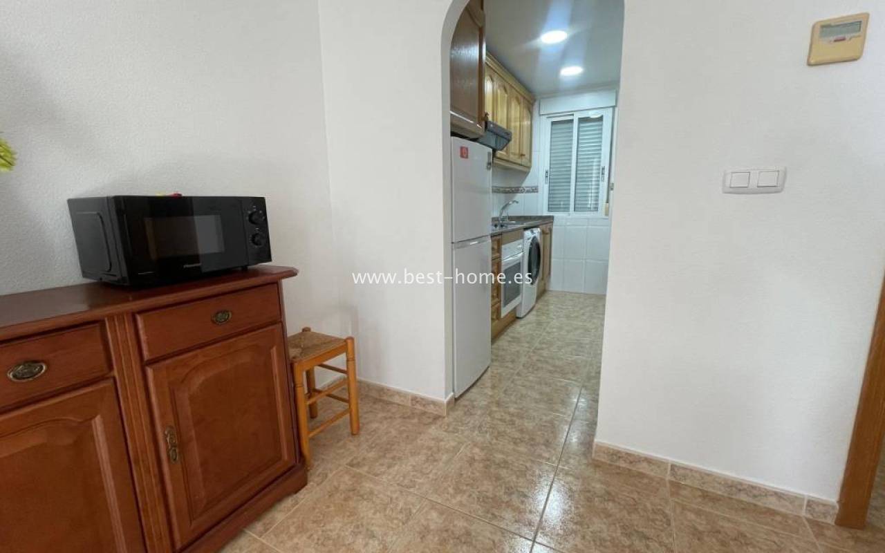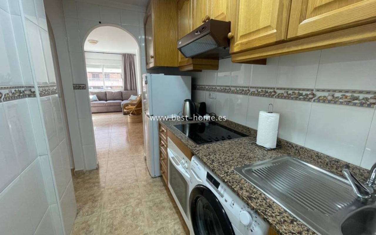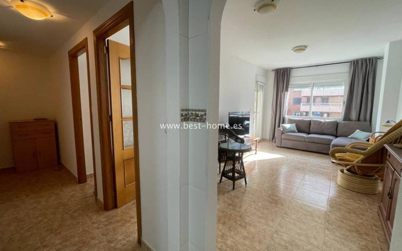 The apartment consists of three bedrooms, two bathrooms, a separate kitchen, and a sunny living room with a dining area. Both the living room and bedroom open onto a terrace overlooking the street and the sea. The price includes furniture, appliances, and central air conditioning. The property is located on the third floor. There are numerous bars, restaurants, and cafes nearby.