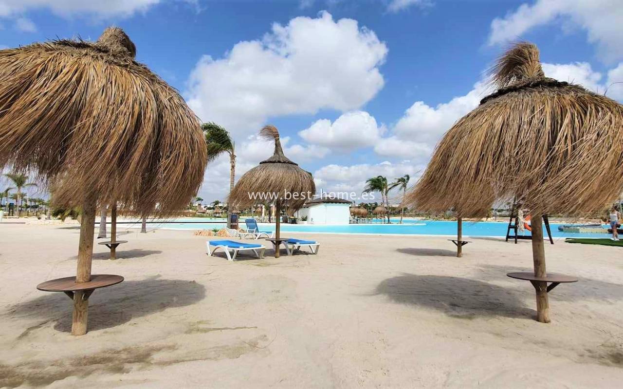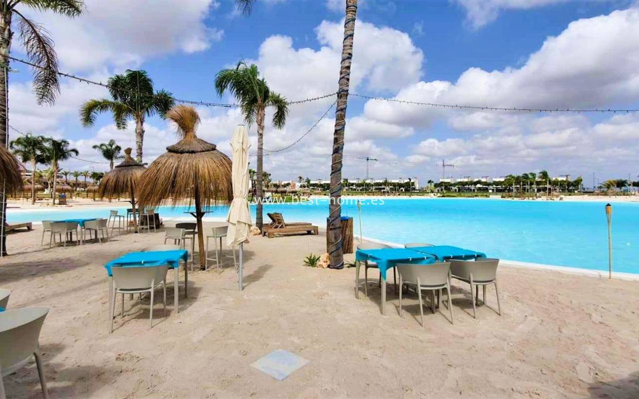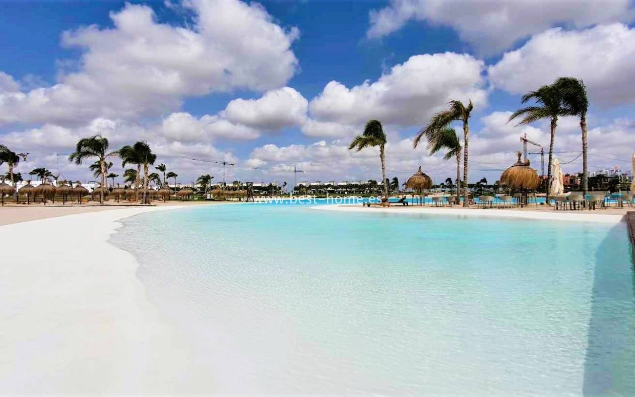The over 700,000 m² area, accessible exclusively to residents, will feature a multitude of attractions, including a crystal-clear lagoon (16,000 m²) with islands, surrounded by a magnificent beach (8,000 m²), a nature reserve with lush vegetation and a yoga area, numerous walking and cycling paths, mini golf, outdoor gyms, playgrounds, tennis courts, and beach volleyball courts. Water sports enthusiasts will be able to use kayaks and sup boards in the lagoon. Of course, there will also be a wide selection of bars, restaurants, and shops.