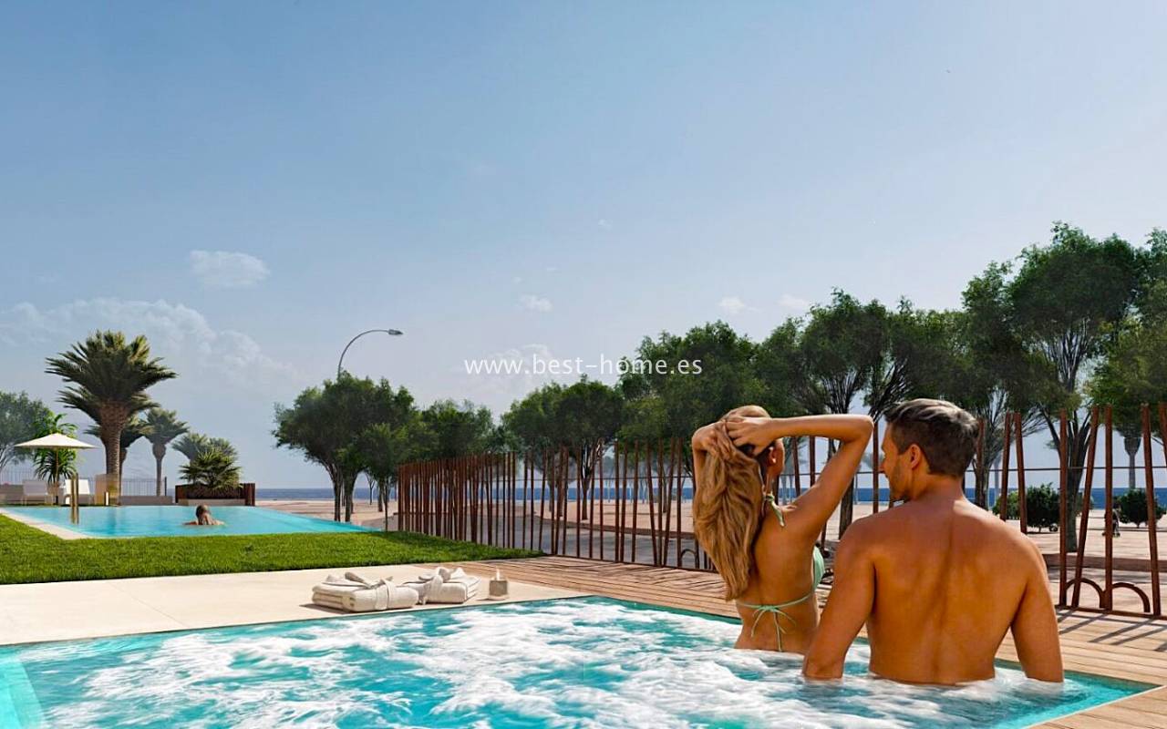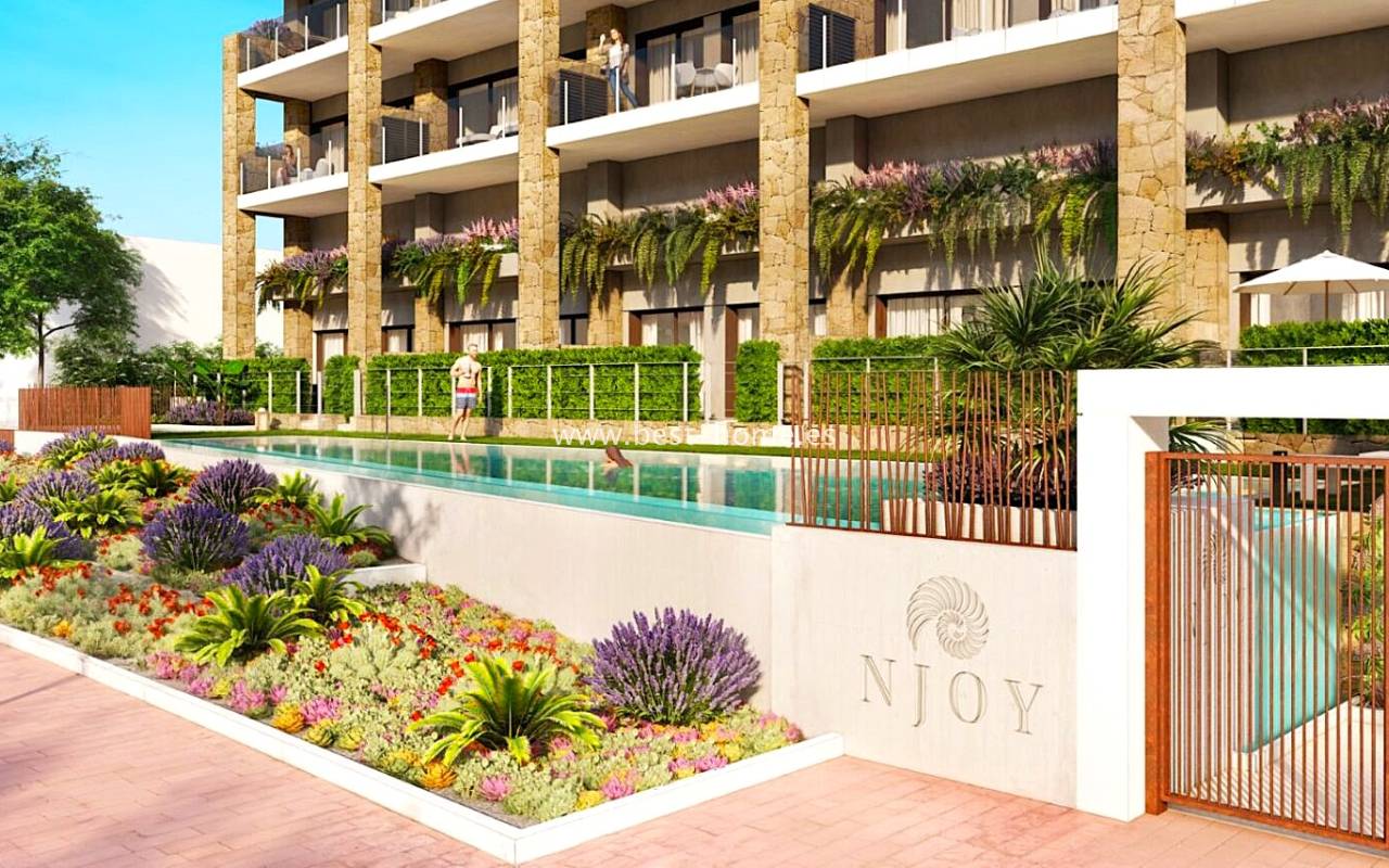 These new apartments are being built on the first line of the coast in the charming Spanish town of Villajoyosa. The last two apartments are available, each with two bedrooms with fitted wardrobes, two bathrooms, and a fitted kitchen with a dining area and living room. All rooms will have access to a 21 m² terrace overlooking the communal pool, park, and sea. The price includes central hot/cold air conditioning, kitchen units with appliances, full bathrooms, a parking space, and a storage unit in the basement. Residents will also benefit from an infinity pool with sea views, a jacuzzi, and a gym. The last two apartments are available on the second floor, priced at €663,000 and €693,000.