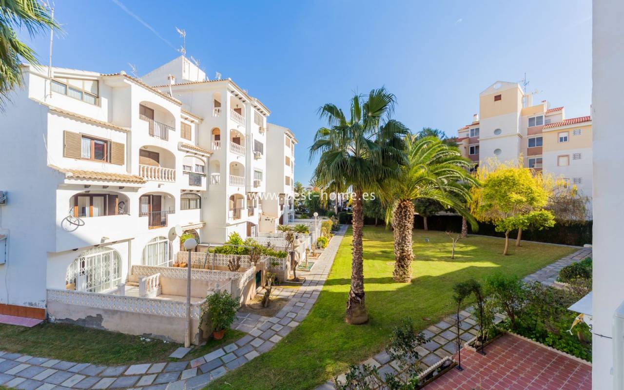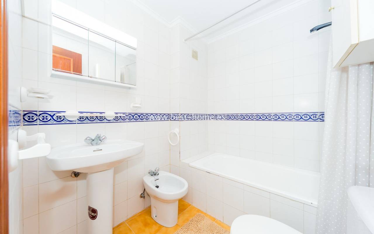This well-priced apartment is located in a beautiful, palm-lined Mediterranean-style development. It features a living room with access to a terrace, an open-plan kitchen with appliances, a double bedroom with a built-in wardrobe, and a bathroom. The apartment is furnished, bright, and very functional. Ideal for holiday or long-term rentals. The Calas Blancas development boasts three swimming pools for residents' use. Nearby, you'll find a grocery store, bars, restaurants, and cafes.