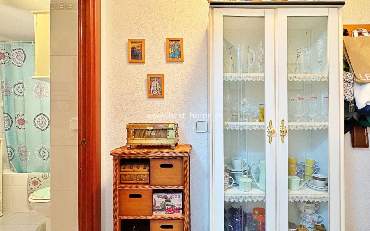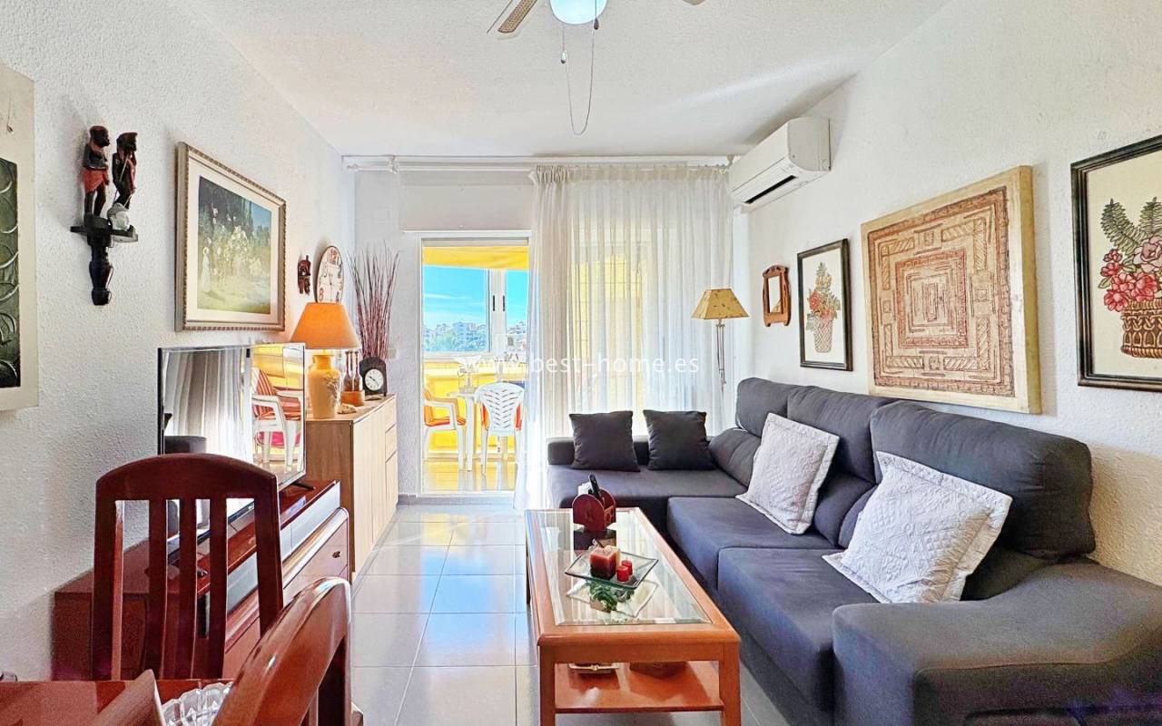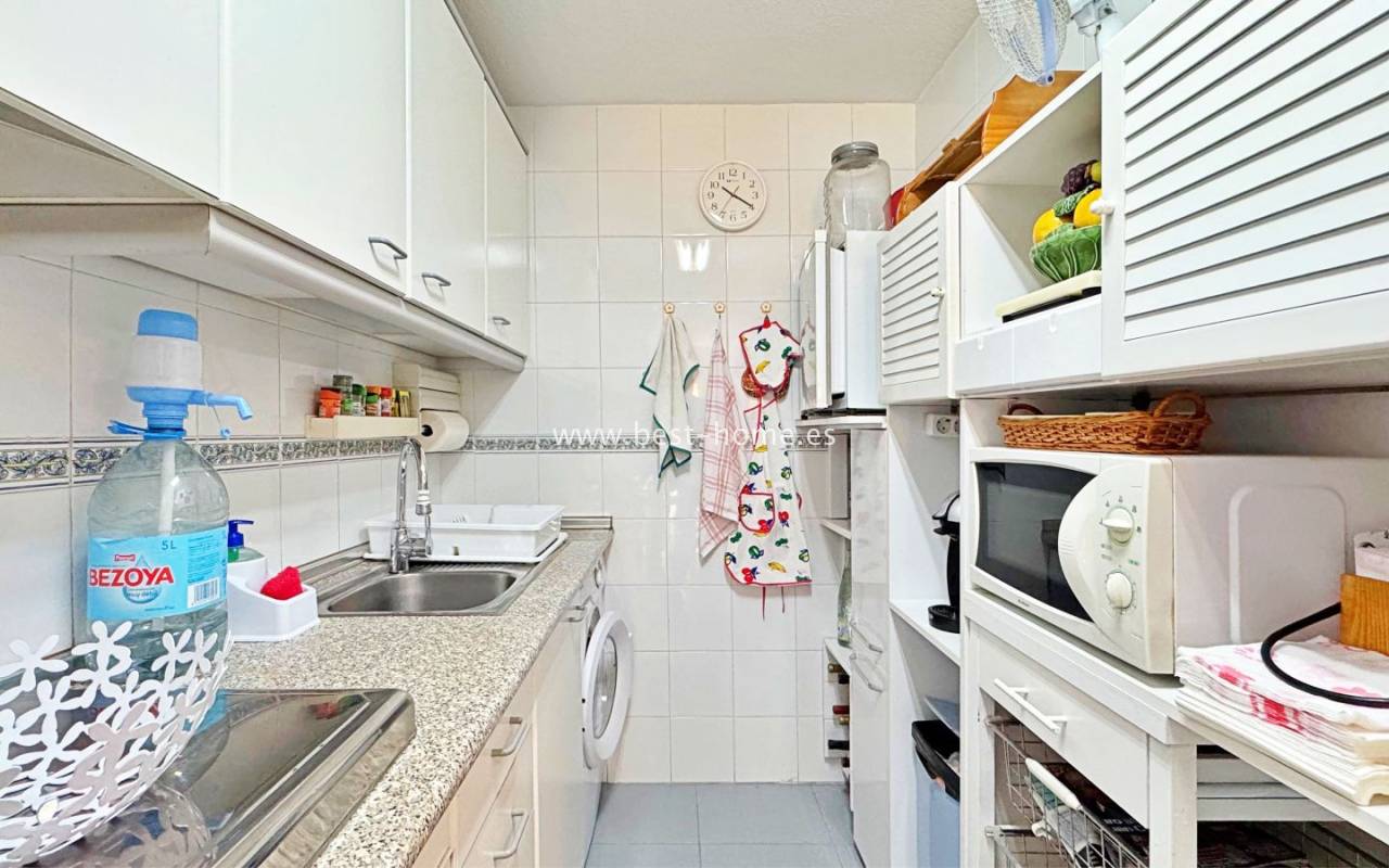 This apartment is located in a quiet area of Punta Prima. The property is on the fourth floor and comprises one bedroom, a bathroom, a separate kitchen, and a living room with a dining area. Both the bedroom and living room open onto a sunny terrace with beautiful, open views of the surrounding area and the sea. The development boasts a communal swimming pool. The apartment is sold unfurnished. This is a very attractive offer, as the sea is just 200 meters away.