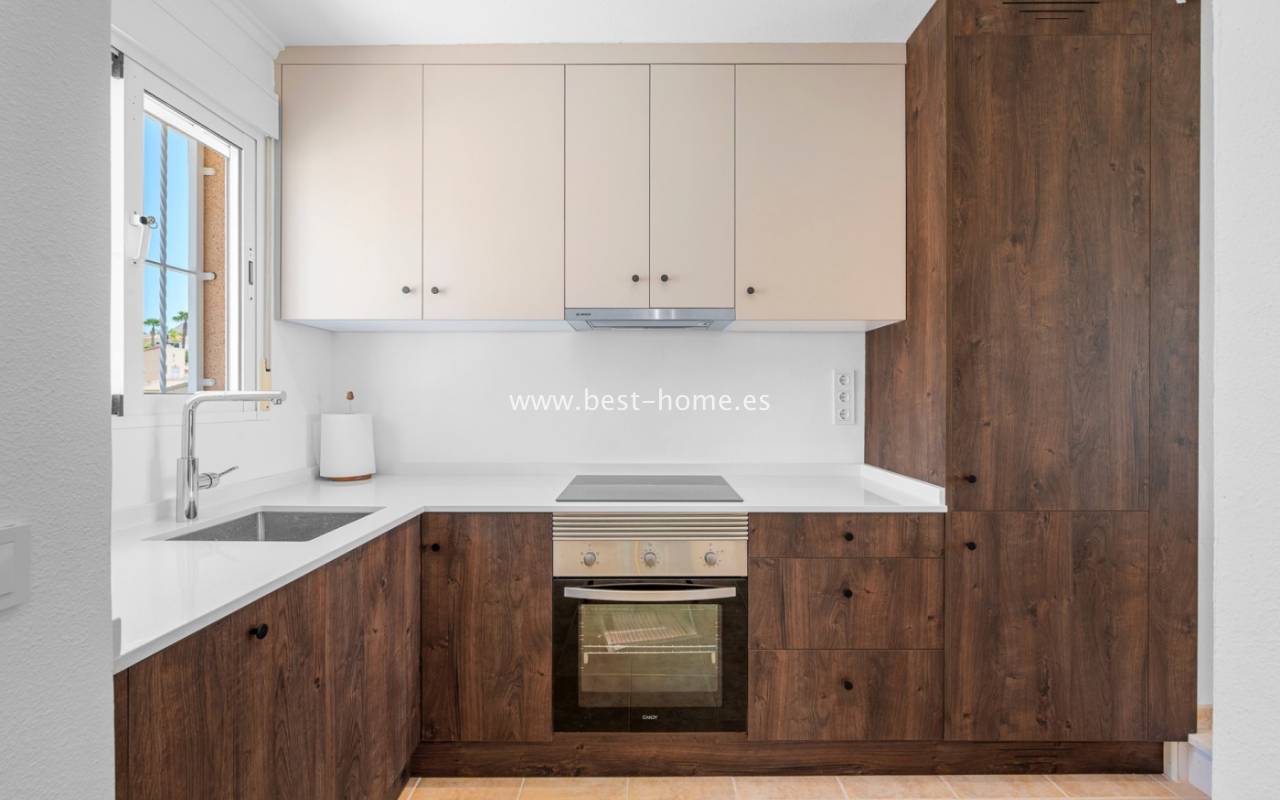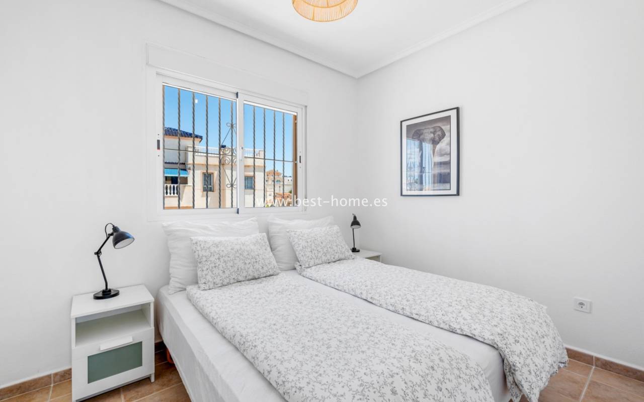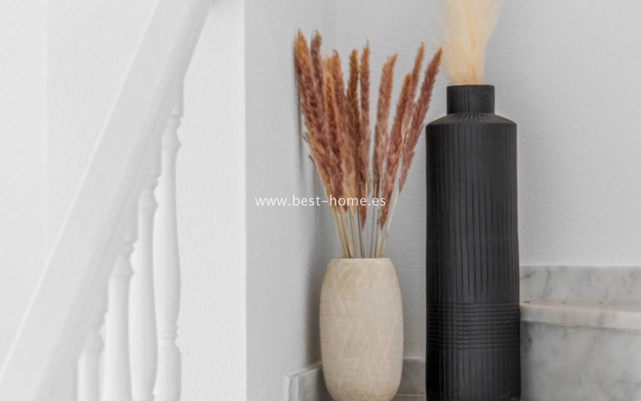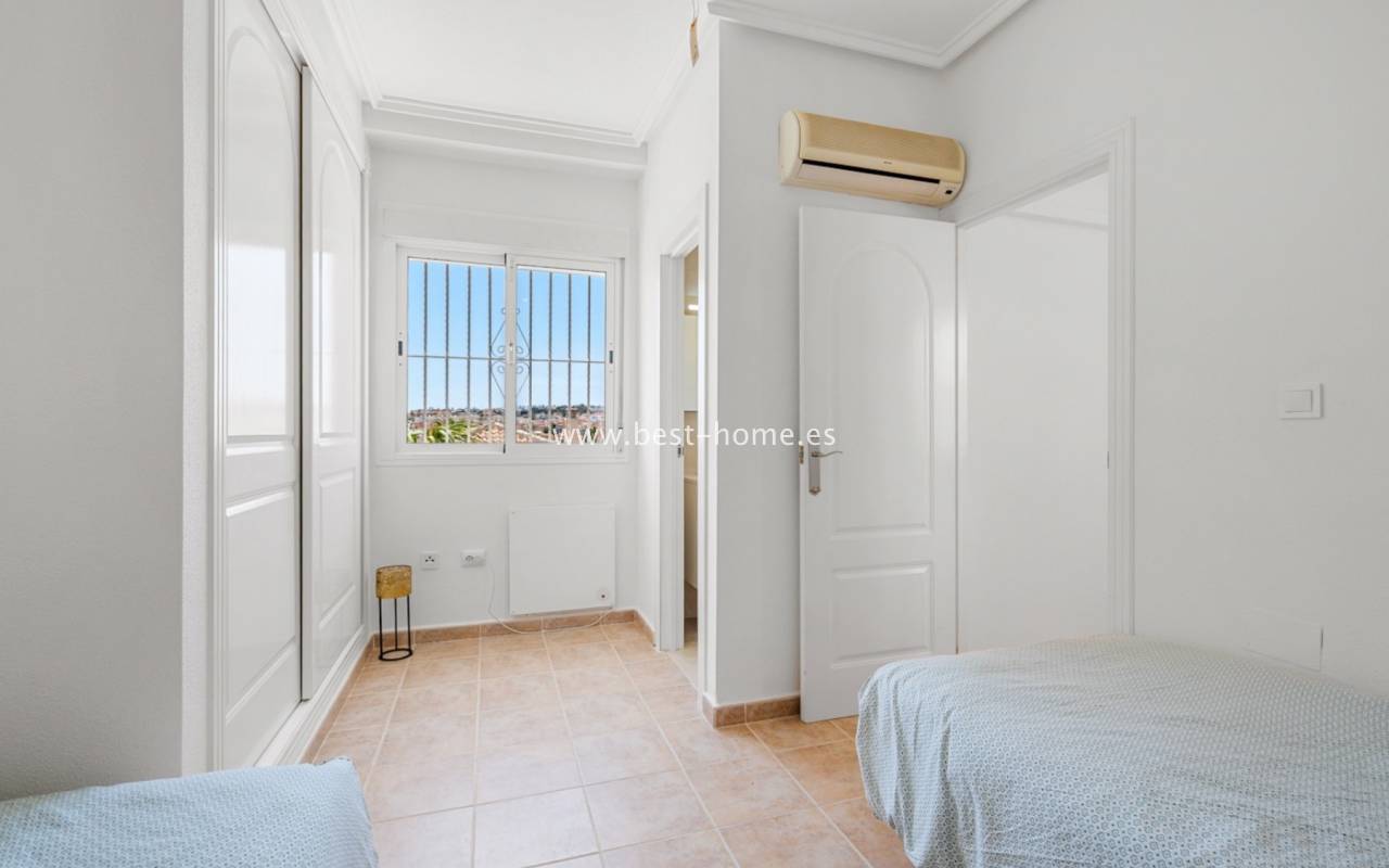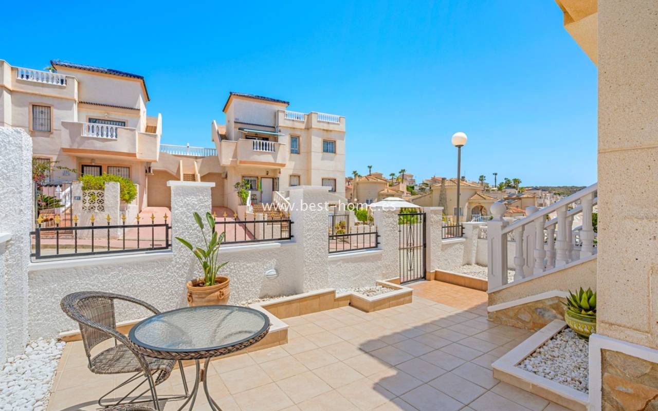 This fantastic terraced house boasts a private garden and picturesque views of the La Marquesa golf course. Situated on a 137 m² plot, it has three levels. On the ground floor, you'll find a bright, spacious, boho-style living room with an open-plan dining area, followed by a separate kitchen equipped with appliances. On the first floor, you'll find two double bedrooms with built-in wardrobes, a guest toilet, and a charming, large southwest-facing terrace overlooking the La Marquesa golf course, the mountains, and the surrounding green spaces, perfect for al fresco dining, relaxing in the sun, or entertaining guests. On the second floor, you'll find a third bedroom with two single beds and a living room with a TV. Upstairs, you'll find a beautiful solarium with fantastic, colorful views of the entire development. The property is equipped with air conditioning and is being sold furnished. Thanks to its southwest exposure and access to the well-maintained communal swimming pool, the apartment enjoys excellent sunlight throughout the day. Its location, just minutes from La Marquesa Golf Course, makes it an ideal choice for golf enthusiasts or those seeking a peaceful, green setting close to all amenities.
