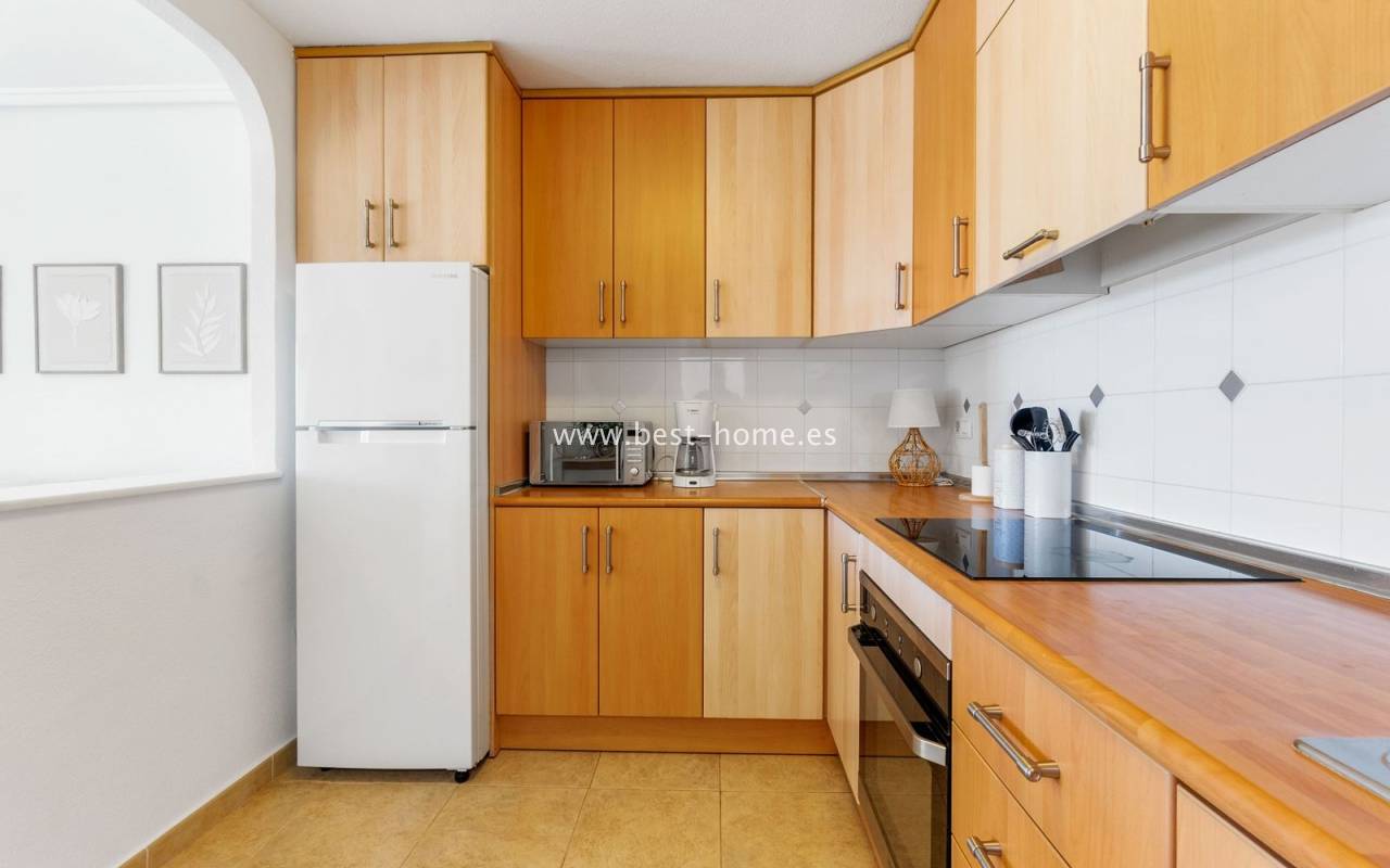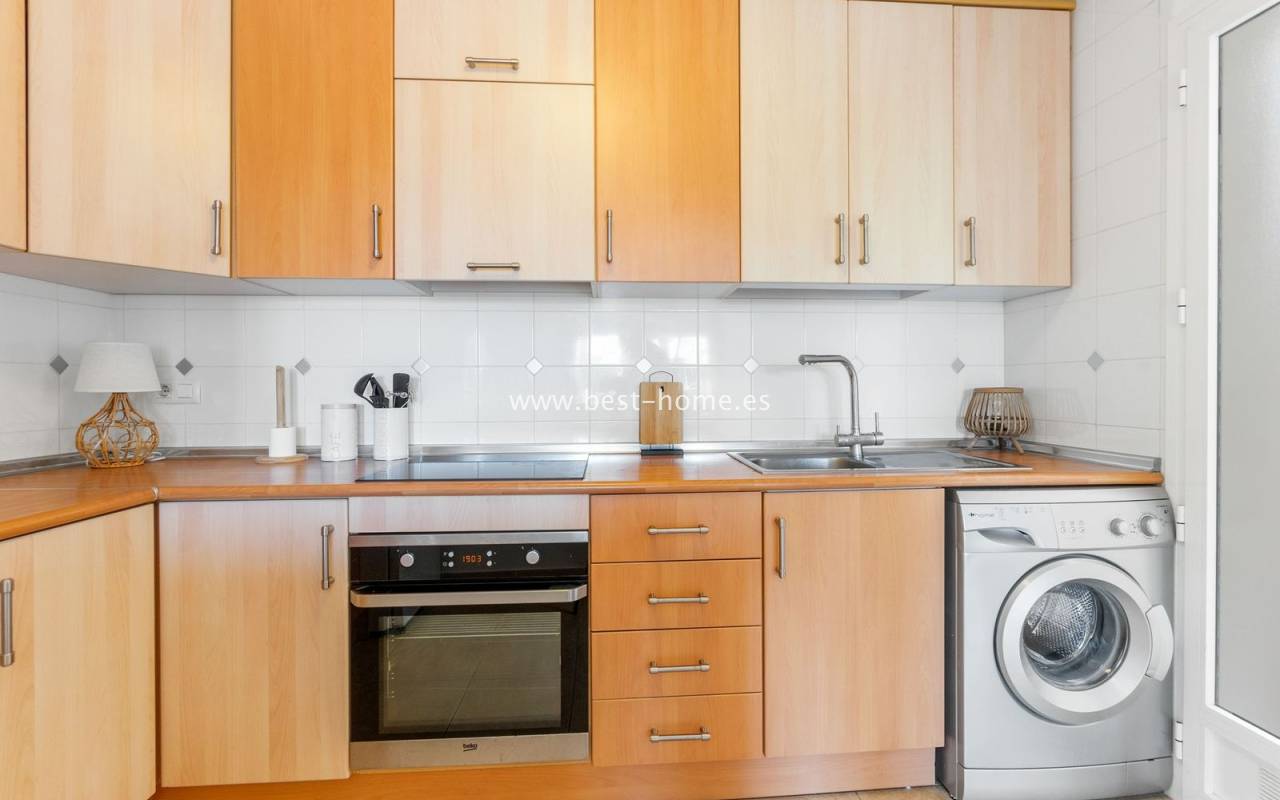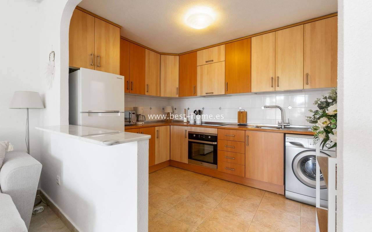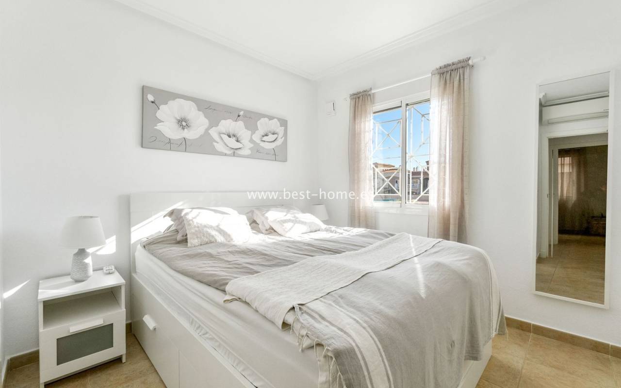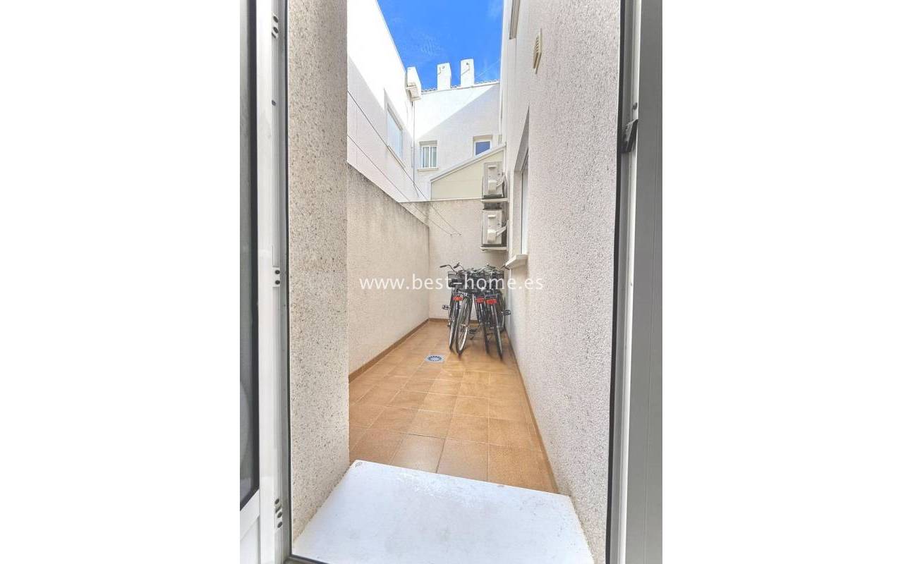 This ground-floor apartment with a private garden is situated in a prime location in the prestigious Altos de la Bahía development in Torrevieja. The property offers two cozy bedrooms and two elegant bathrooms, providing the perfect setting for everyday living. The spacious living room with an open-plan kitchen creates a welcoming and functional space for socializing, while the sunny terrace and charming garden are perfect for relaxing and enjoying the surroundings. The patio offers the perfect place to unwind, offering stunning views of the pool. The apartment is sold fully furnished and equipped, with air conditioning installed, making it ready for immediate occupancy. The development also includes a swimming pool for residents. All necessary amenities, such as restaurants, supermarkets, shopping centers, and the weekly municipal market, are within walking distance. La Mata and Los Locos beaches, known for their clean sand and crystal-clear waters, are within walking distance, while the area is renowned for its beautiful green spaces. Several bus stops are nearby, providing quick access to the city center.