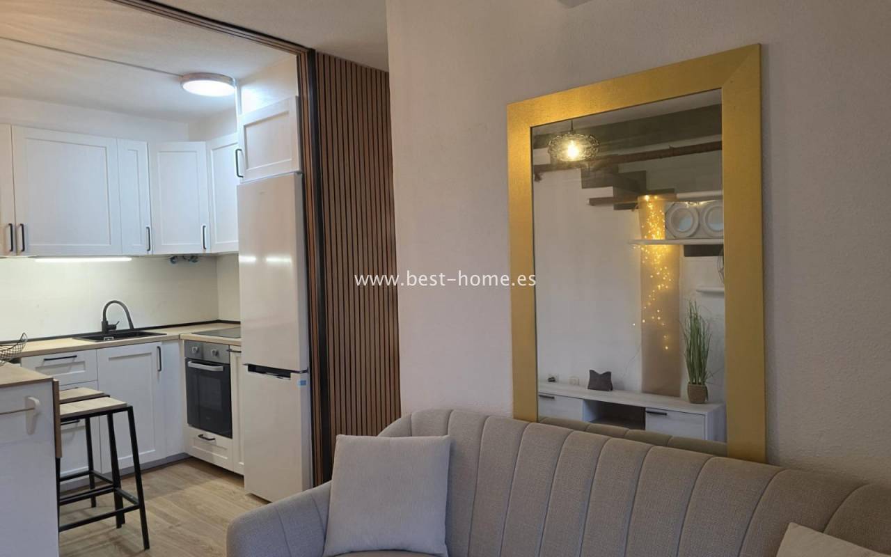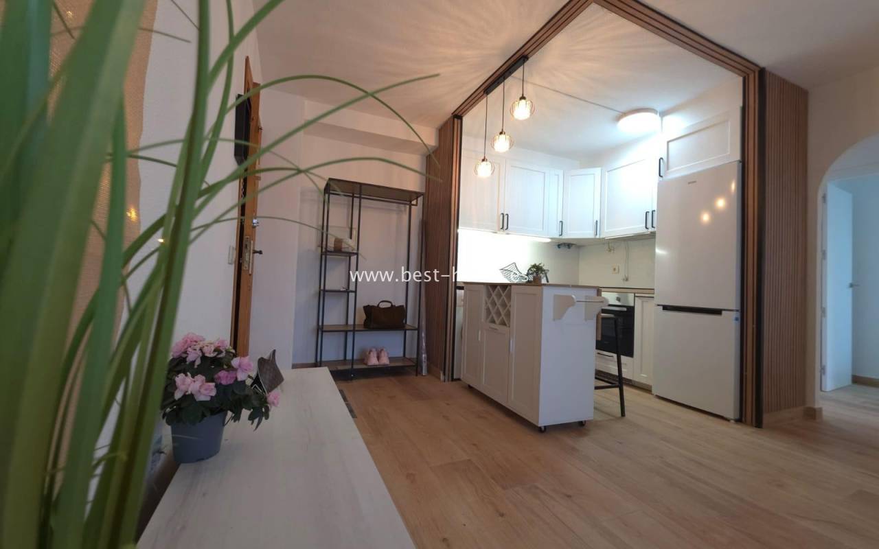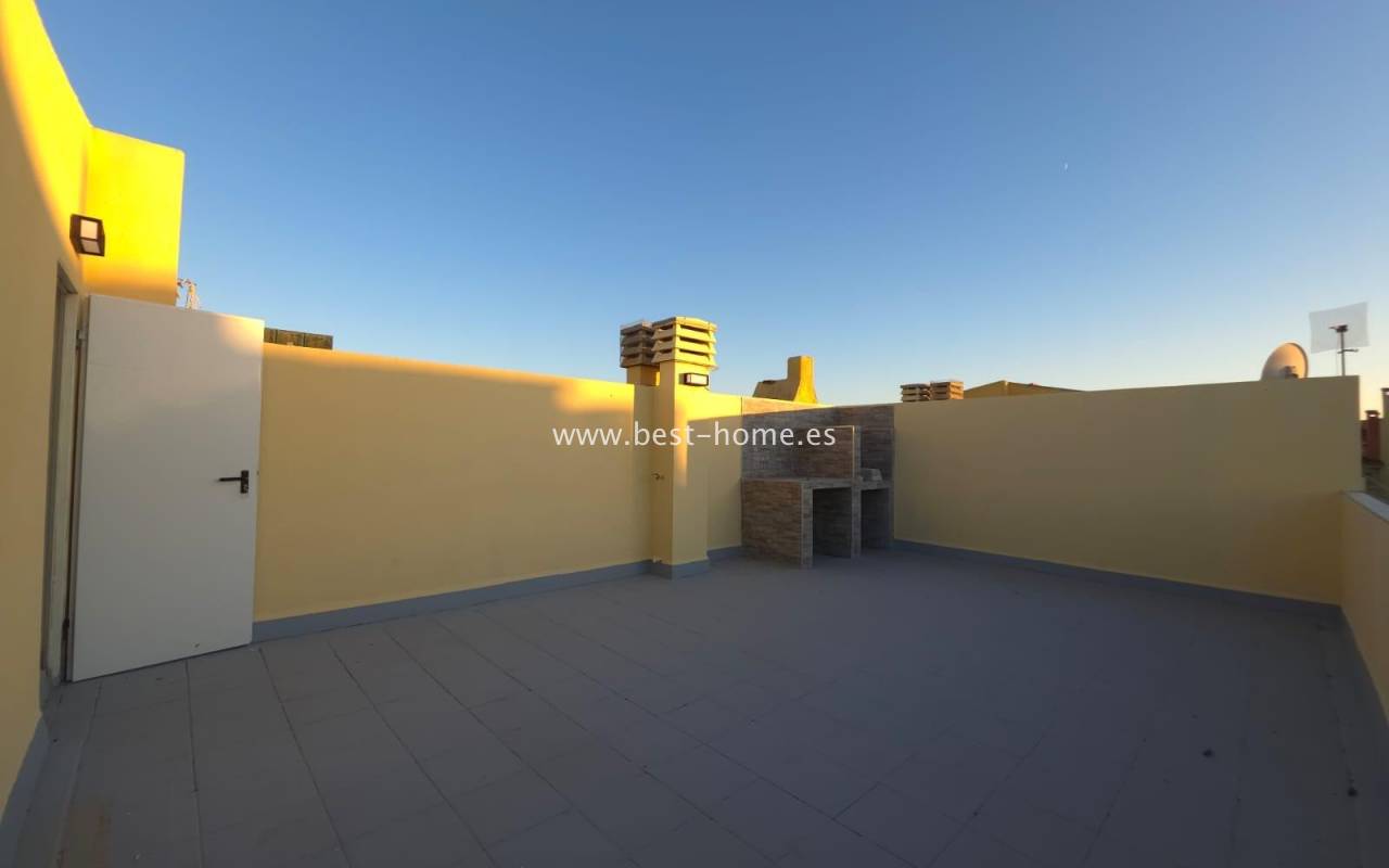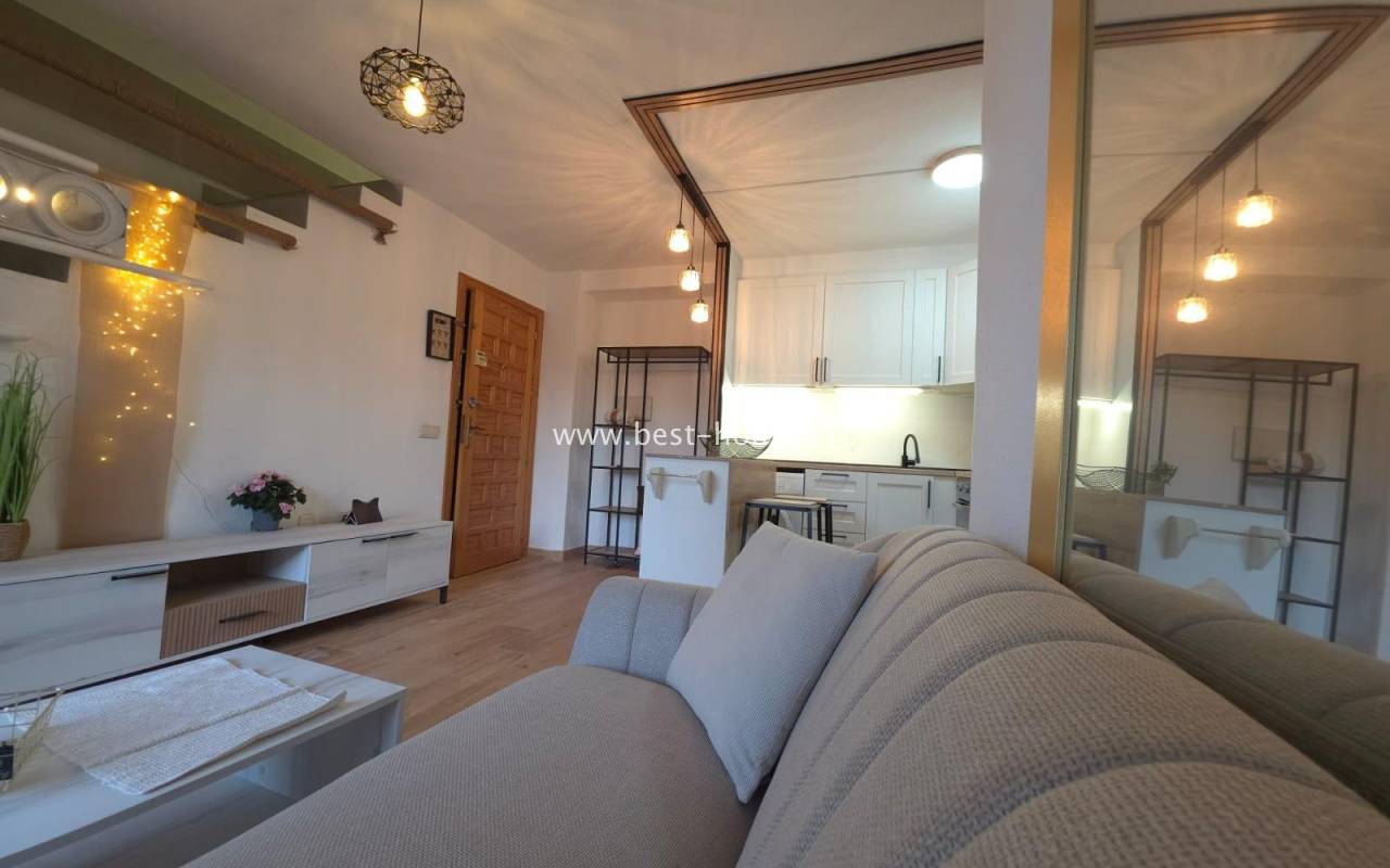A penthouse that delights with its combination of comfort, modern style, and Mediterranean atmosphere. Located close to the sea in the quiet La Veleta district of Torrevieja, the greatest asset of this unique property is the spectacular 48 m² solarium terrace – with an elegant barbecue, the perfect spot for morning coffees, afternoon relaxation, or evening gatherings with loved ones. It's your private oasis under the Spanish sun. The penthouse features a living room with an open-plan kitchen equipped with appliances, two double bedrooms, a bathroom, and a terrace/solarium upstairs. The apartment is furnished and equipped with air conditioning. Just a minute's walk from the charming Cala Ferry beach, it's the perfect place for both permanent residence and holiday rentals.
