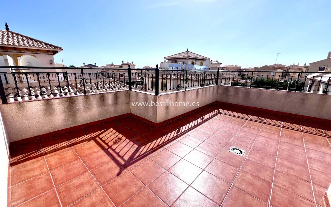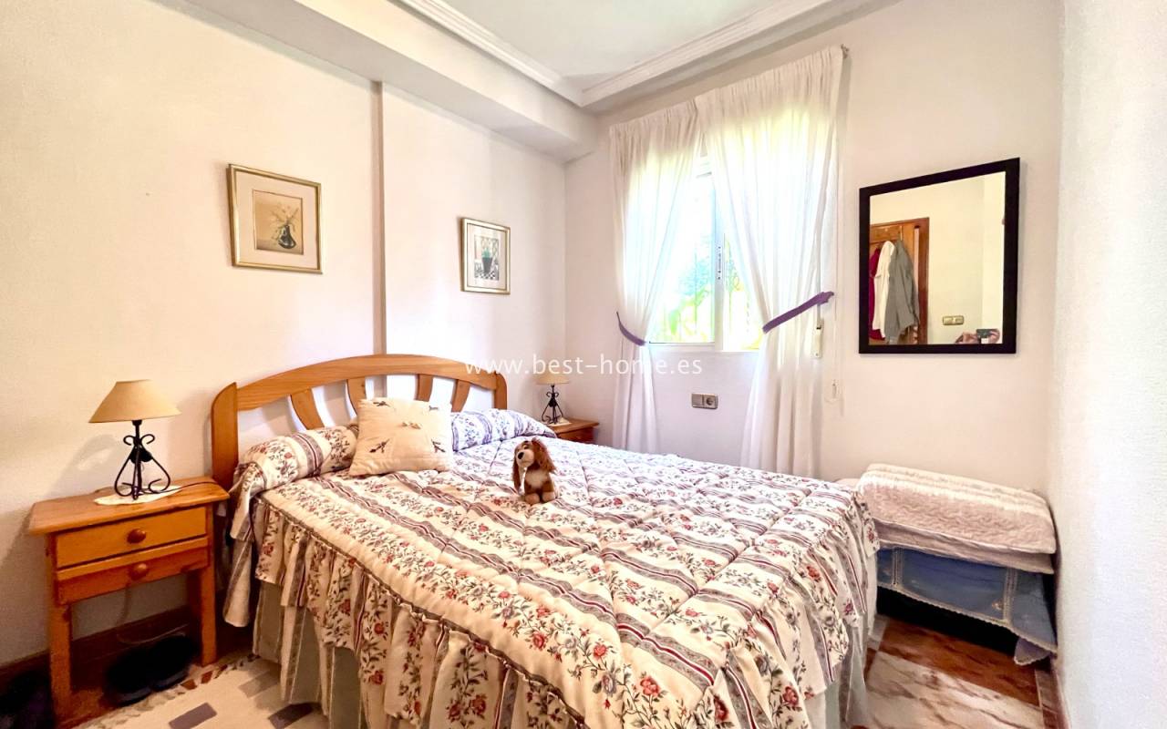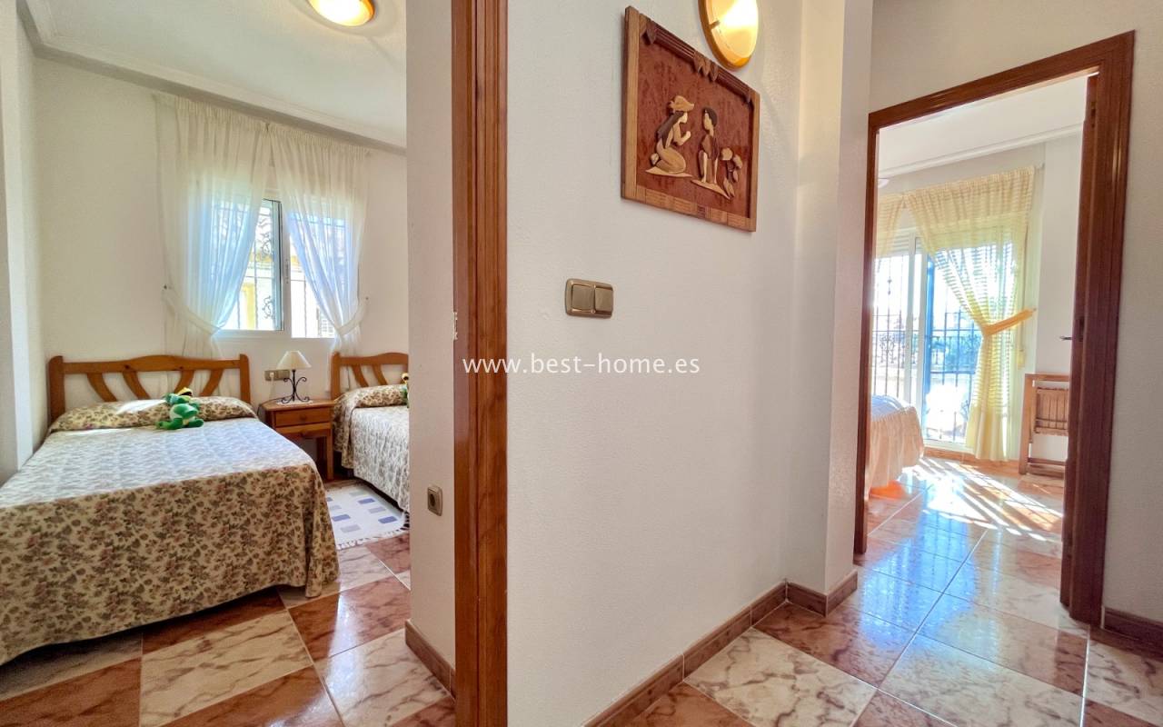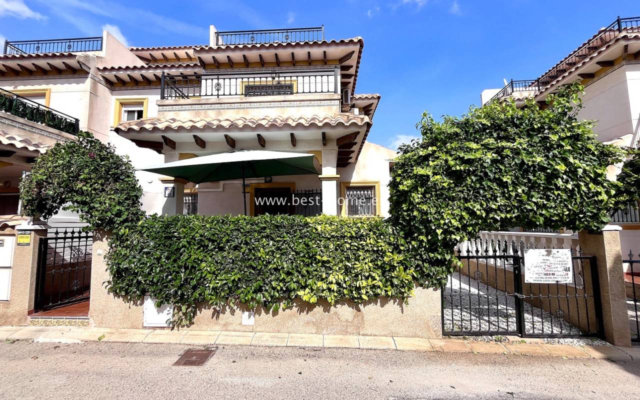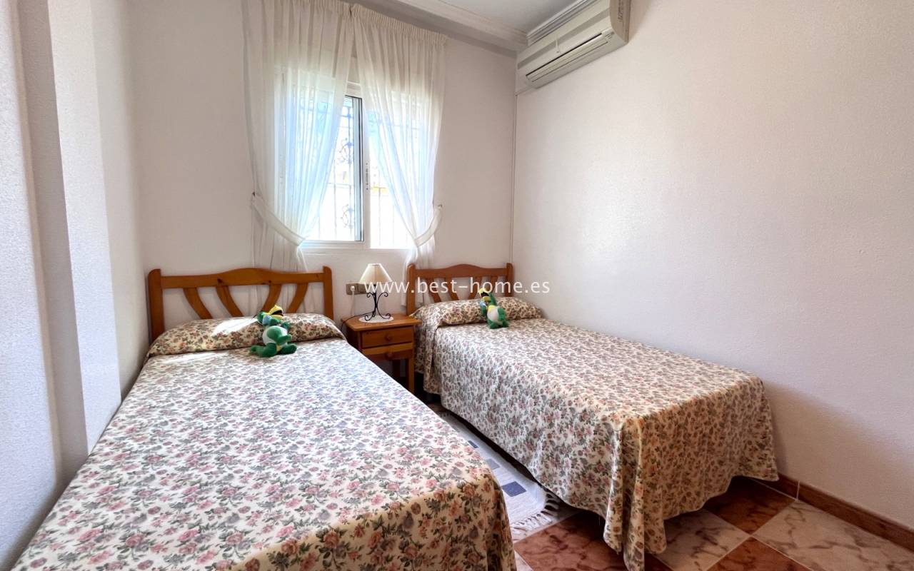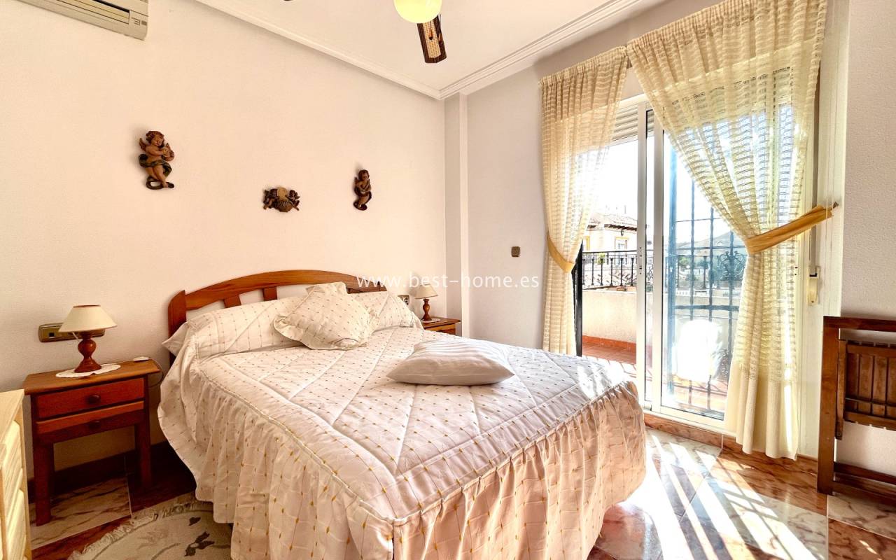 This house is conveniently located in the La Zenia district. It comprises three bedrooms, two bathrooms, a furnished kitchen, and a living/dining room. There is a covered terrace and a corner garden with a parking space in front of the house. The beach is 1.2 km away. The price includes furniture and appliances.