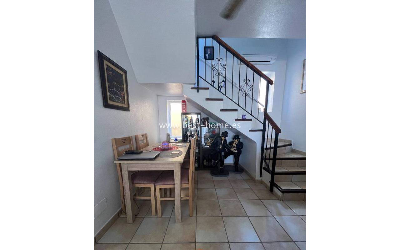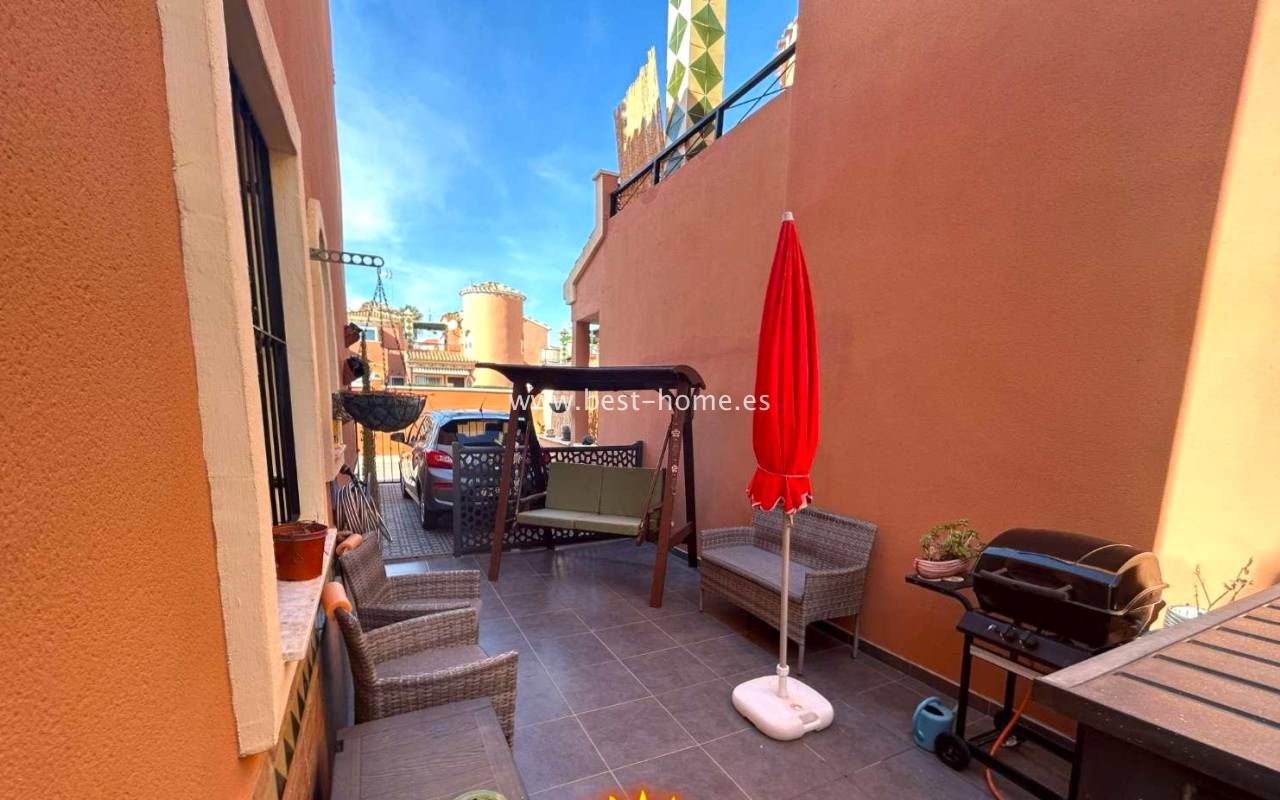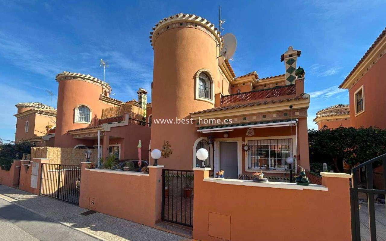 This villa is located in a quiet area of Playa Flamenca. The property features three bedrooms, two bathrooms, a furnished kitchen, and a living room with a fireplace. There is a terrace and a parking space in front of the house. The price includes furniture, appliances, and air conditioning.
