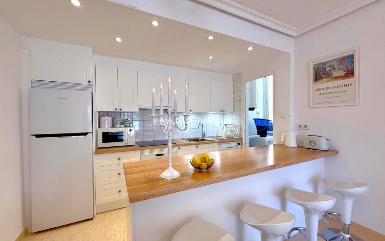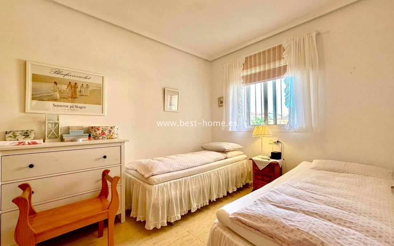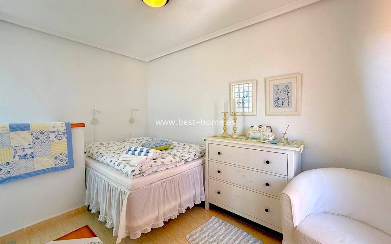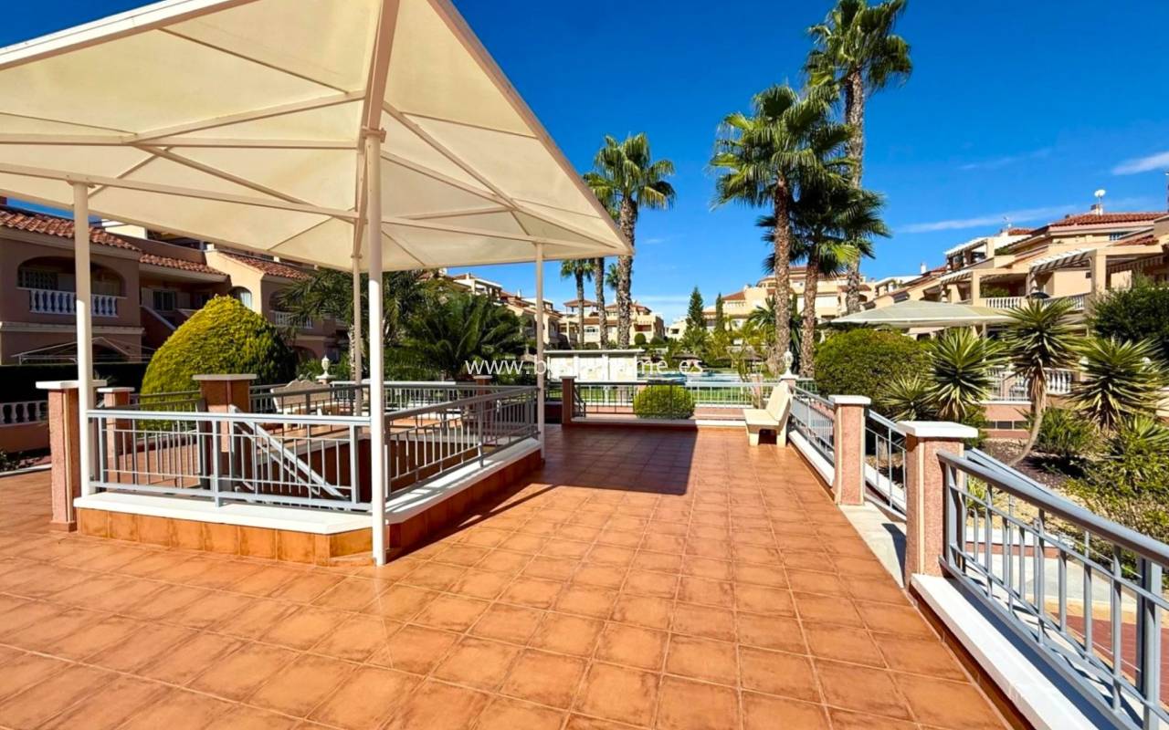 This penthouse is situated in a prime location in Playa Flamenca. The property is located on the first floor, with two bedrooms, a bathroom, a kitchen with a utility room, and a living room with a dining area. The living room opens onto a terrace with beautiful views of the communal areas and the pool. The first floor houses the third bedroom, a bathroom, and a large terrace. Furnishings, appliances, and air conditioning are included in the price. The charming development boasts a beautiful swimming pool surrounded by greenery and a gym.