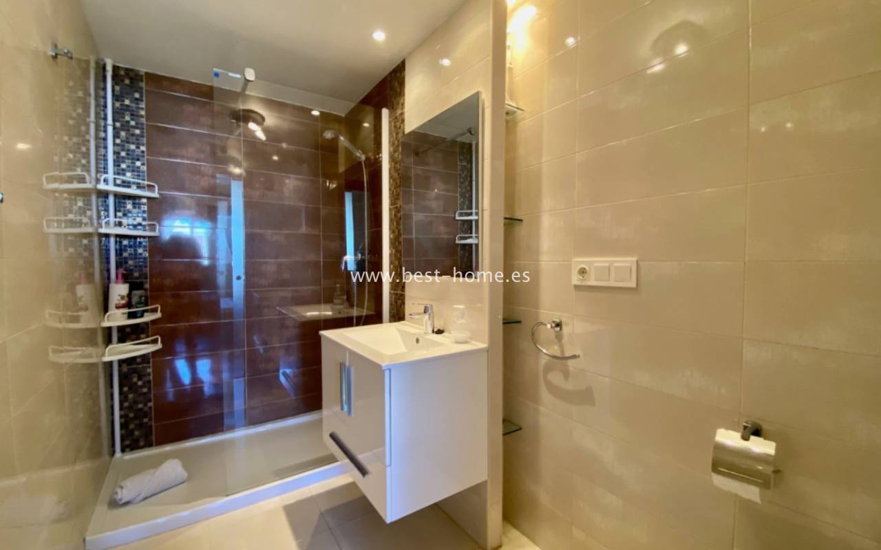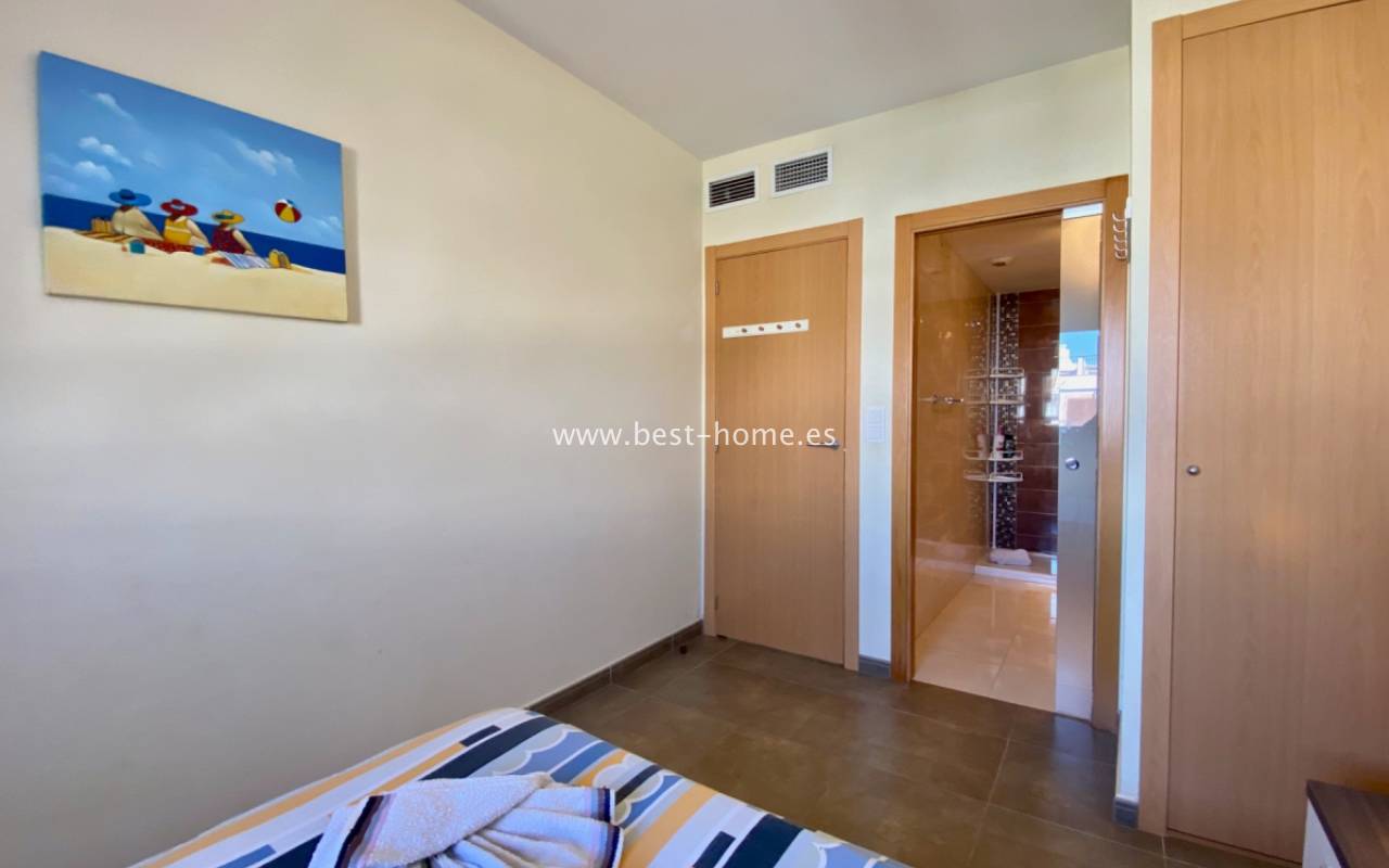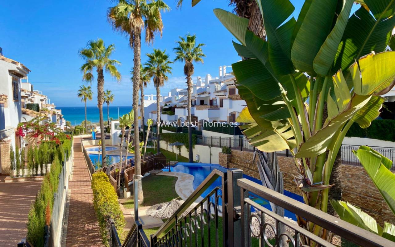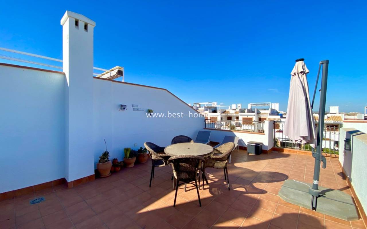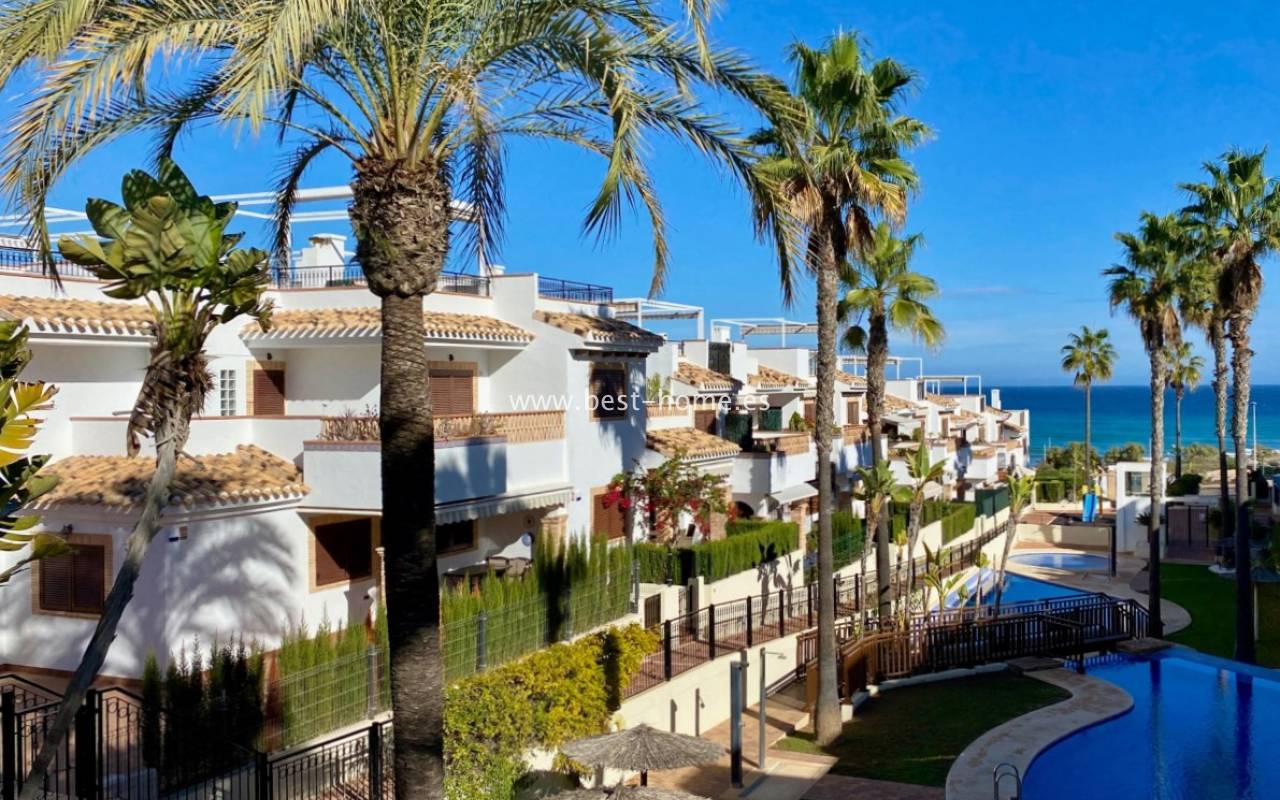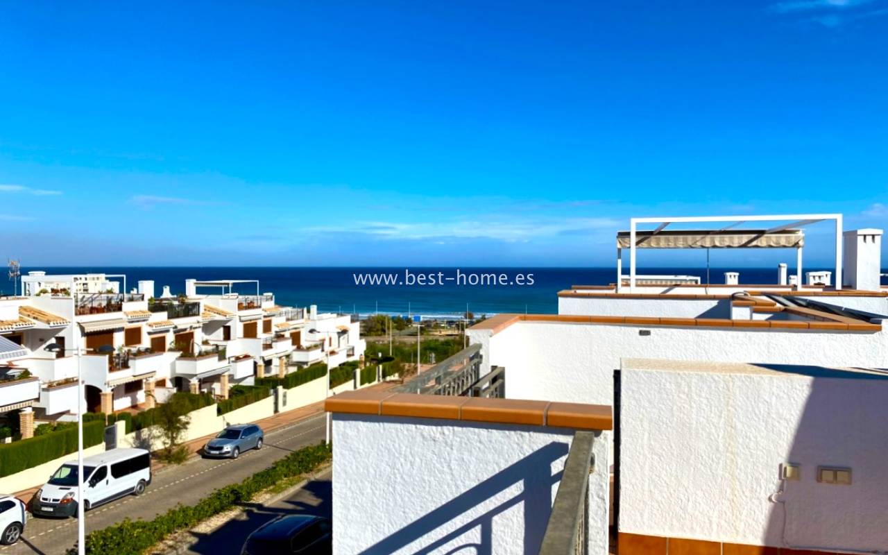 This penthouse is situated in a prime location on the sandy beach of La Mata. The property is on the first floor and comprises two bedrooms with fitted wardrobes, two bathrooms, a fitted kitchen with a utility room, a dining room with a living room, and access to a terrace with sea views. Internal stairs lead to the solarium/roof terrace, which features a summer kitchen and barbecue area. The solarium offers stunning views of the sea and surrounding area. The price includes partial furniture, appliances, central air conditioning, a parking space, and a storage unit. The beach is just 260 m² away.
