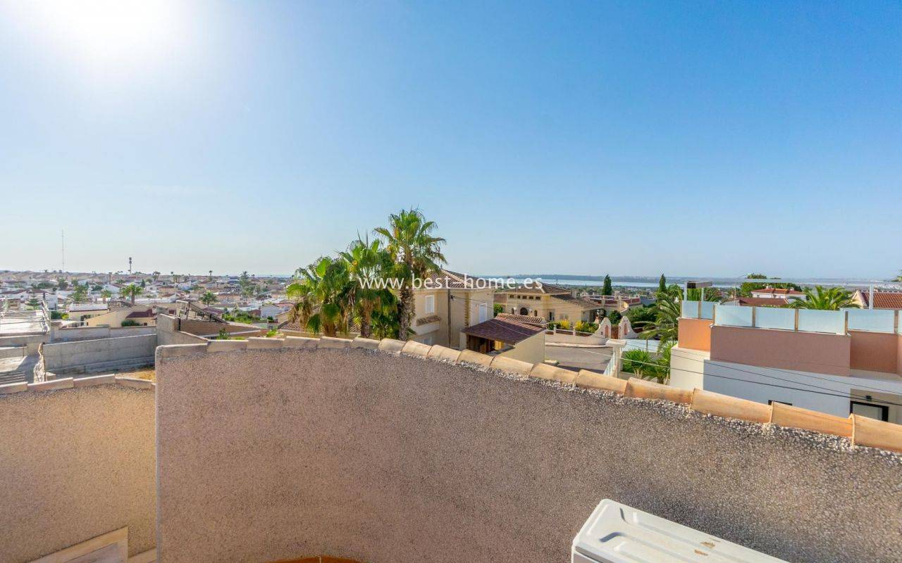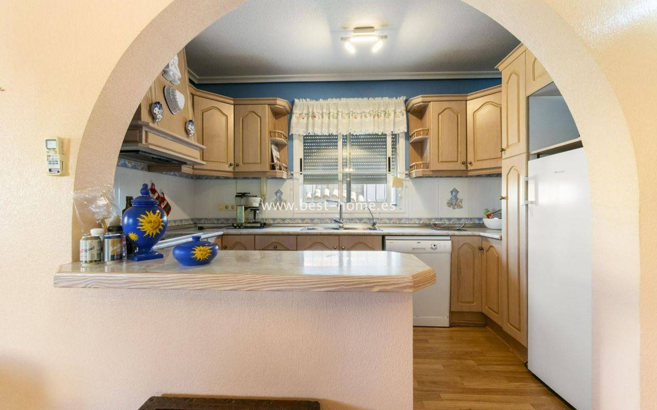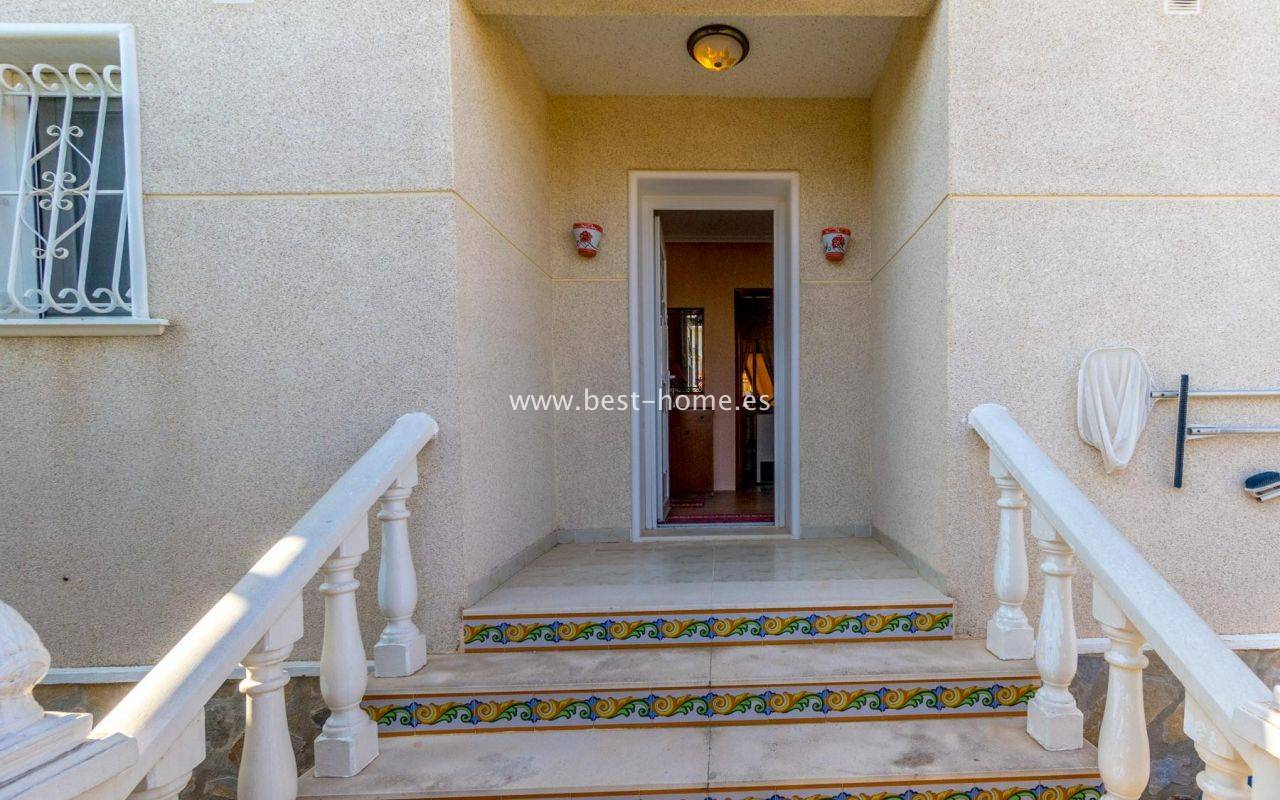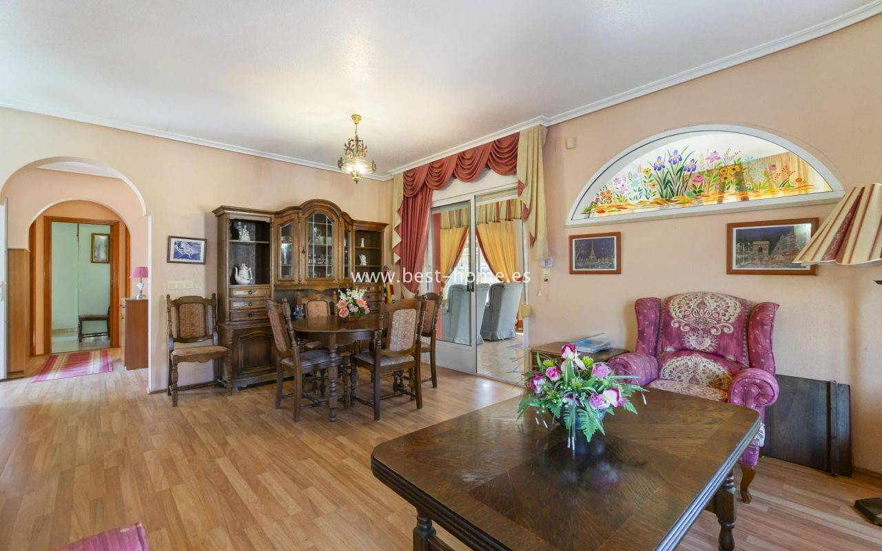 This charming detached house in central Ciudad Quesada offers bright, comfortable living throughout the year. Set on a generous 525 m² plot, it features a heated private pool, a well-kept garden with fruit trees and a cozy barbecue area. The home includes a spacious living room, a fully equipped kitchen, two bathrooms and three bedrooms, one of which is located next to the solarium with beautiful lagoon views – perfect for guests. The glazed terrace and enclosed porch provide additional year-round spaces for relaxation and social gatherings. Situated in a quiet and established neighborhood, the property is close to shops, restaurants, medical services and golf courses, and just a short drive from the stunning beaches of Guardamar del Segura.
