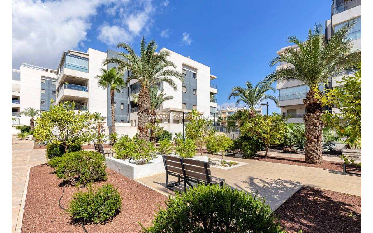 This modern first-floor apartment offers a high level of comfort and access to excellent communal facilities. It features two cozy bedrooms and two bathrooms, with large windows that fill the interior with natural light. The property is situated within an upscale, gated residential complex that provides beautiful swimming pools, a gym, children’s playgrounds and ping-pong tables, making it an ideal choice for families and those seeking an active lifestyle. Its great location close to shops, restaurants and local amenities adds to its everyday convenience.