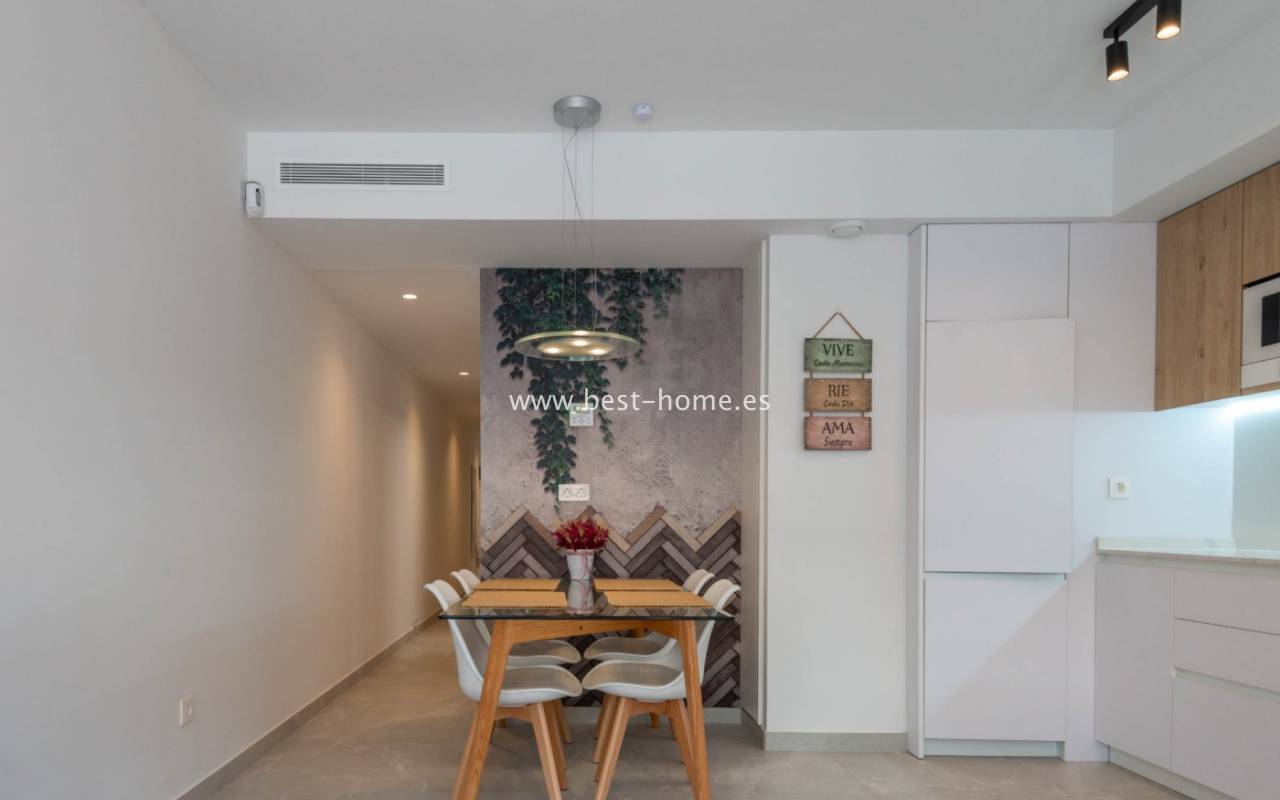 This apartment with side sea views is located in a modern building with a rooftop pool, very close to Los Locos beach in Torrevieja. It features a living room with access to a sunny, southwest-facing terrace, an open-plan kitchen with modern appliances, two bedrooms, including the master bedroom with a built-in wardrobe, and a bathroom with a shower. This property is ideal for holiday rentals or long-term rentals. The apartment is furnished and equipped with central air conditioning. Built in 2021, the building boasts a rooftop swimming pool and a relaxation area. A parking space in the underground garage is included in the price. Nearby, there are numerous bars, cafes, restaurants, and a promenade along the seafront.