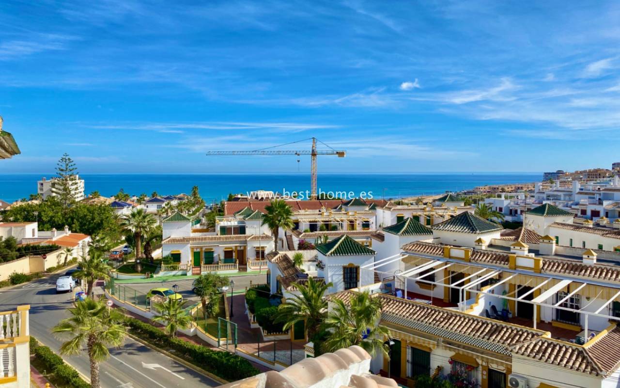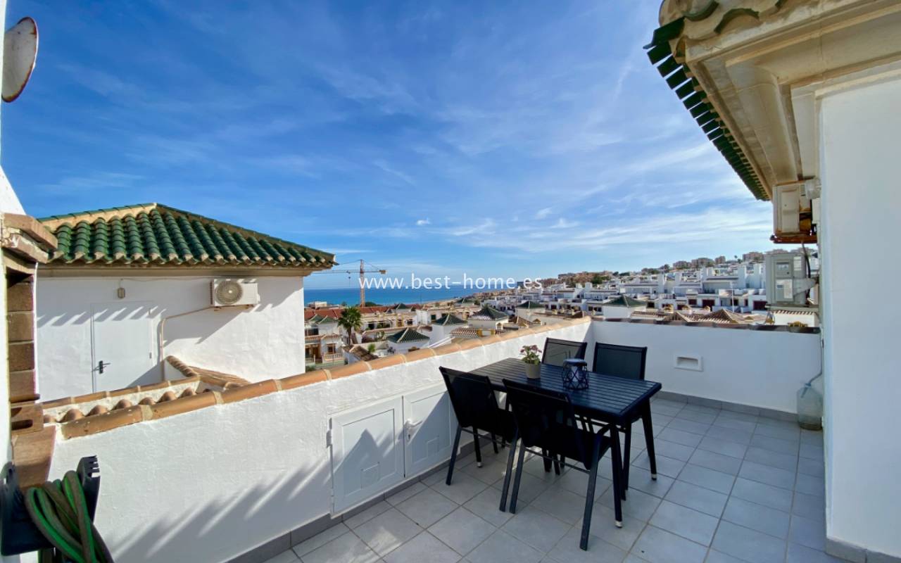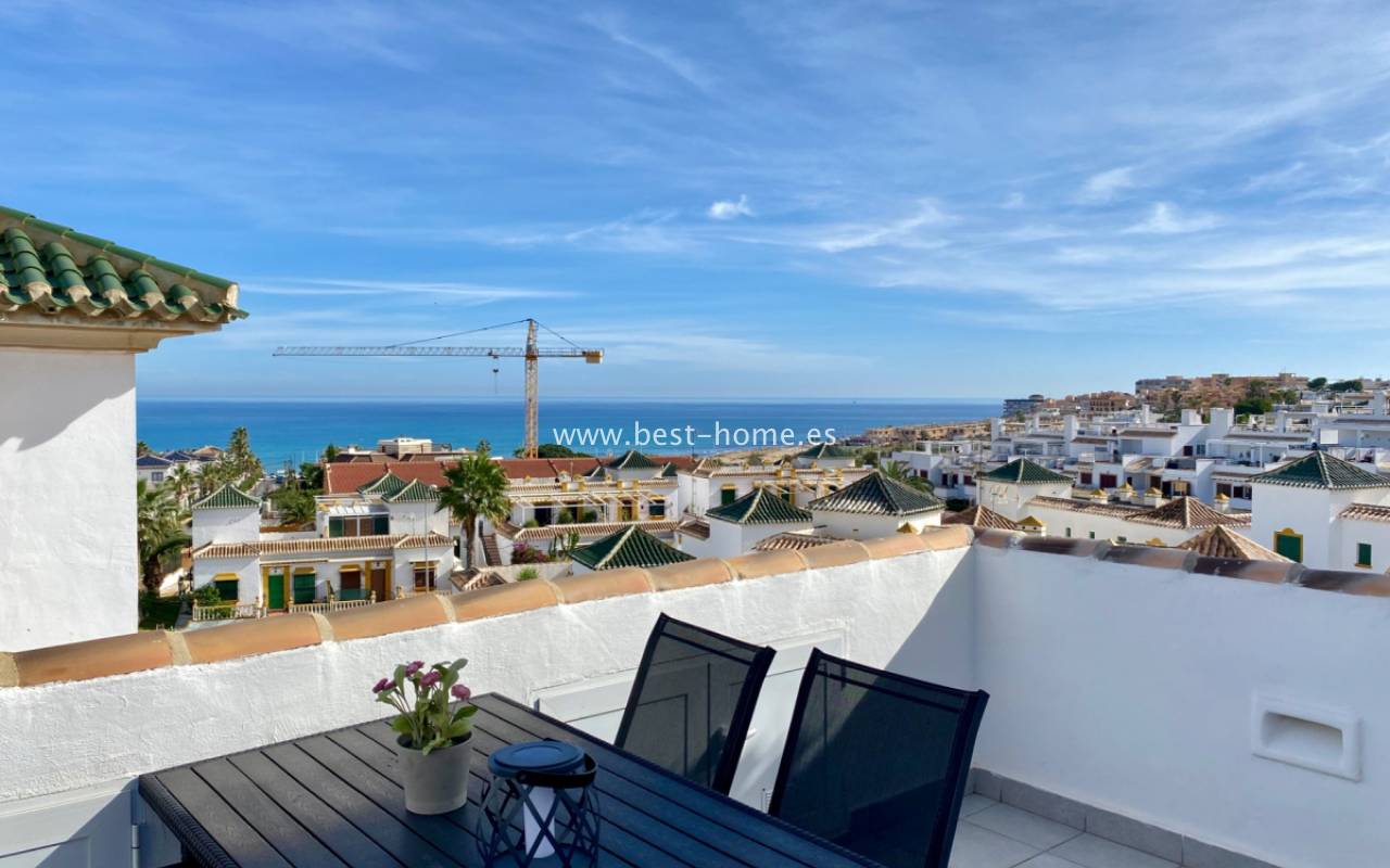 This sunny duplex penthouse offers fantastic sea views, close to the beautiful sandy beach in La Mata. The apartment offers three bedrooms (two of which are located on the lower level), one bathroom, a modern open-plan kitchen, and a spacious south-facing balcony with stunning views of the Mediterranean Sea. An additional advantage is the private solarium of approximately 24 m², which boasts impressive views and provides sun for most of the day. The penthouse is furnished and equipped with air conditioning. The development boasts a swimming pool and well-maintained green areas. The wide, sandy beach of La Mata is approximately 400 meters away. All amenities are available in the immediate vicinity, including shops, supermarkets, bars, and restaurants, as well as bus stops for convenient public and intercity transport.