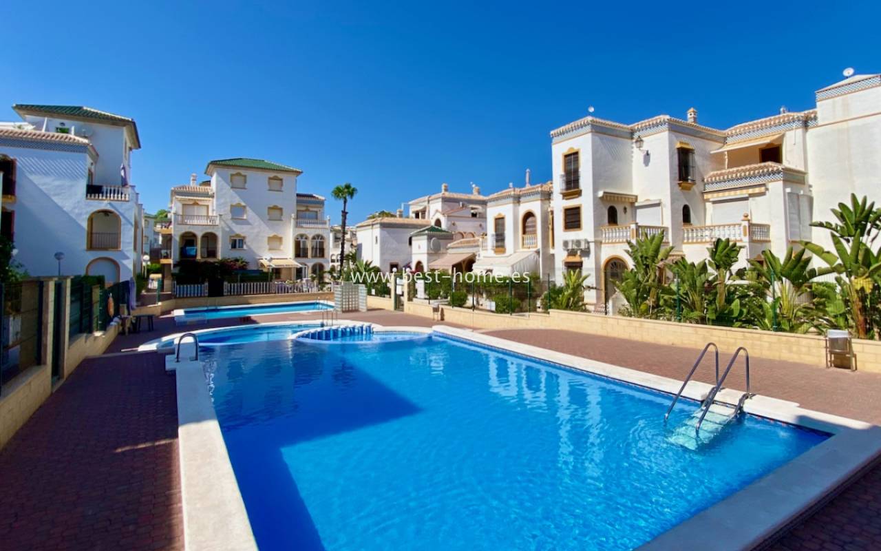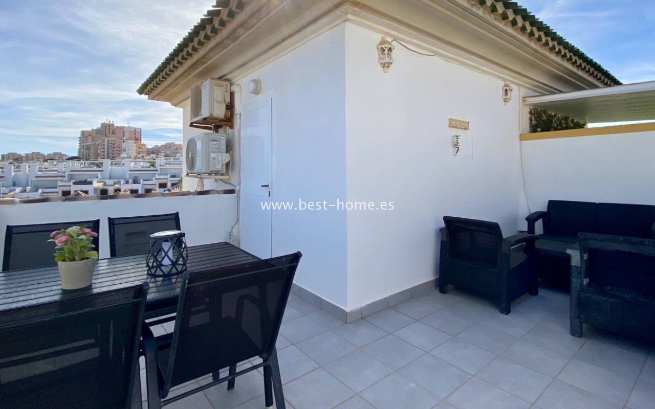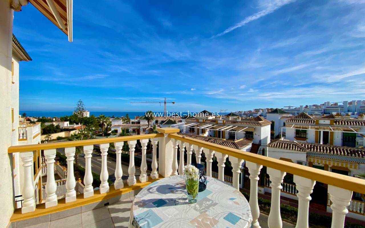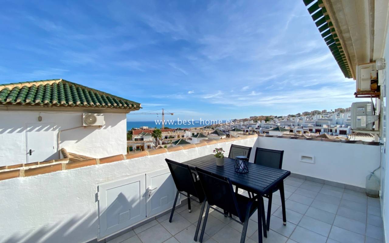 This sunny duplex penthouse offers fantastic sea views, close to the beautiful sandy beach in La Mata. The apartment offers three bedrooms (two of which are located on the lower level), one bathroom, a modern open-plan kitchen, and a spacious south-facing balcony with stunning views of the Mediterranean Sea. An additional advantage is the private solarium of approximately 24 m², which boasts impressive views and provides sun for most of the day. The penthouse is furnished and equipped with air conditioning. The development boasts a swimming pool and well-maintained green areas. The wide, sandy beach of La Mata is approximately 400 meters away. All amenities are available in the immediate vicinity, including shops, supermarkets, bars, and restaurants, as well as bus stops for convenient public and intercity transport.