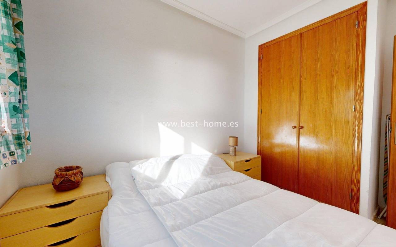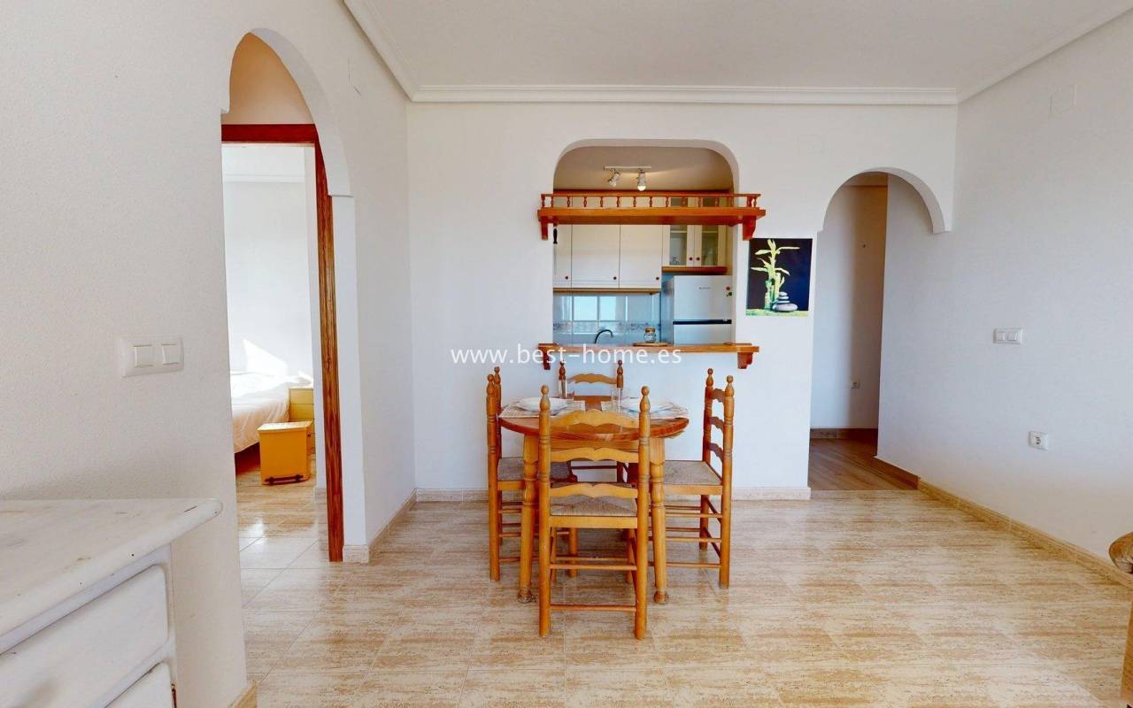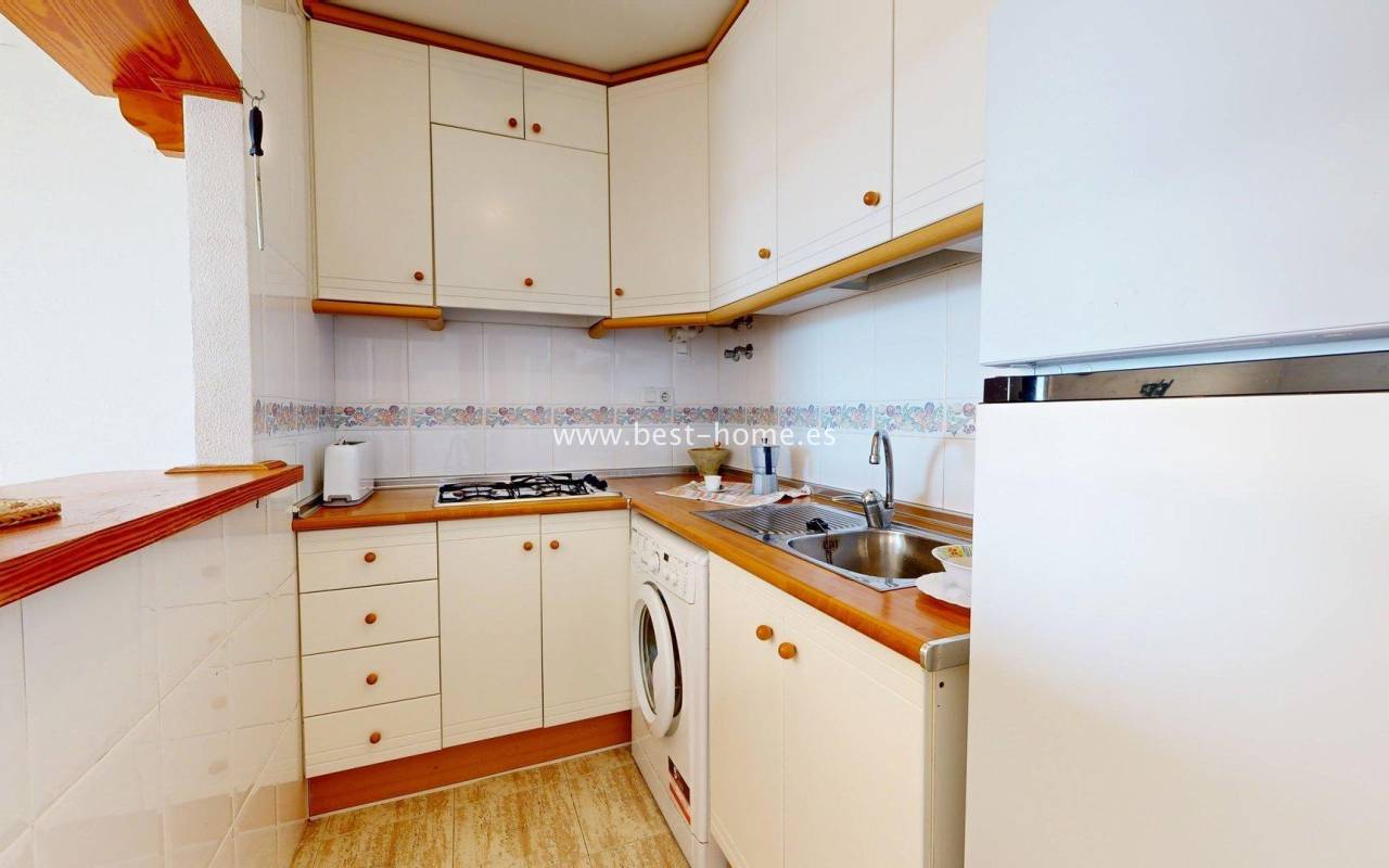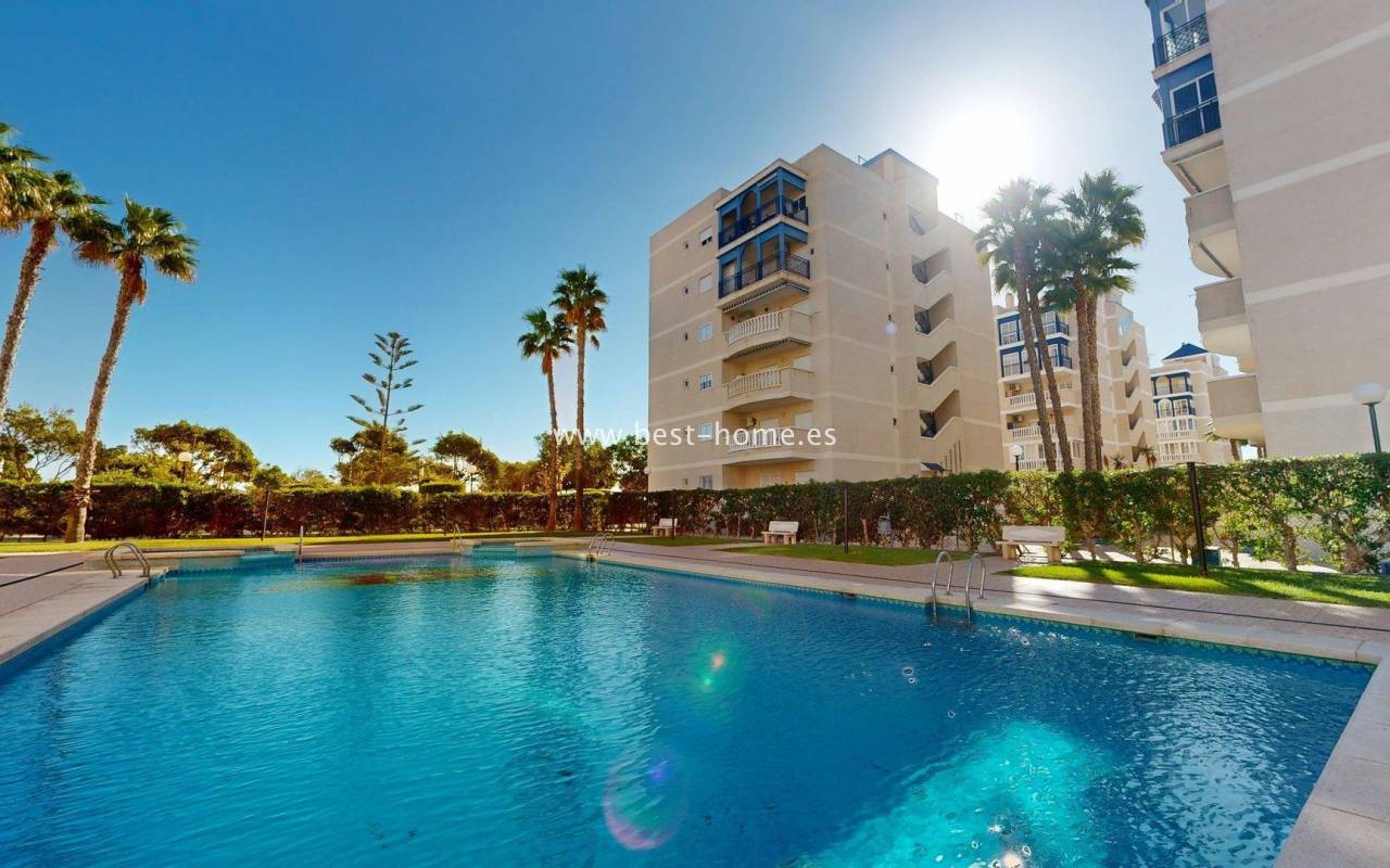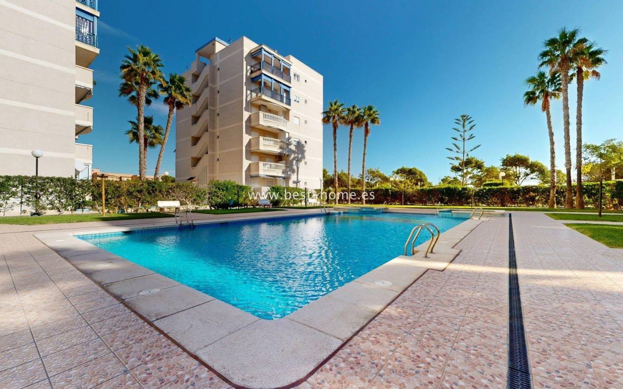 This fantastic apartment with sea views, parking, and a community pool is located in the picturesque town of Gran Alacant, close to Alicante Airport. It features a living room with access to a terrace with beautiful sea views, two double bedrooms with fitted wardrobes, a kitchen equipped with appliances, and a bathroom. The price includes a parking space in the underground garage. The gated community also includes a swimming pool for residents. This property is ideal for investors looking to rent out a holiday home, as it is located close to a beautiful, picturesque beach. Nearby, you'll find numerous amenities, including bars, cafes, and restaurants.