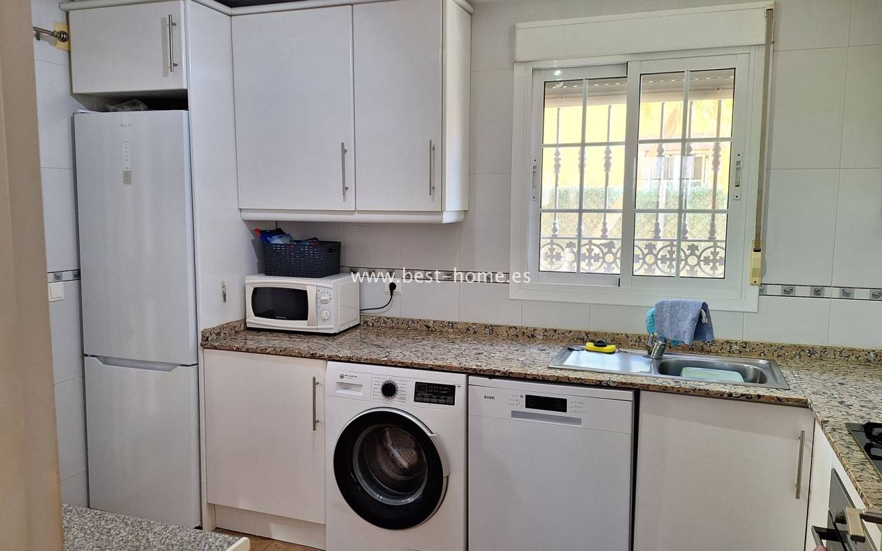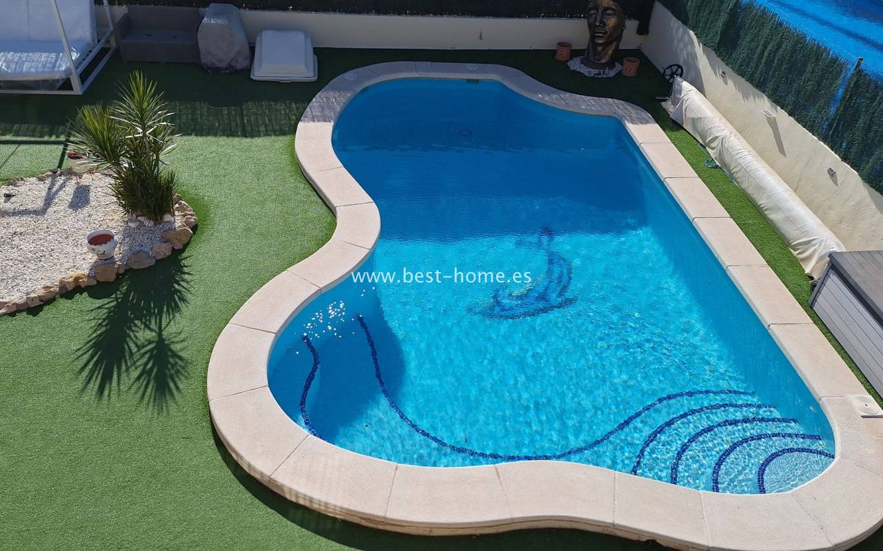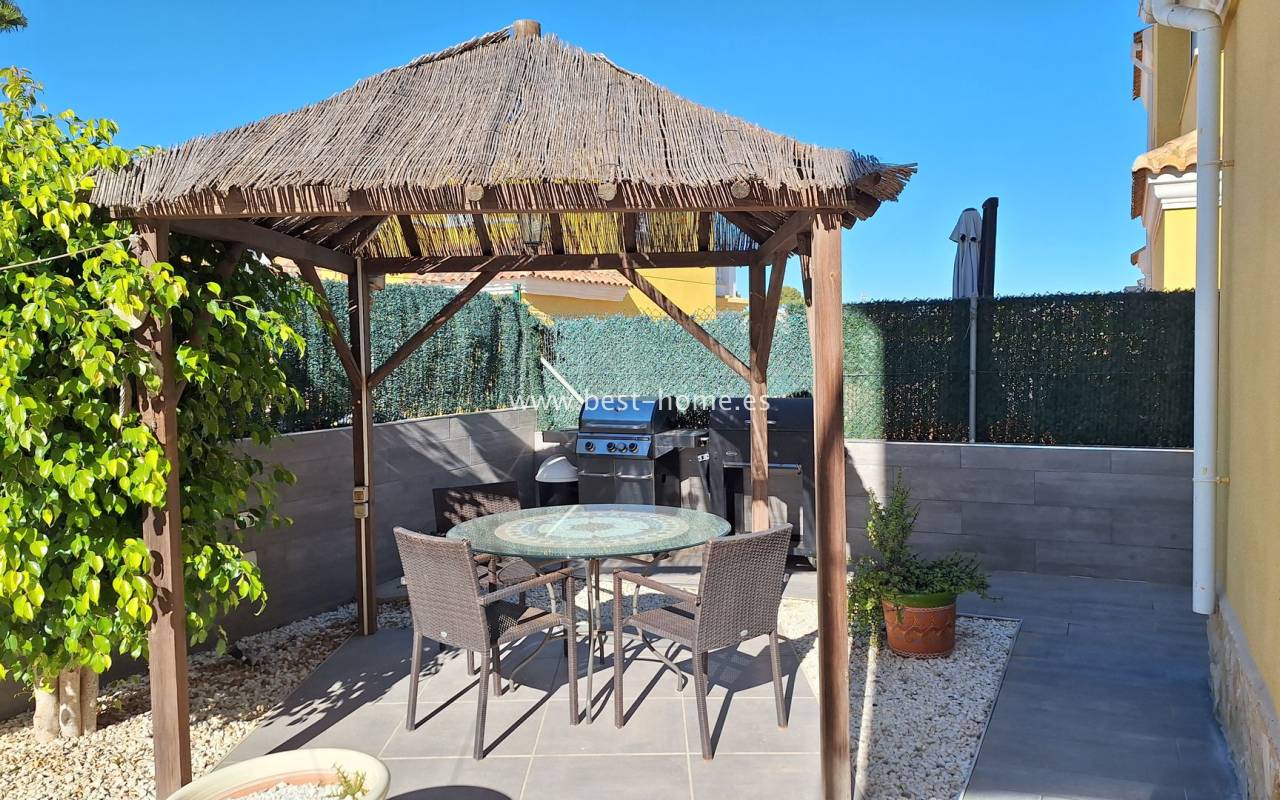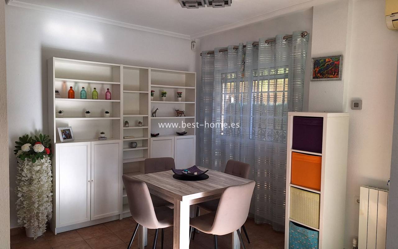 This well-maintained villa is located in the peaceful and quiet village of El Raso. The approximately 90 m² villa comprises 3 bedrooms, 2 bathrooms, a furnished kitchen, dining room, living room, and terrace. There is a parking space in front of the house and a private swimming pool. The price includes furniture, appliances, central heating, and air conditioning. The house is very sunny and south-facing.