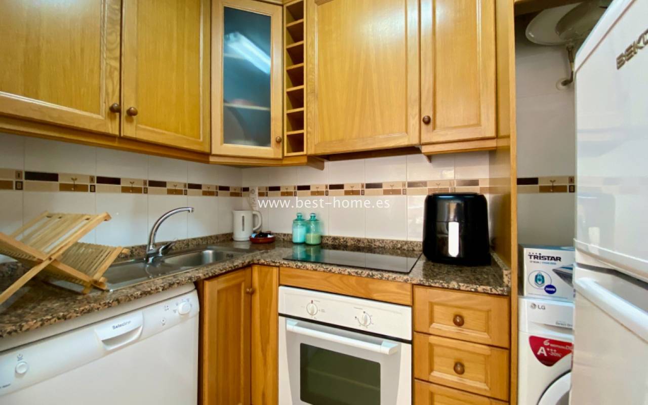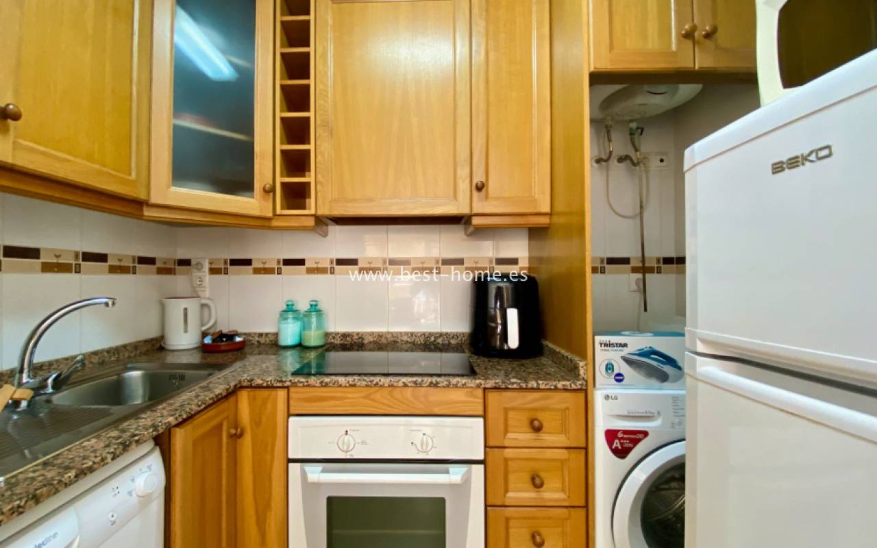 A fantastic, affordable apartment with sea views, a large terrace, and a garage space. It features a living room with access to a south-facing terrace with sea views, a double bedroom with a built-in wardrobe, an American-style kitchen equipped with appliances, and a bathroom. An additional advantage of this property is a parking space in the underground garage included in the price. The apartment is furnished and equipped with air conditioning. The complex boasts a swimming pool for residents. Nearby you'll find a pharmacy, a Mercadona grocery store, and numerous bars and cafes.