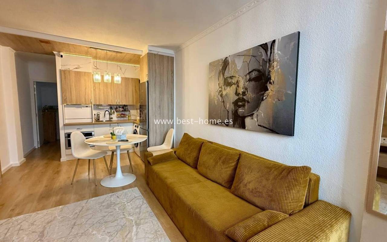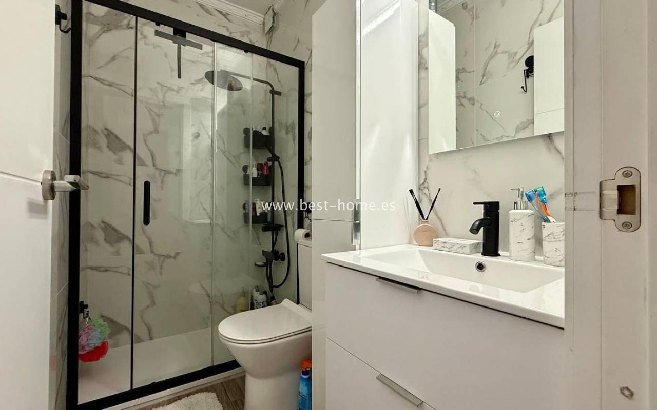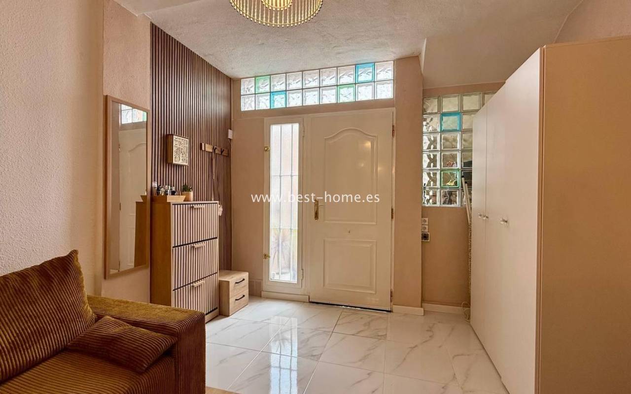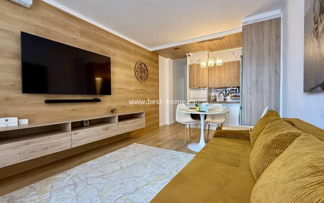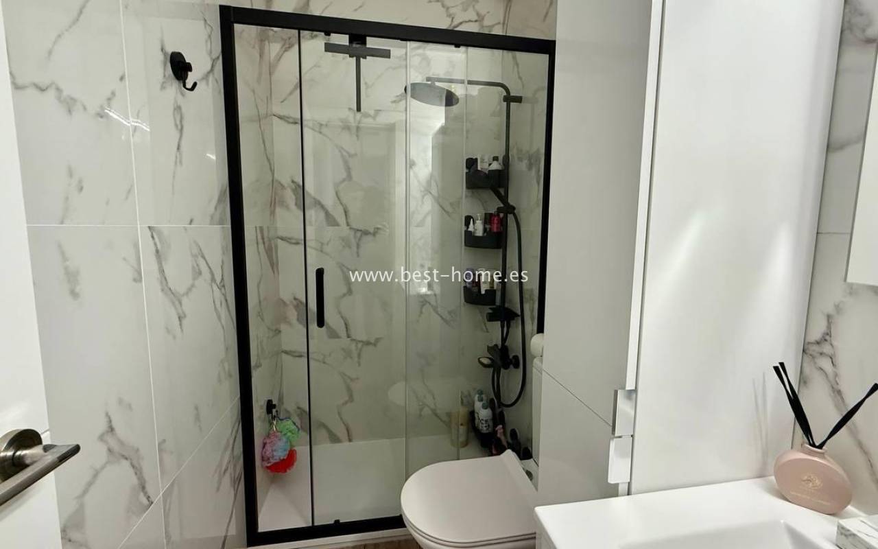 This beautifully designed apartment in the Los Frutales urbanization boasts two terraces, a barbecue, and a lounge area. The living room is accessed through a garden corridor with a lounge area, followed by a living room, an open-plan kitchen equipped with appliances, two bedrooms, the master bedroom opening onto an additional terrace with a barbecue, and a bathroom. This property is ideal for holiday rentals or permanent residence. The apartment is furnished and equipped with air conditioning. Additionally, the garden corridor offers storage space.