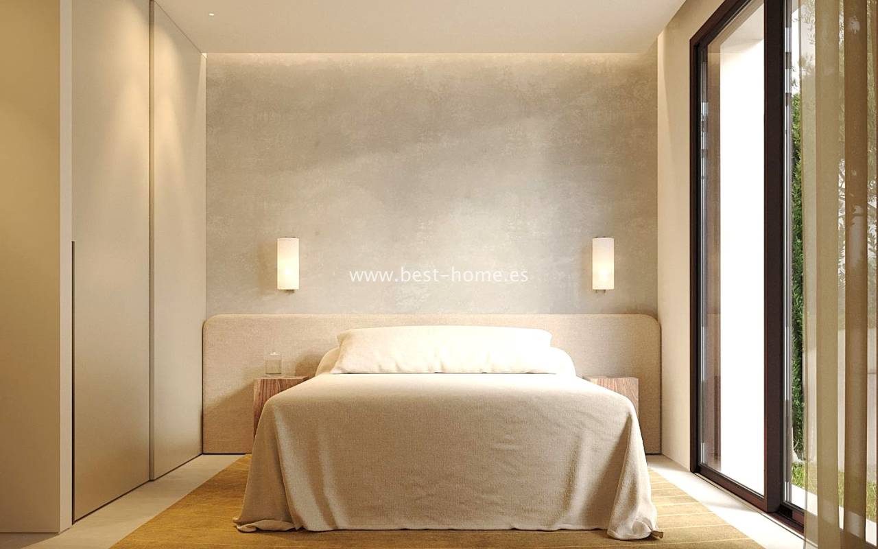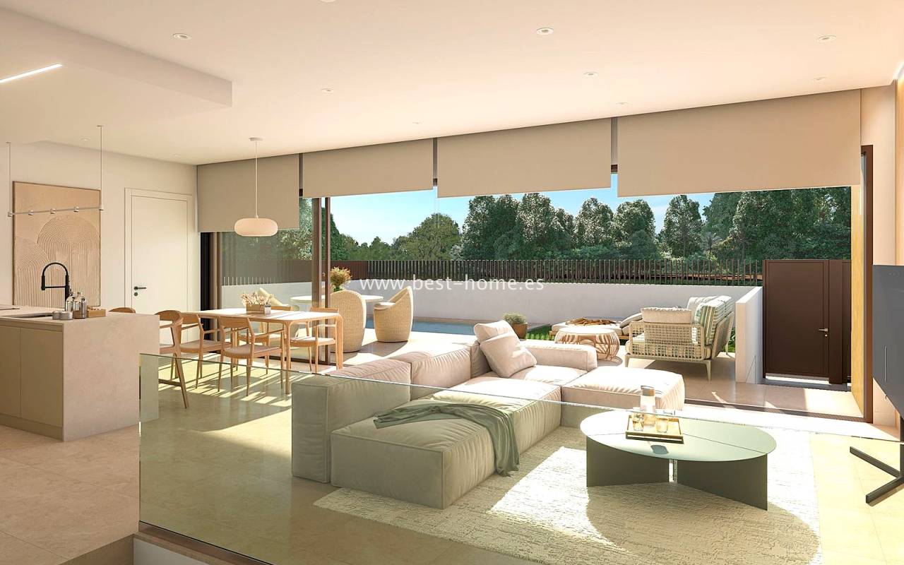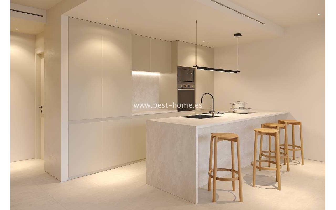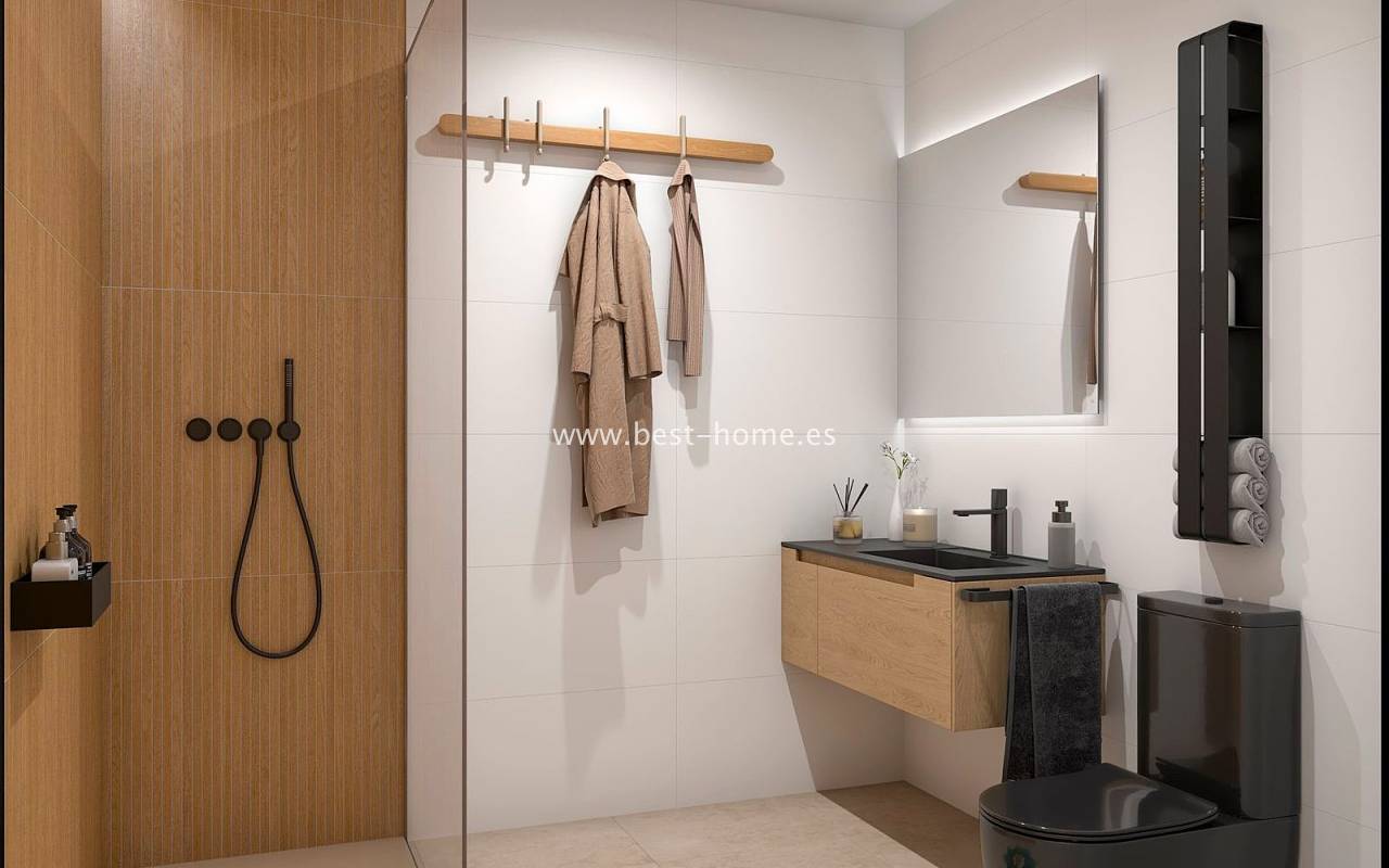 New houses (quarters) are being built in the quiet Spanish town of Dolores. The property will consist of a spacious living room with a dining area and a fitted kitchen with a bar, a master bedroom with an en-suite bathroom, two further bedrooms, and a second bathroom. The living room features large (8-meter-long) windows that open onto a terrace and private pool. The price includes a fitted kitchen (induction hob), fully equipped bathrooms with underfloor heating, pre-installation of central air conditioning, electric blinds, a private pool, and an electric entrance gate. A solarium (roof terrace) and a basement can be added for an additional fee.