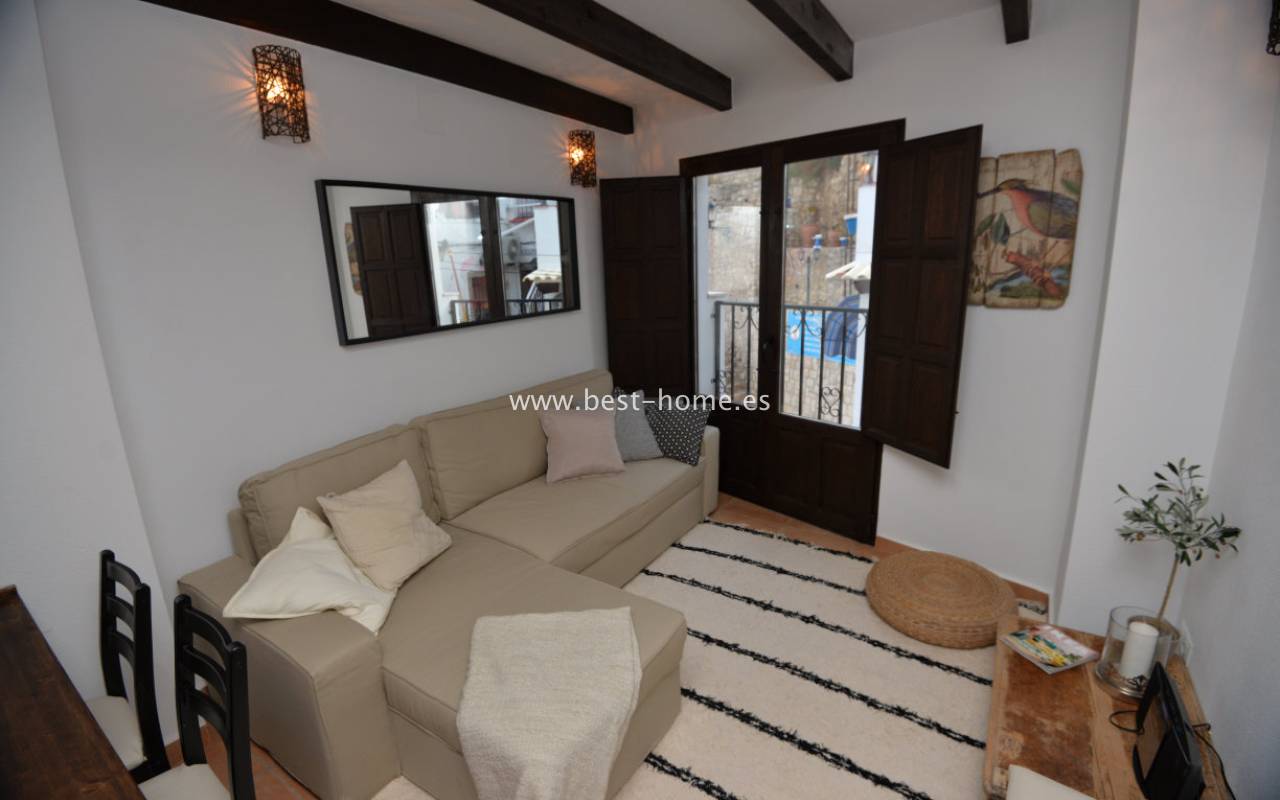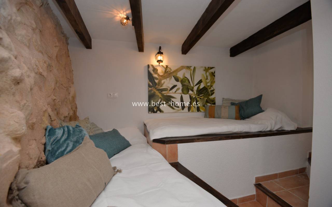 Unique opportunity to acquire a completely refurbished townhouse, with a privileged location in the oldest and most charming cultural quarter of Alicante: Santa Cruz, under the Castle of Santa Barbara. The property has 2 bedrooms and 1 bathroom. It has 70 m² plus terraces. Nice sunny terrace with wonderful views to the cultural quarter, sun all day long and spectacular sunsets. It also has a roof terrace with sea views. The house is completely newly built, completed in December 2016. It is built in a genuine traditional Spanish style, with white plastered walls, exposed ceiling beams, black wrought iron railings, rustic windows and doors, combined with a modern kitchen and bathroom. Everything is new, including electrical installations, plumbing and ventilation. It has Panasonic air conditioning (hot/cold) and underfloor heating in the bathroom. Price: 279.900€.