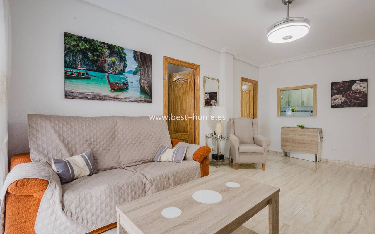 This beautifully designed second-line apartment offers side sea views. It features a living room with access to a sunny 7m² terrace, two double bedrooms, including the master with a built-in wardrobe, an American-style kitchen with appliances, and a bathroom. The apartment is furnished and air-conditioned. Ideal for holiday rentals or permanent residence, the property boasts numerous bars, restaurants, shops, and ice cream parlors nearby.