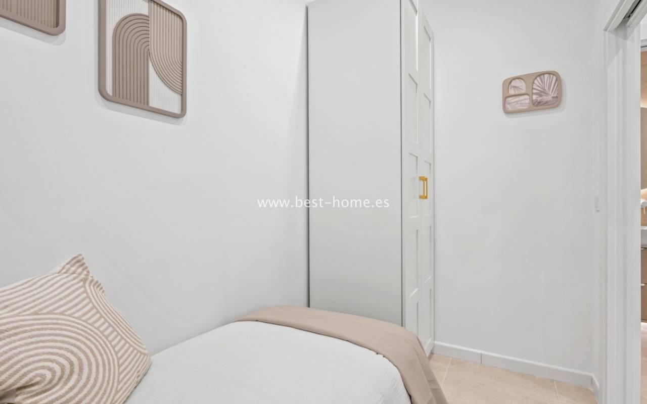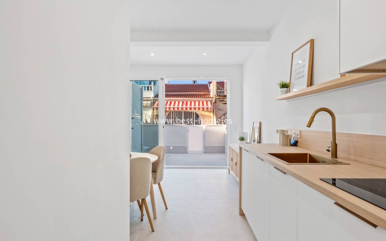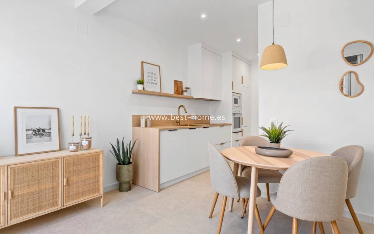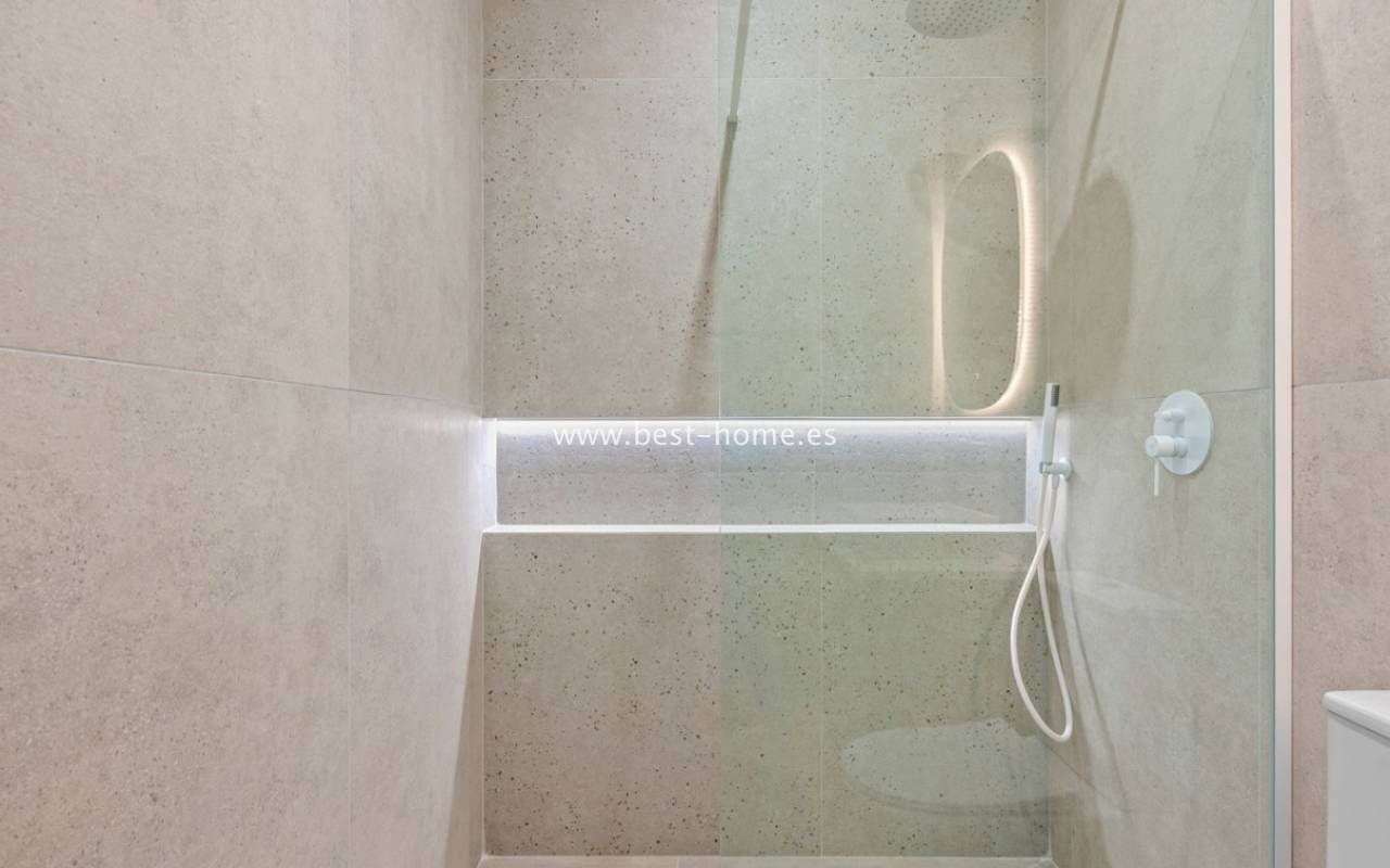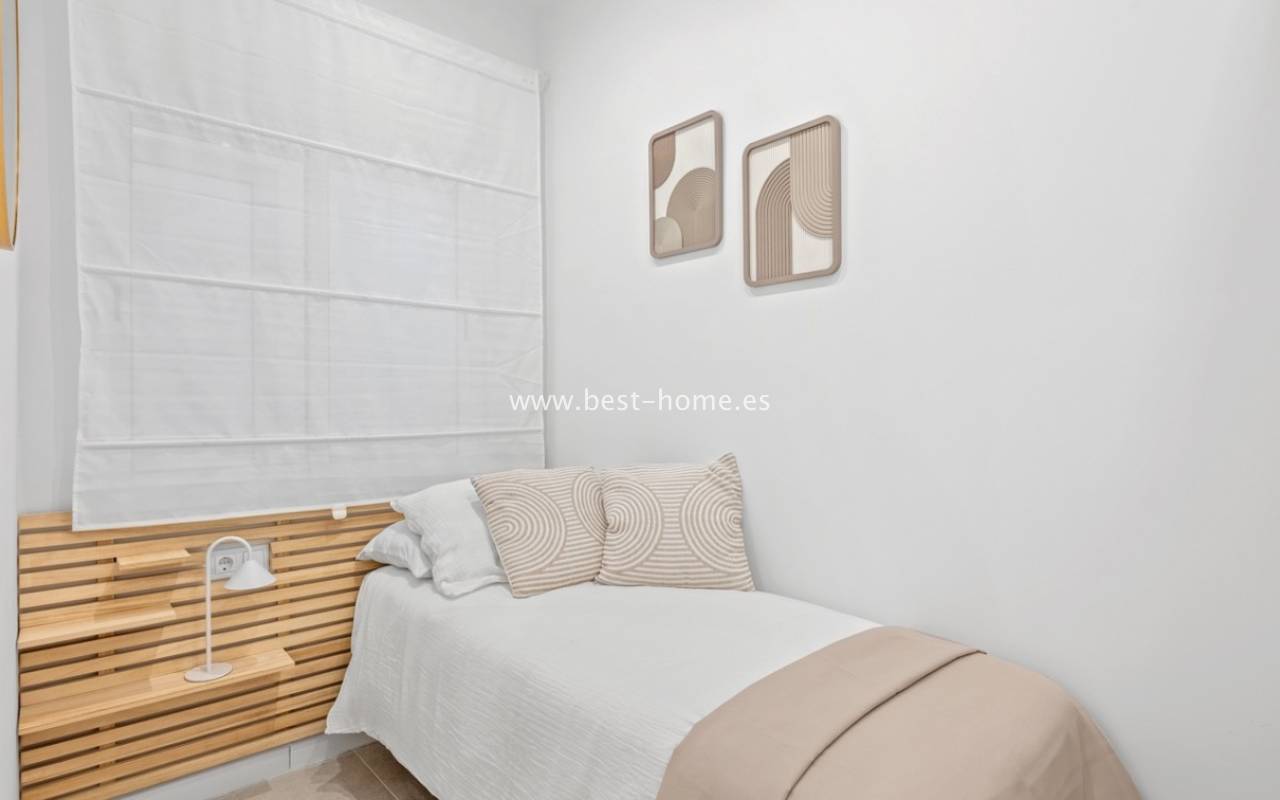 A very modern single-story bungalow with a solarium in the peaceful, quiet El Chaparral development. It features a garden/terrace, leading to a bright, spacious living room decorated in a boho style. Next, you'll find a modern kitchen equipped with high-quality appliances, two bedrooms, including a double master bedroom with built-in wardrobes, and a renovated bathroom with a shower. Upstairs, you'll find a terrace/solarium with a beautiful view of the green park, perfect for relaxing and spending time with family. Nearby, you'll find a park, numerous bars, restaurants, and a charming natural lake, perfect for walks and bike rides.