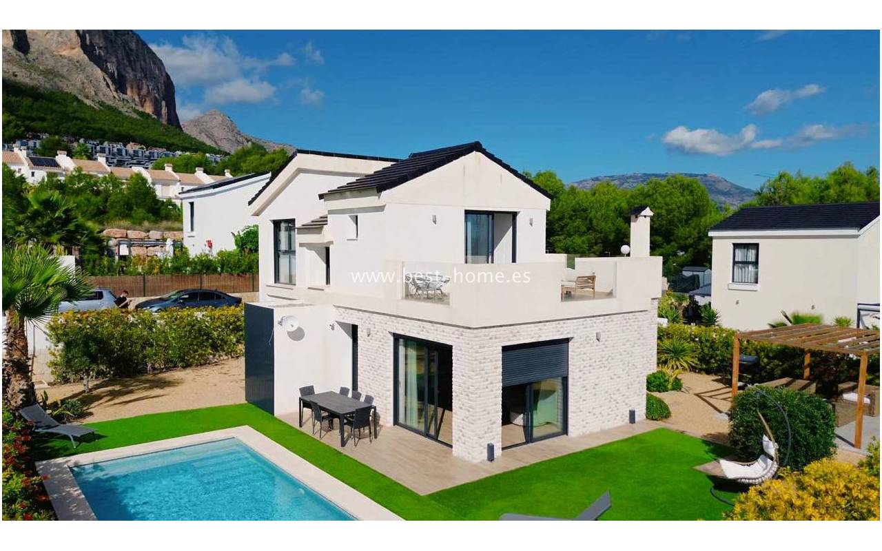 This bright and spacious villa is located in a charming area, just a 15-minute drive from Benidorm and the beaches of the Costa Blanca. The property boasts stunning panoramic views of the Mediterranean Sea and the surrounding mountains, offering a perfect balance of nature, comfort, and modern living.