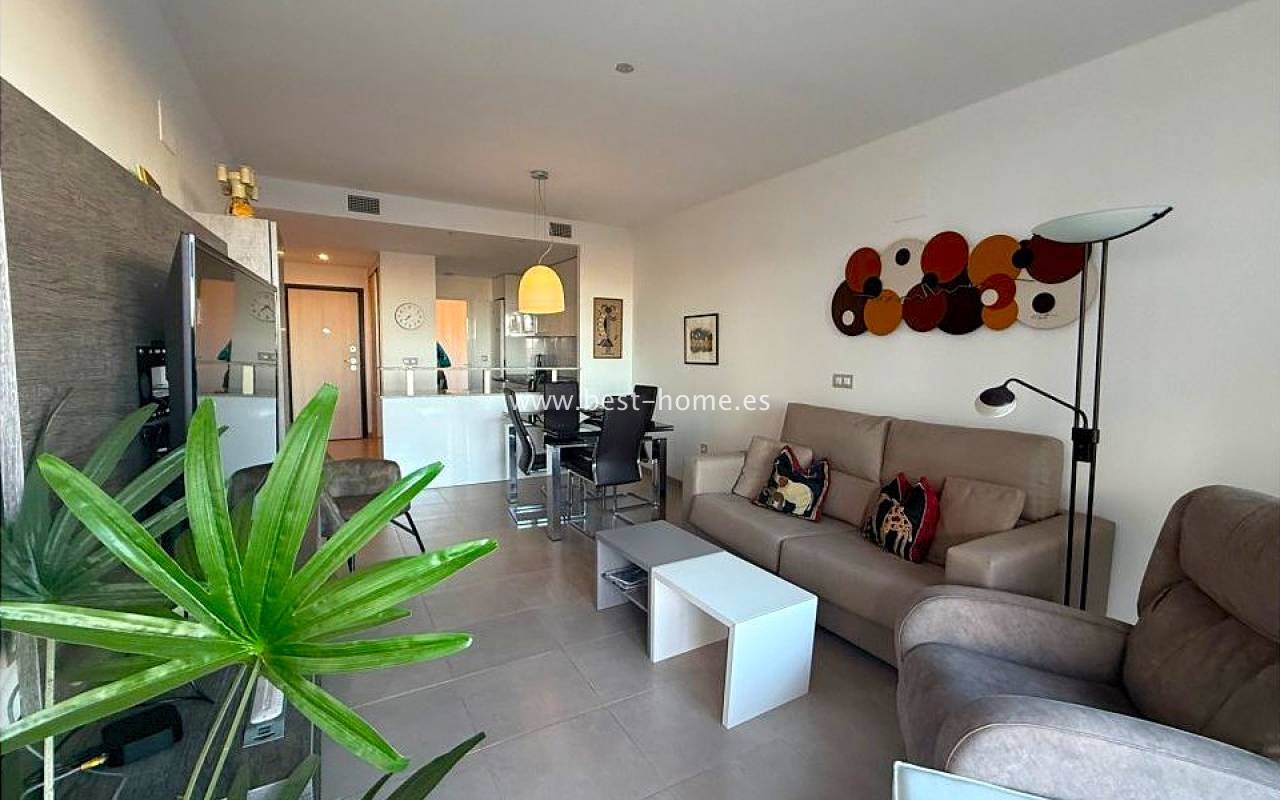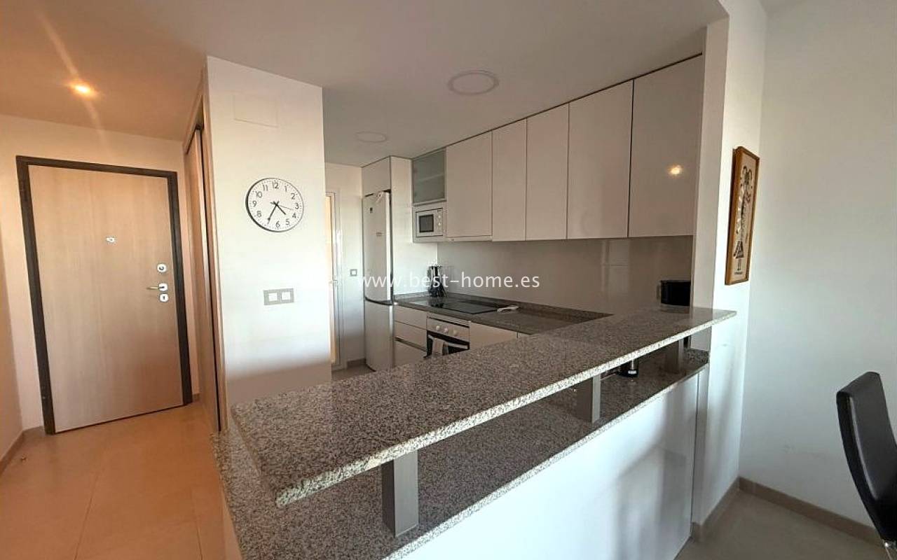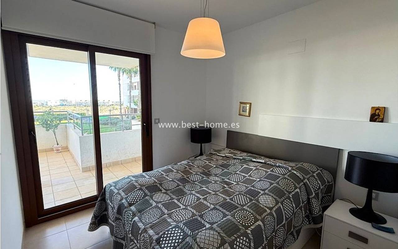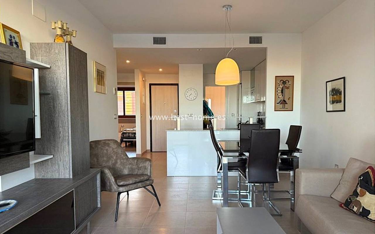 This attractive apartment is located in a gated community with swimming pools in Lomas de Cabo Roig. The property is on the first floor and comprises two bedrooms, one bathroom, a furnished kitchen with a utility room, and a spacious living room with a dining area. Both the master bedroom and living room open onto a terrace with partial views of the pool and sea. The price includes furniture, appliances, air conditioning, and a parking space.