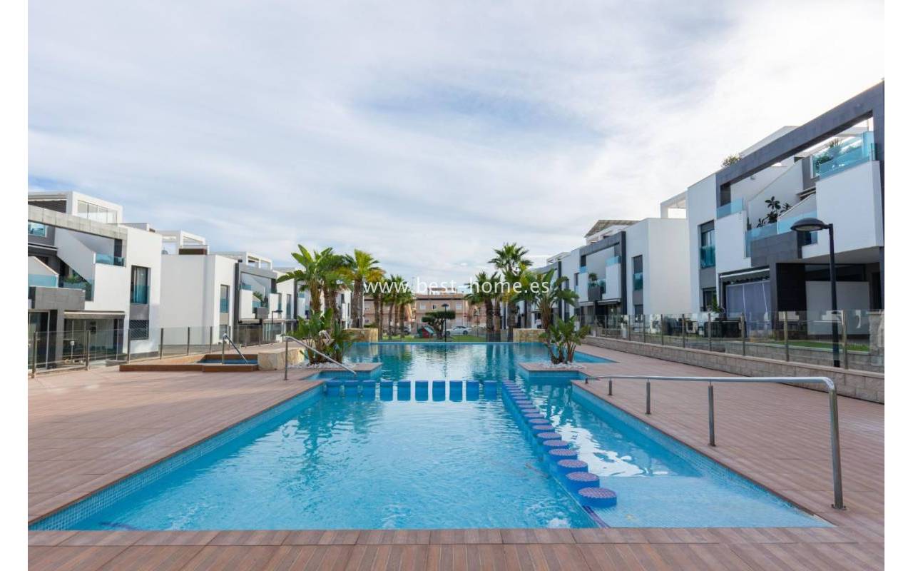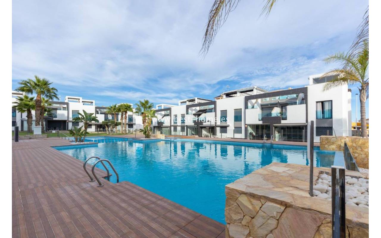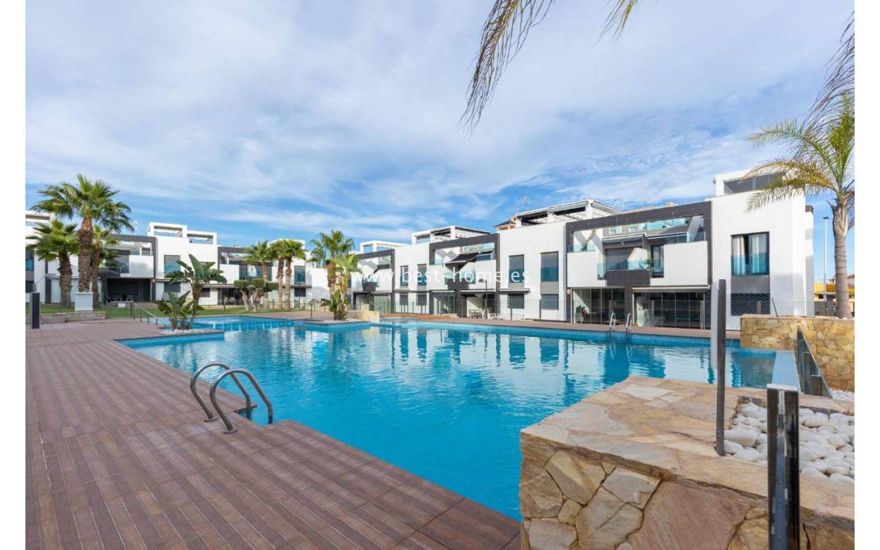 We are pleased to present this beautiful first-floor bungalow located in the prestigious Oasis Beach 7 residential complex in Punta Prima, Torrevieja (Alicante). It is an ideal property both for year-round living and as a profitable holiday rental investment, as it comes with a valid tourist license.