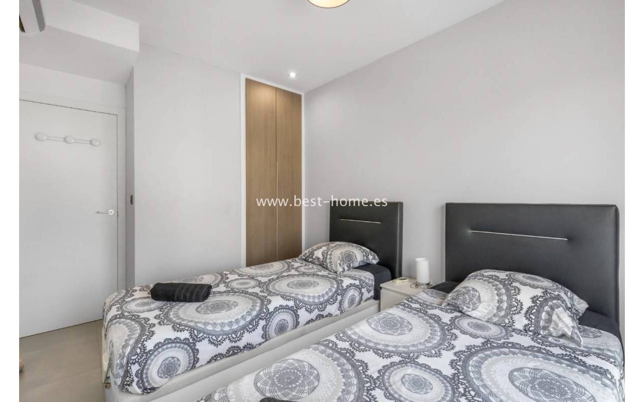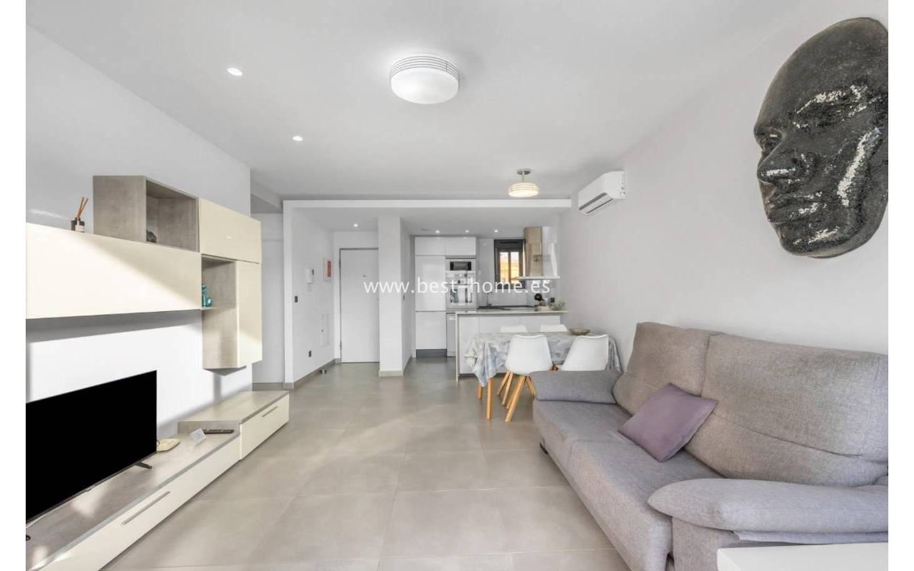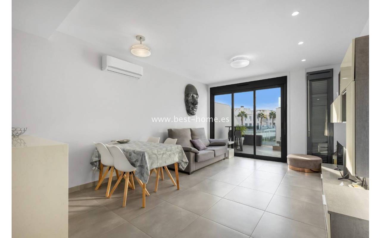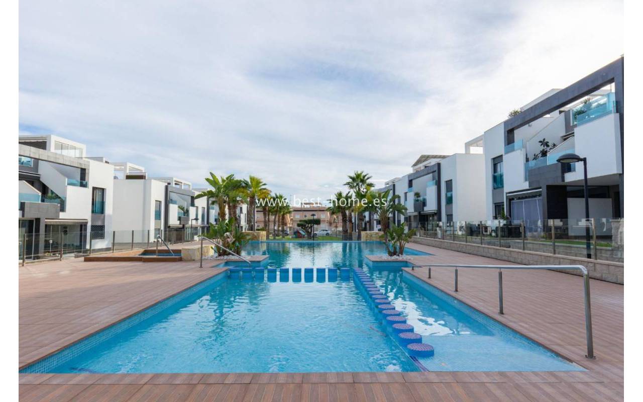 We are pleased to present this beautiful first-floor bungalow located in the prestigious Oasis Beach 7 residential complex in Punta Prima, Torrevieja (Alicante). It is an ideal property both for year-round living and as a profitable holiday rental investment, as it comes with a valid tourist license.