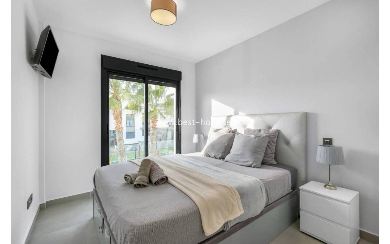 The location is excellent – just 1,500 meters from the beach and only a 5-minute drive to Zenia Boulevard shopping center, offering a wide range of shops, restaurants, and entertainment options.