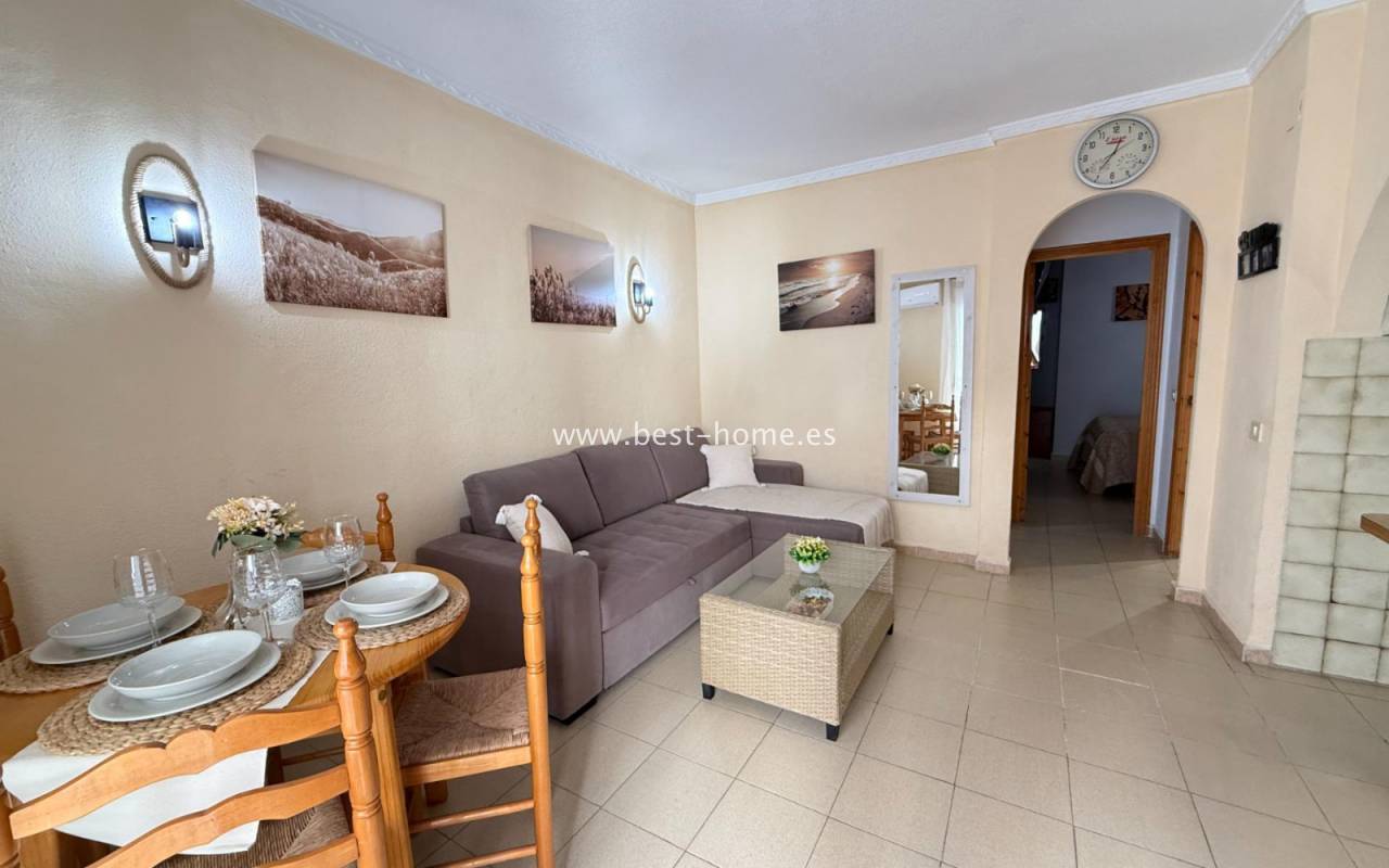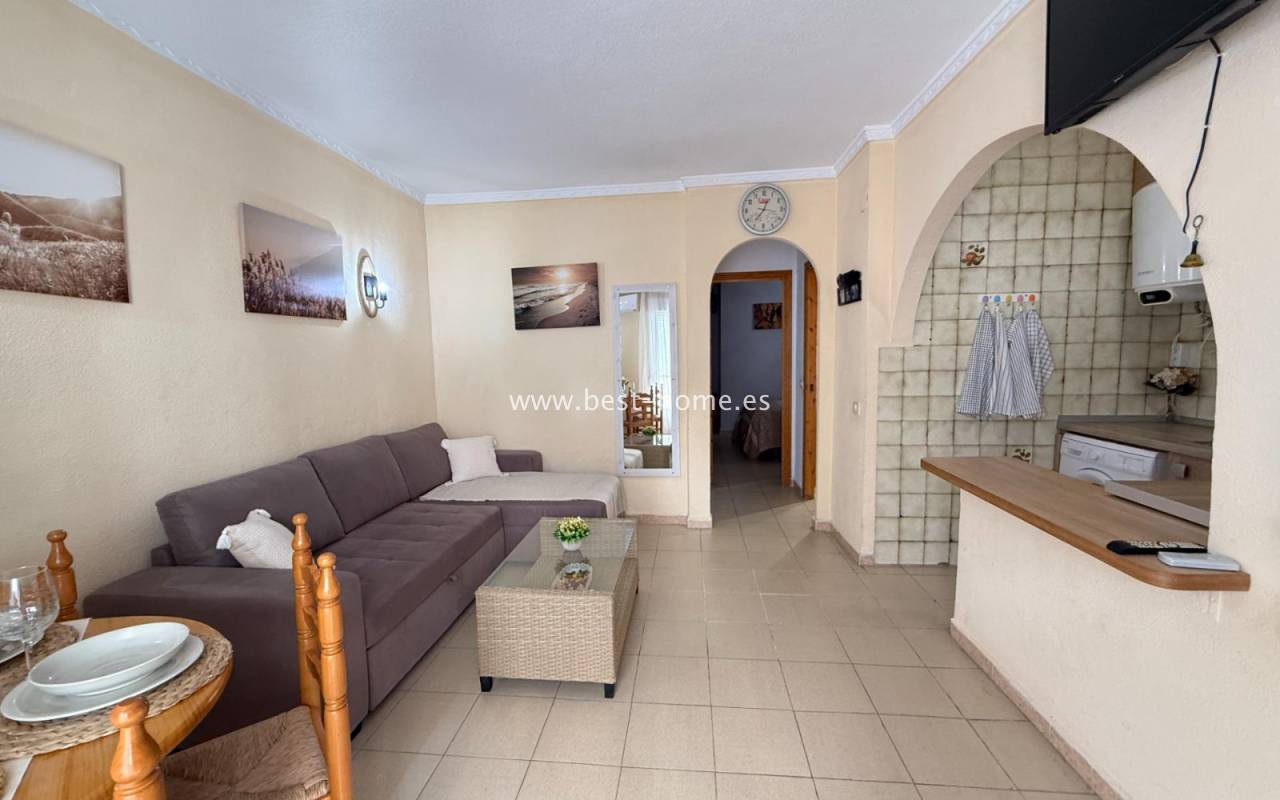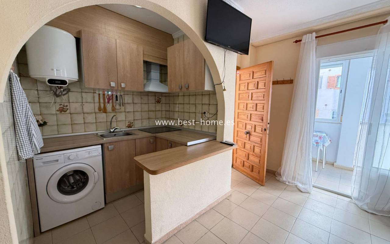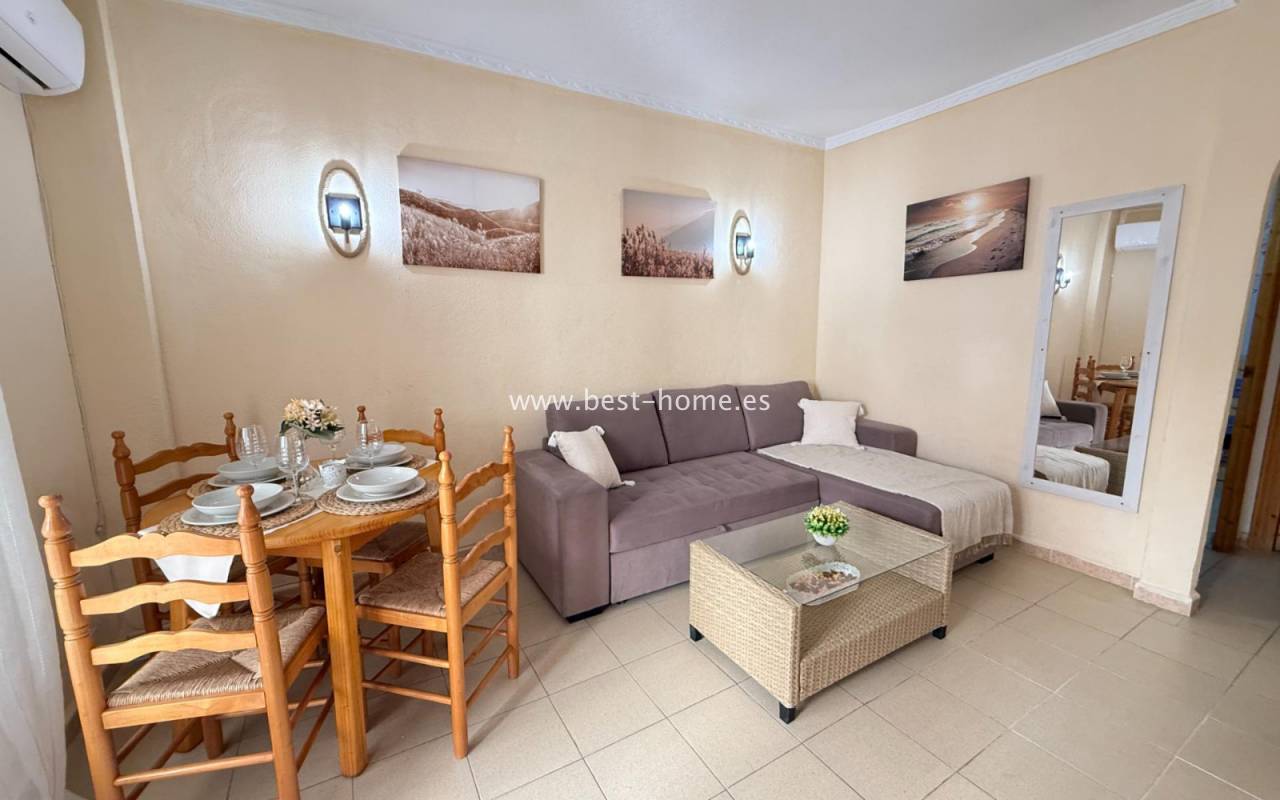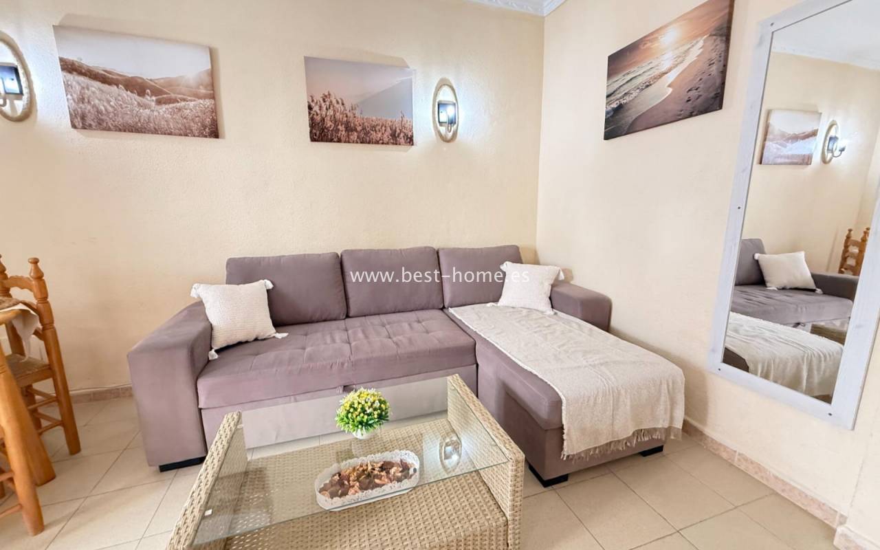 This well-priced apartment with sea views and a beautiful community pool in La Mata features a bright, spacious living room with access to the terrace, an American-style kitchen equipped with appliances, two bedrooms, including the master bedroom with a built-in wardrobe, and a bathroom. The complex also boasts a swimming pool with sea views. Nearby amenities include bars, pubs, cafes, and restaurants.