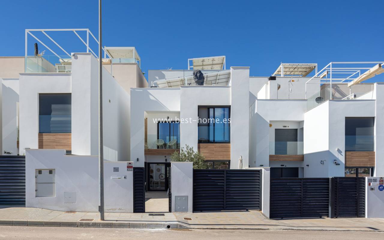 For sale: a modern, elegant townhouse in Benijófar, one of the fastest-growing towns on the Costa Blanca. Built in 2018, the property is in perfect condition and offers a high standard of finishes along with full comfort. Located opposite a beautiful park, with areas where building is not allowed, it provides complete privacy and open views, while being just a few steps from the town center with restaurants, shops, and other amenities. The home features a modern, functional layout – a spacious, bright living room connects to a fully equipped kitchen and direct access to the terrace and private heated pool, perfect for year-round enjoyment. It has three bedrooms, each with its own en-suite bathroom; one is currently used as a walk-in closet and another as an office, but both can easily be restored to their original purpose. The house is eco-friendly and modern, equipped with solar panels and an electric car charging point. Additionally, there is a large solarium with panoramic views, ample storage space, and the property is sold fully furnished. With carefully designed architecture, high-quality finishes, and impeccable maintenance, the home is ready to move in, ideal as a primary residence, holiday home, or investment in one of Spain’s most sought-after locations.
