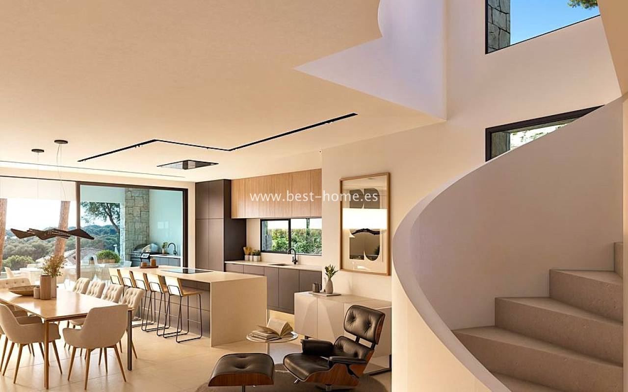 This luxury home will be built in a prime residential area on the outskirts of Moraira. The ground floor will feature a spacious and bright living room with a dining area and a fitted kitchen with an island, one bedroom with an ensuite bathroom, a toilet, a laundry room, and a spare room. The living room offers large windows leading to a terrace and private pool. The first floor features three bedrooms with ensuite bathrooms, an entrance hall, and a terrace. Additionally, there is a closed garage and a parking space. The property will boast stunning panoramic views of the sea and surrounding area. The price includes appliances, central air conditioning, underfloor heating, LED lighting, electric blinds, and a landscaped garden with irrigation and lighting. The sea is just 1.4 km away.