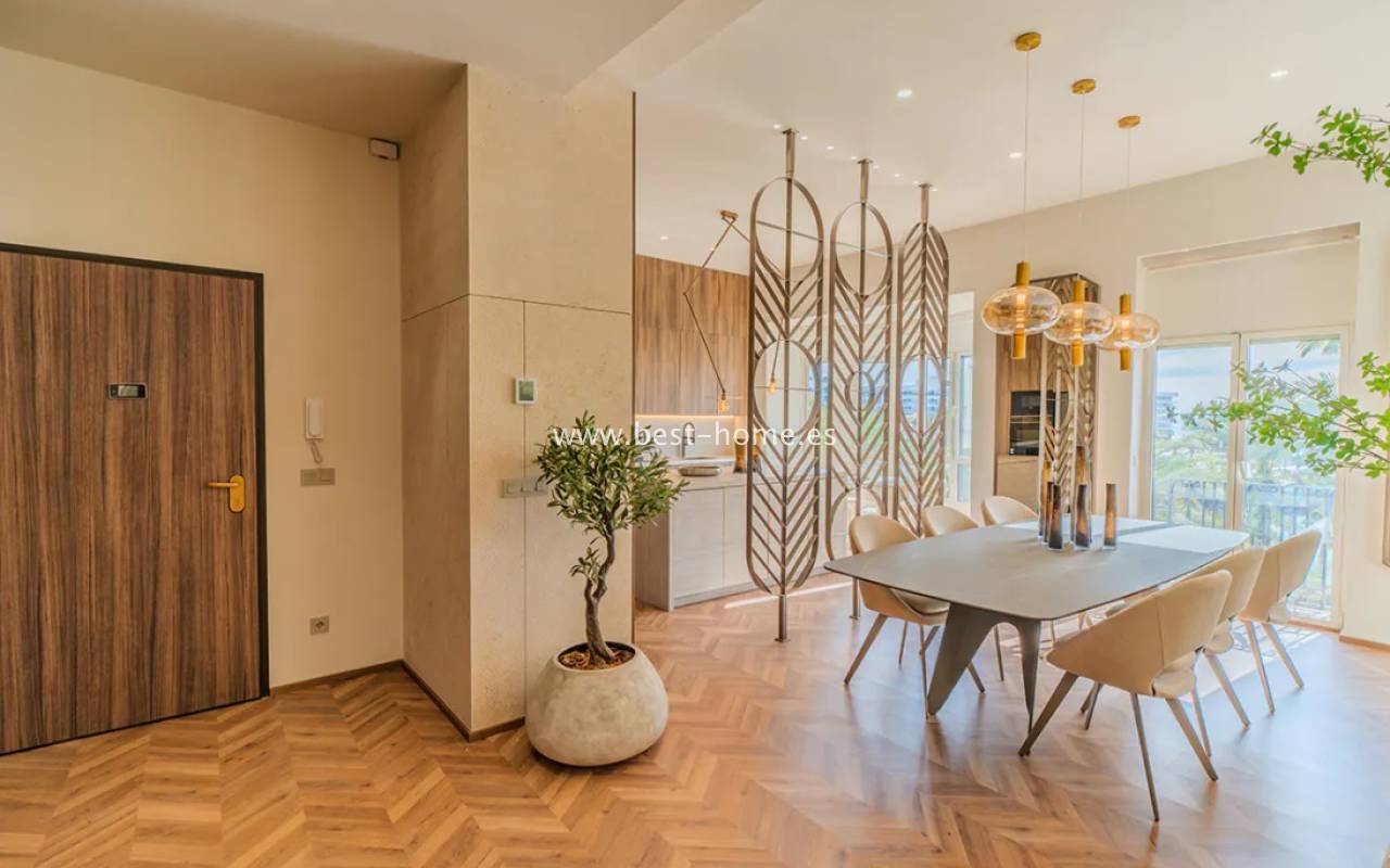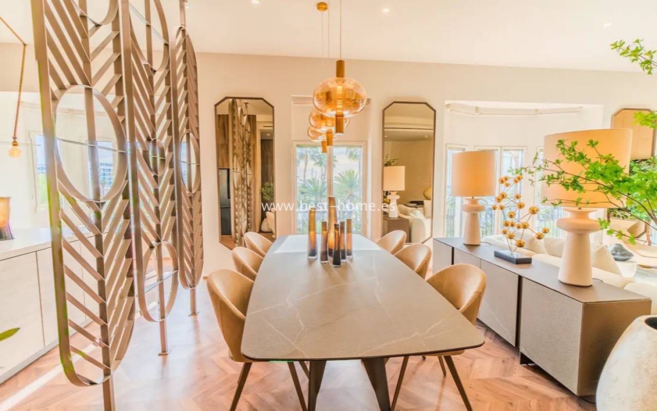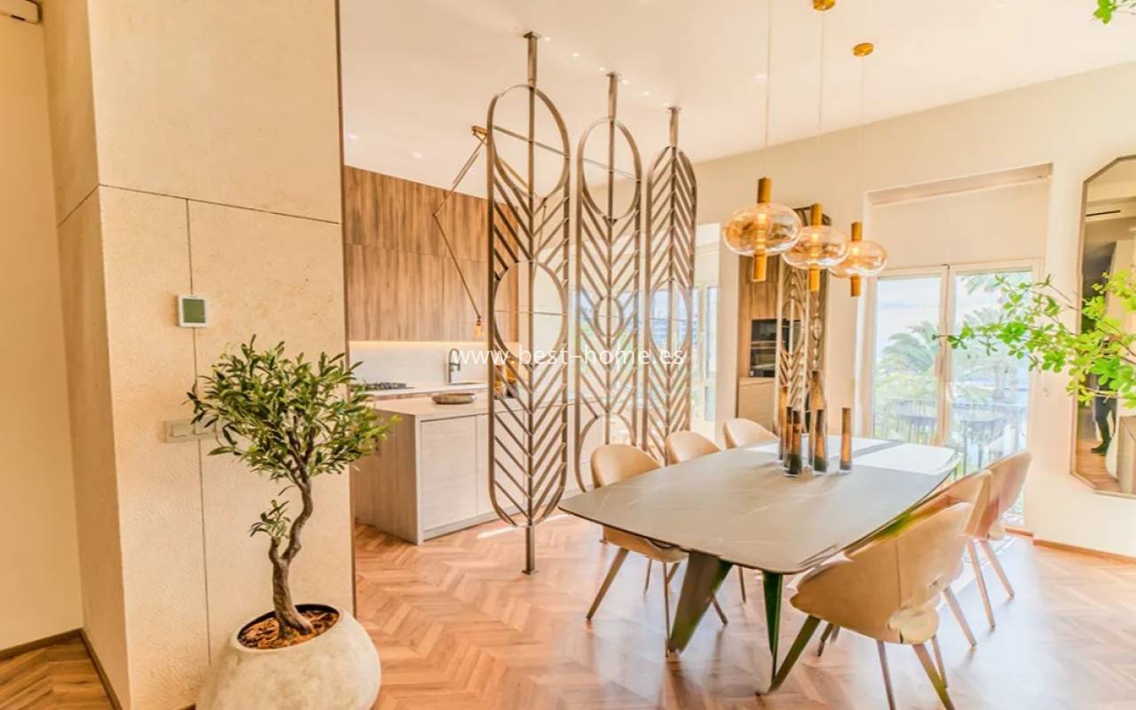 This luxurious apartment is situated in a prime location on the seafront promenade and Alicante Port. It comprises three bedrooms, three bathrooms, and a stunning fitted kitchen with an island, connected to the dining room and living room. This unique property has been completely renovated and is being sold fully furnished. It is one of the most beautiful buildings in Alicante, built in 1890.
