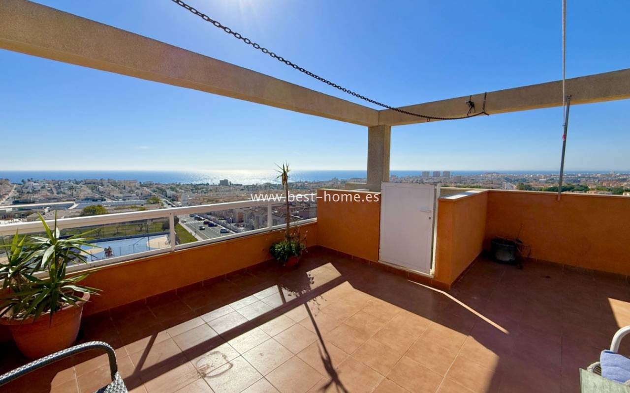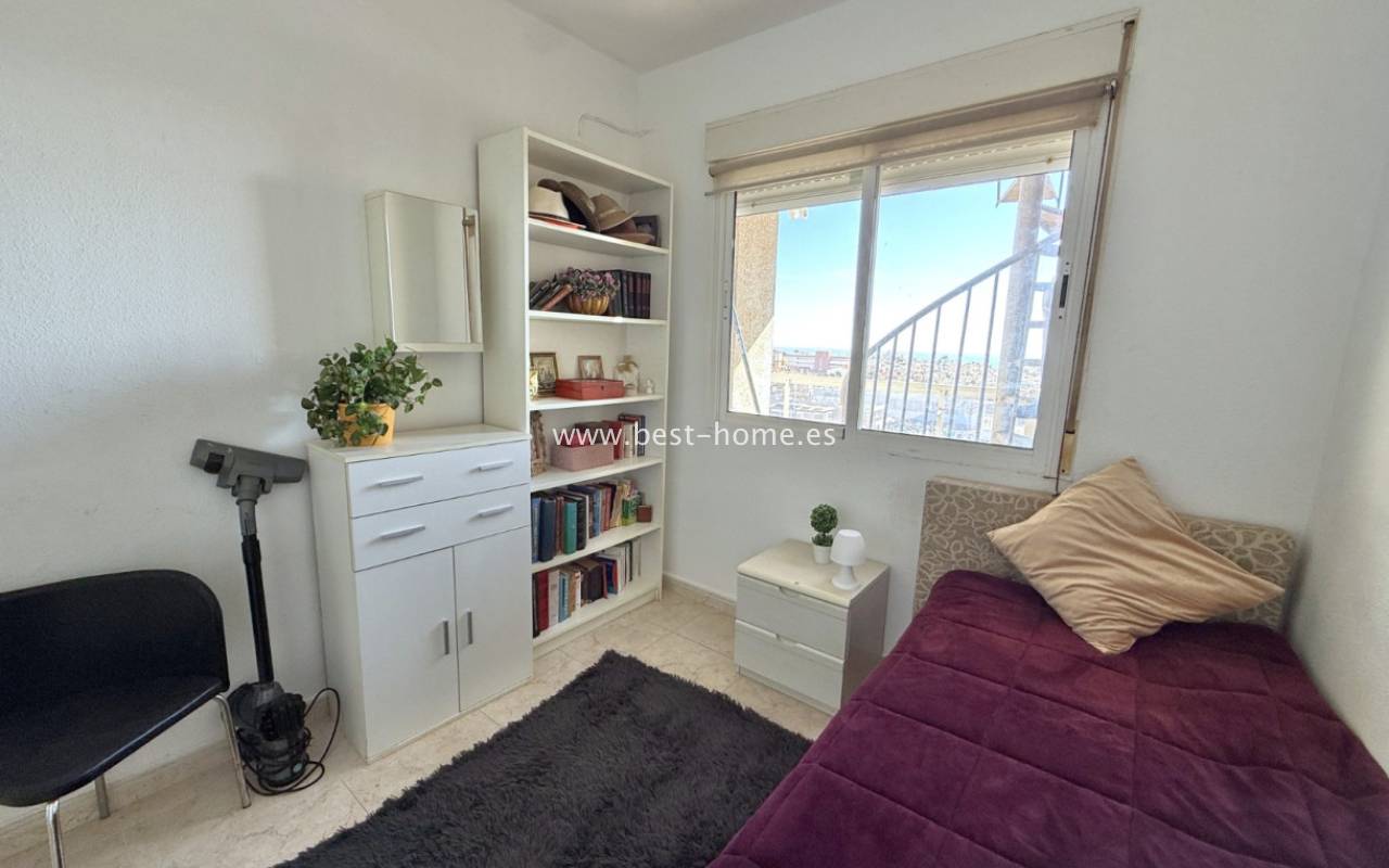 The apartment consists of two bedrooms and one bathroom. A bright living room with access to an east-facing balcony provides plenty of natural light and a pleasant space to relax. The property also features a private rooftop terrace with panoramic views of Torrevieja and the surrounding area.